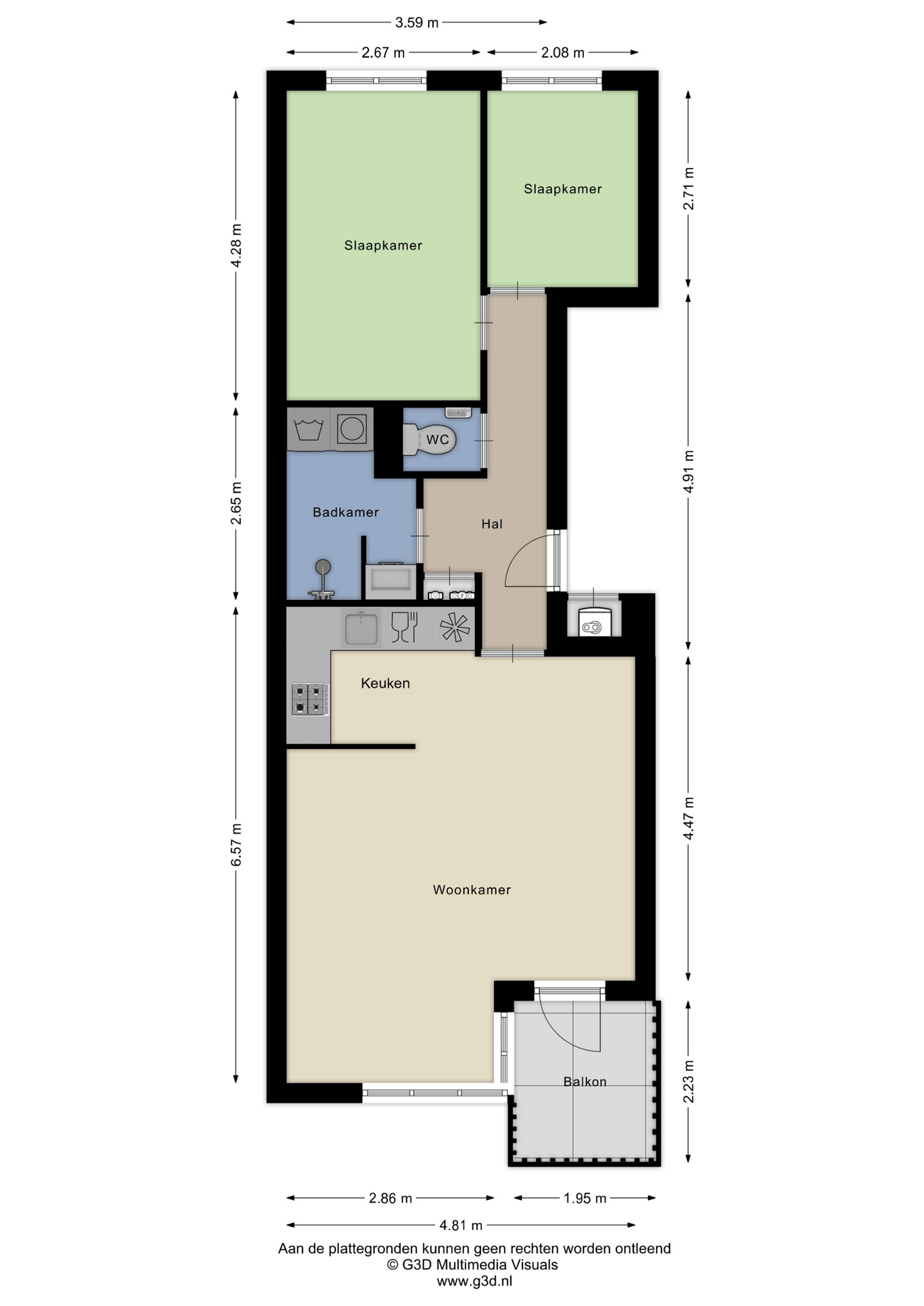 • Twee slaapkamers, een ruime (ca. 12 m²) en een compacte (ca. 6 m²) – perfect als logeerkamer, werkplek of hobbyruimte.
