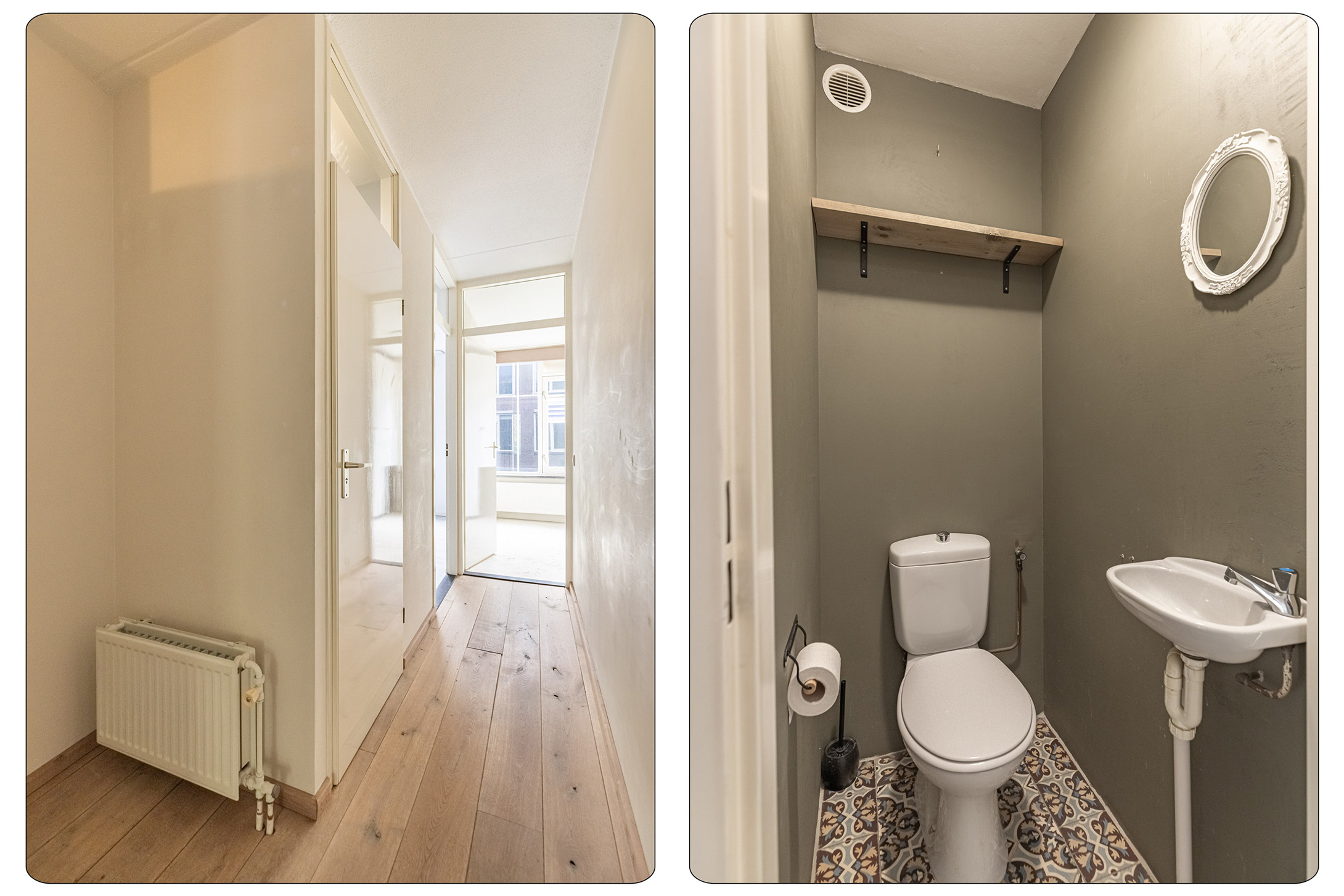 De grootste slaapkamers is voorzien van een lichte laminaatvloer en behang wandafwerking. Er is hier veel lichtinval en voldoende ruimte voor het plaatsen van een 2 persoonsbed. De kleinere slaapkamer is voorzien van een vinylvloer en behang wandafwerking. Deze kamer leent zich uitstekend als veelzijdige ruimte: ideaal voor het inrichten van een hobbykamer, een comfortabele werkplek aan huis of zelfs een stijlvolle walk-in-closet.