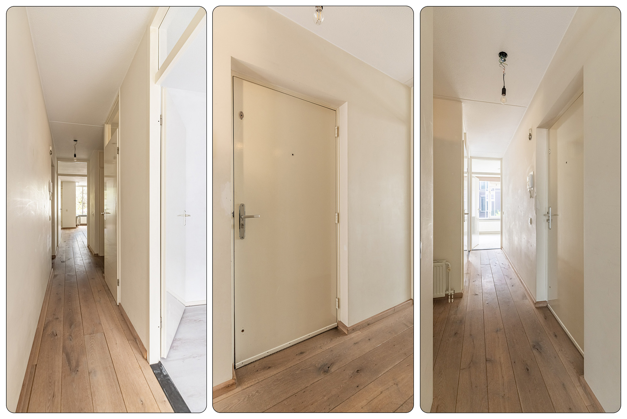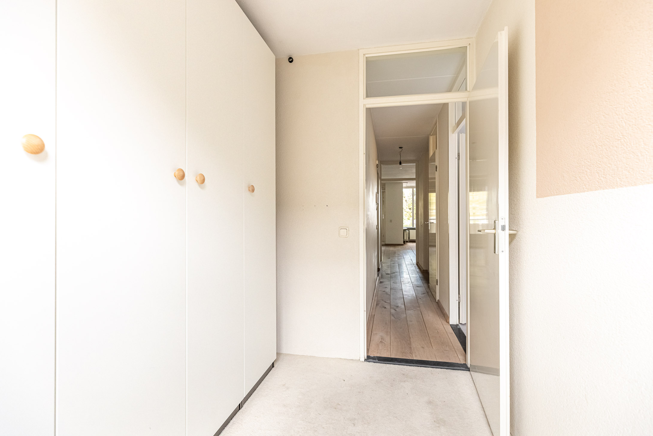 Via de ruime entree, waar zich de meterkast en het toilet met fonteintje bevinden is er toegang tot de 2 slaapkamers, badkamer en woonkamer.