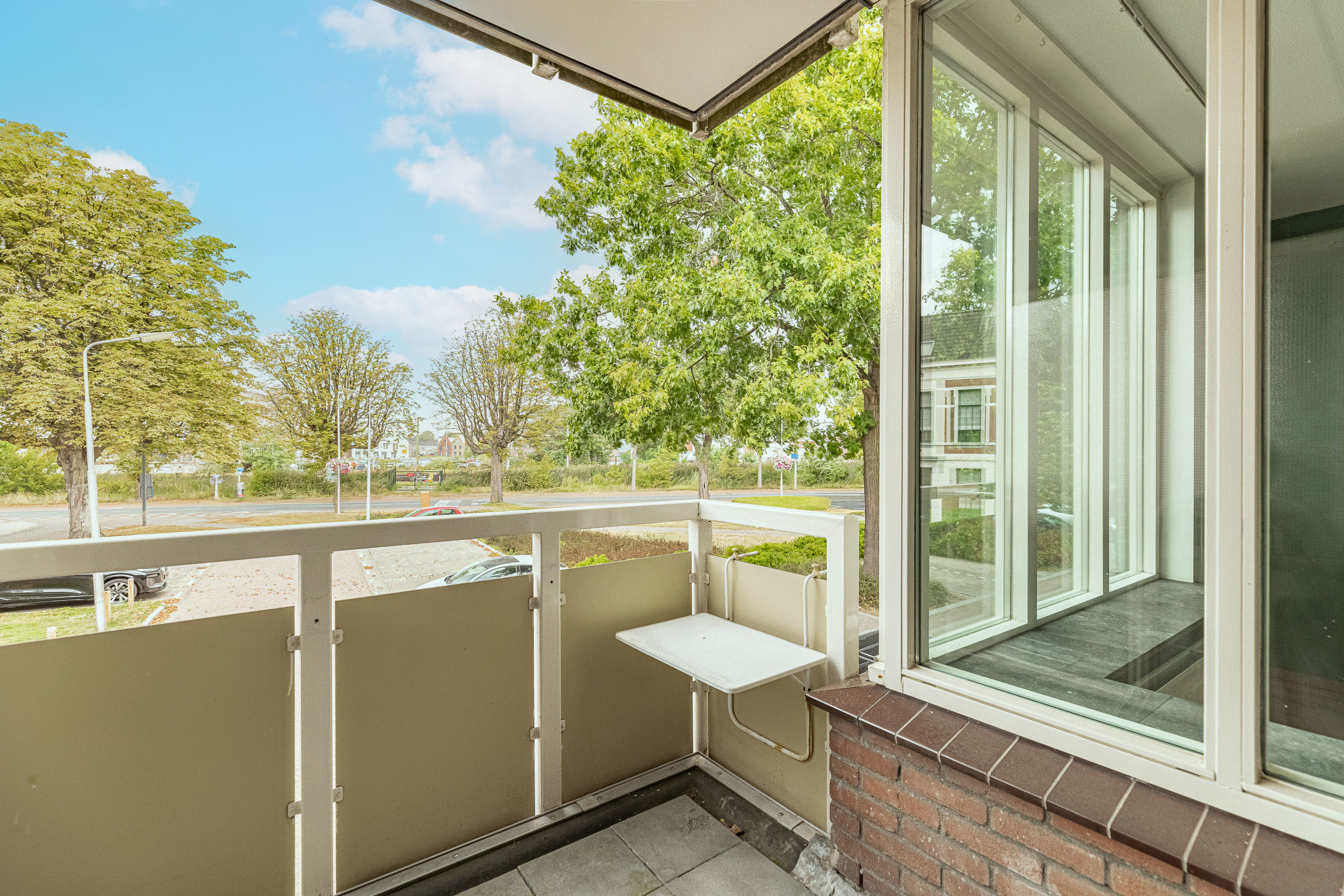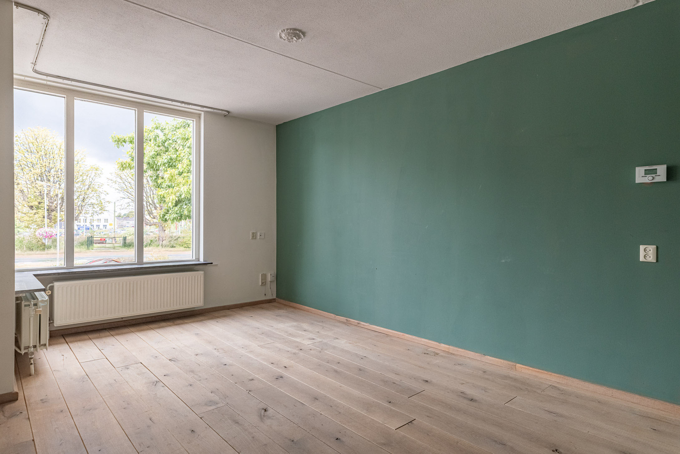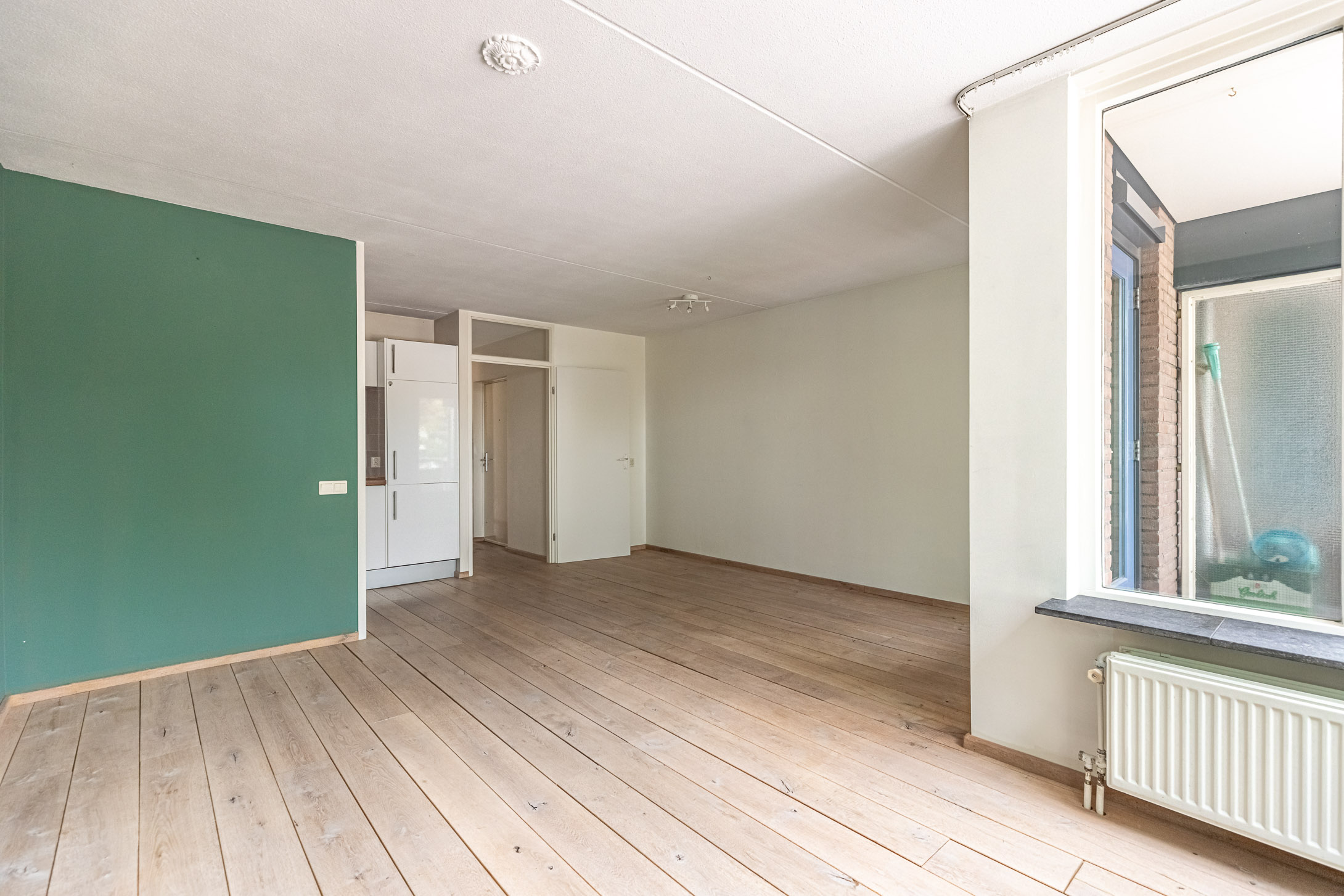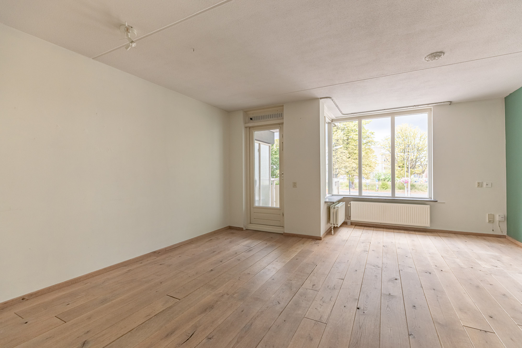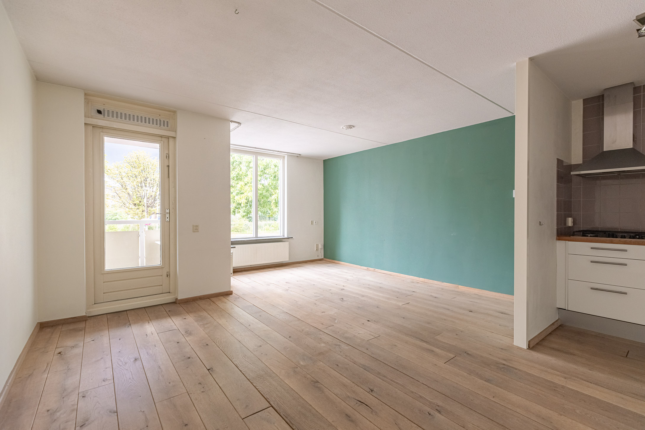 • Lichte woonkamer met een houten vloer en toegang tot een ruim balkon op het westen: ideaal om in de avondzon te genieten van een drankje en het groene uitzicht.