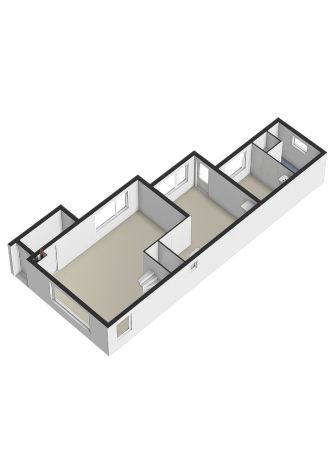 Je parkeert je auto op je eigen oprit en loopt via de voordeur de hal binnen. Vanuit de hal heb je direct toegang tot de ruime woonkamer. De grote raampartijen zorgen voor veel lichtinval en geven een prettig uitzicht op de straat. De houten vloer en de spachtelputz wandafwerking geven de ruimte karakter. In de hoek van de woonkamer vind je de trap naar de eerste verdieping.