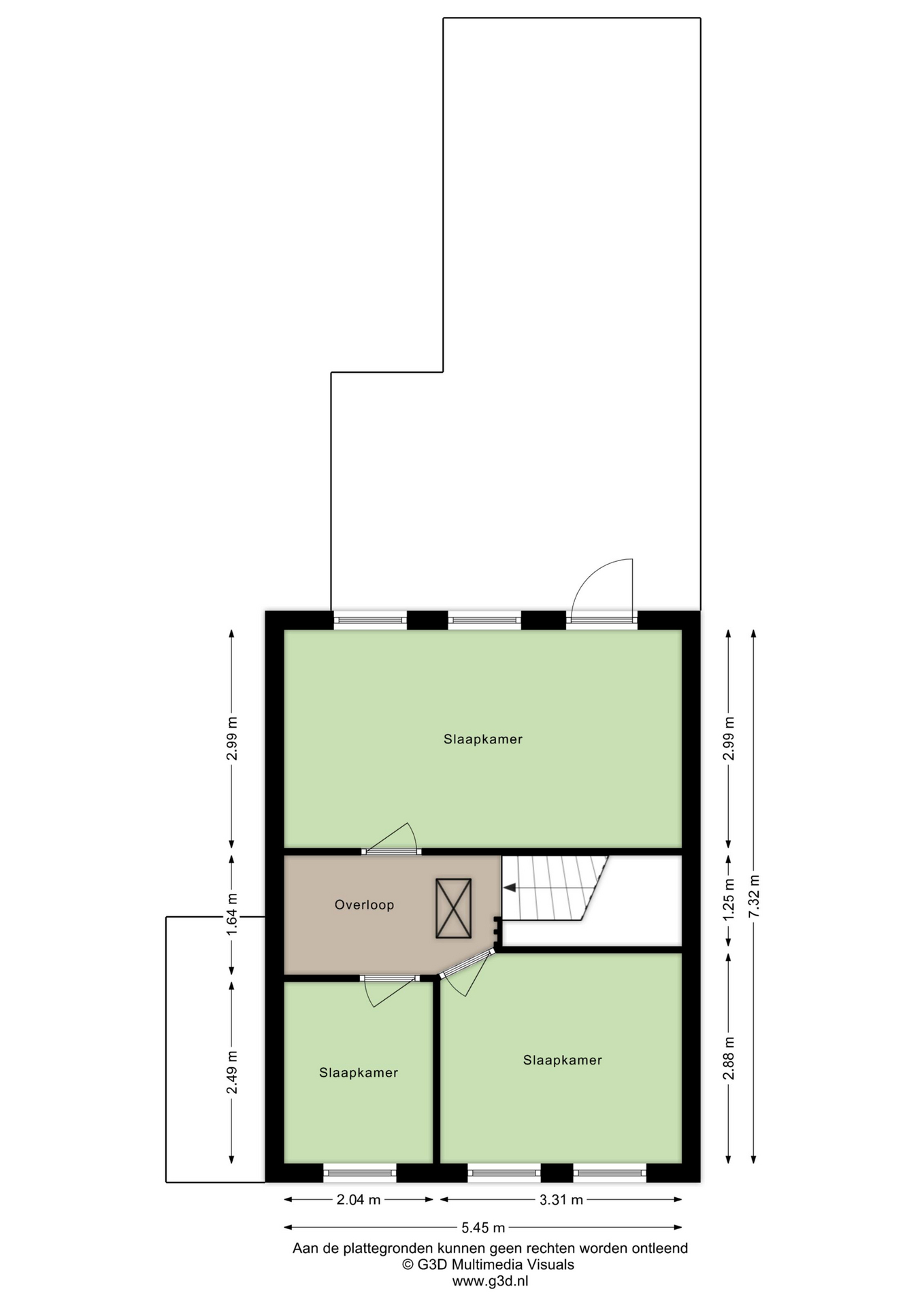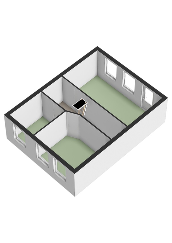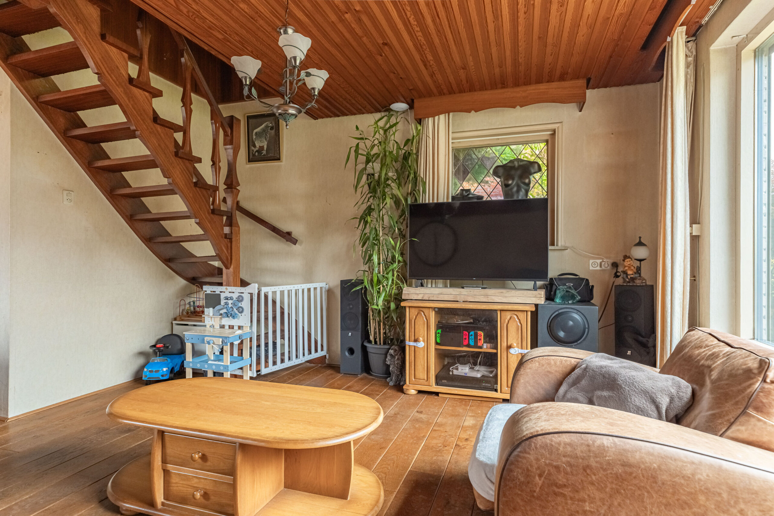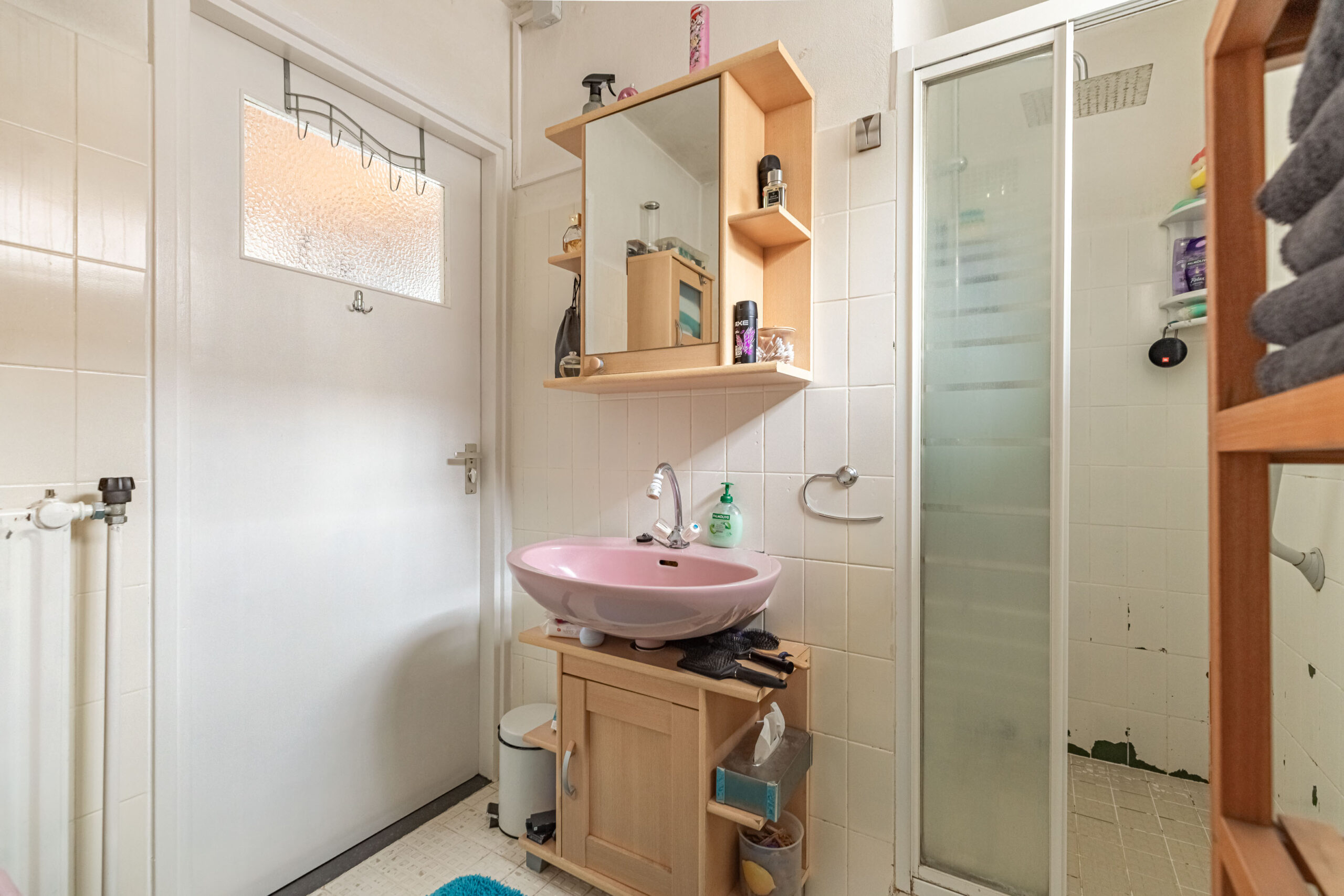 Via de trapopgang in de woonkamer kom je op de eerste verdieping. Hier bevinden zich drie slaapkamers, allemaal voorzien van vloerbedekking en een nette vliesbehangafwerking. Op de overloop bevindt zich een vlizotrap die toegang biedt tot de ruime bergzolder — ideaal voor extra opslagruimte.