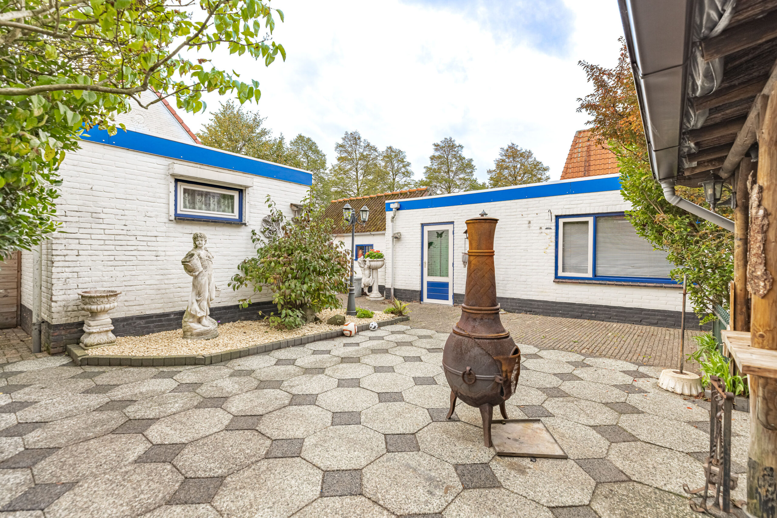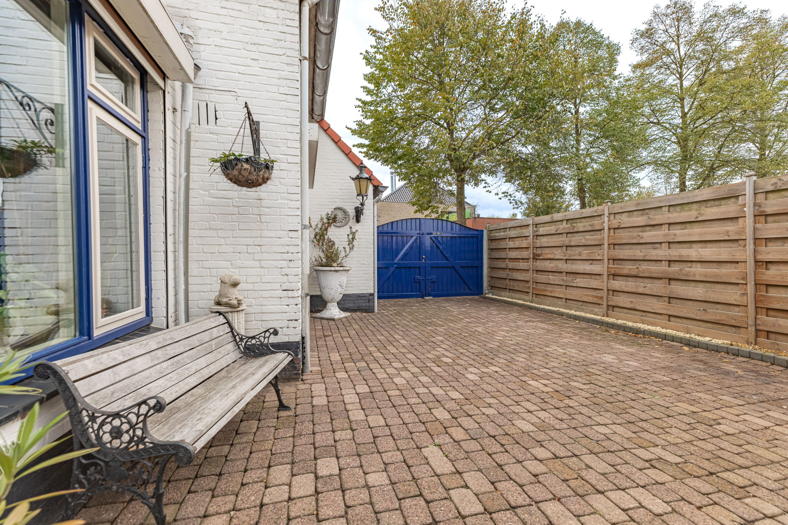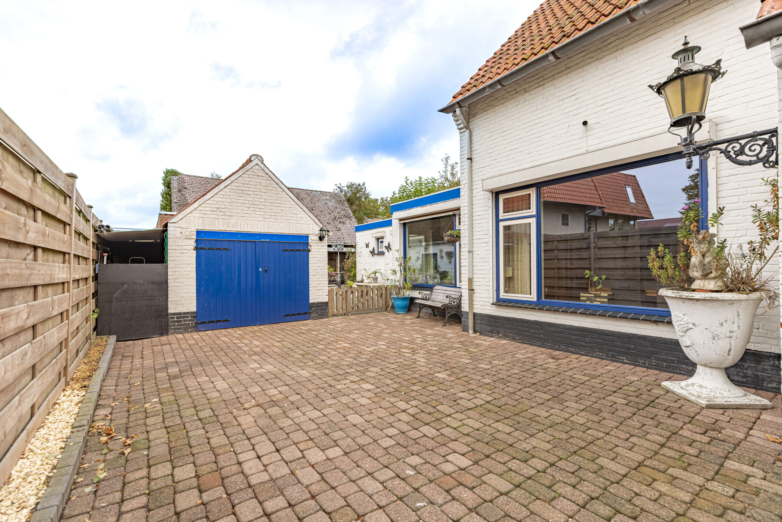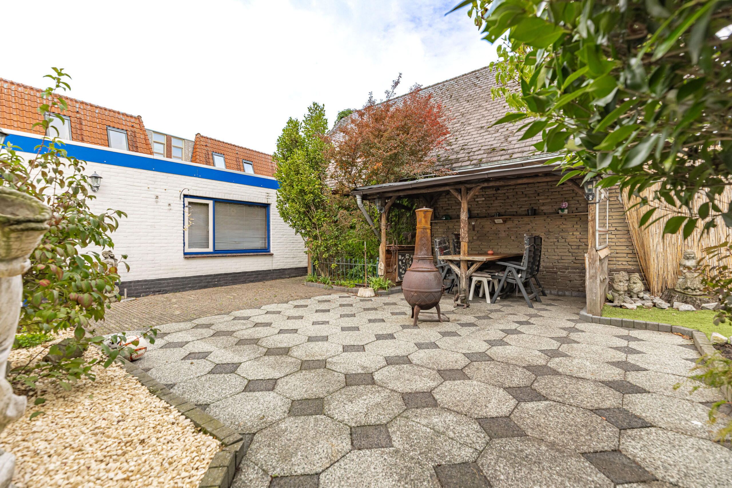 De tuin ligt op het noorden en biedt volop mogelijkheden. Je vindt hier een ruime garage en berging, perfect voor het stallen van de auto, het uitoefenen van een hobby of extra opbergruimte. Achterin de tuin is een kleine overkapping waar je heerlijk beschut kunt zitten. De erfafscheiding is netjes en zorgt voor privacy en rust.