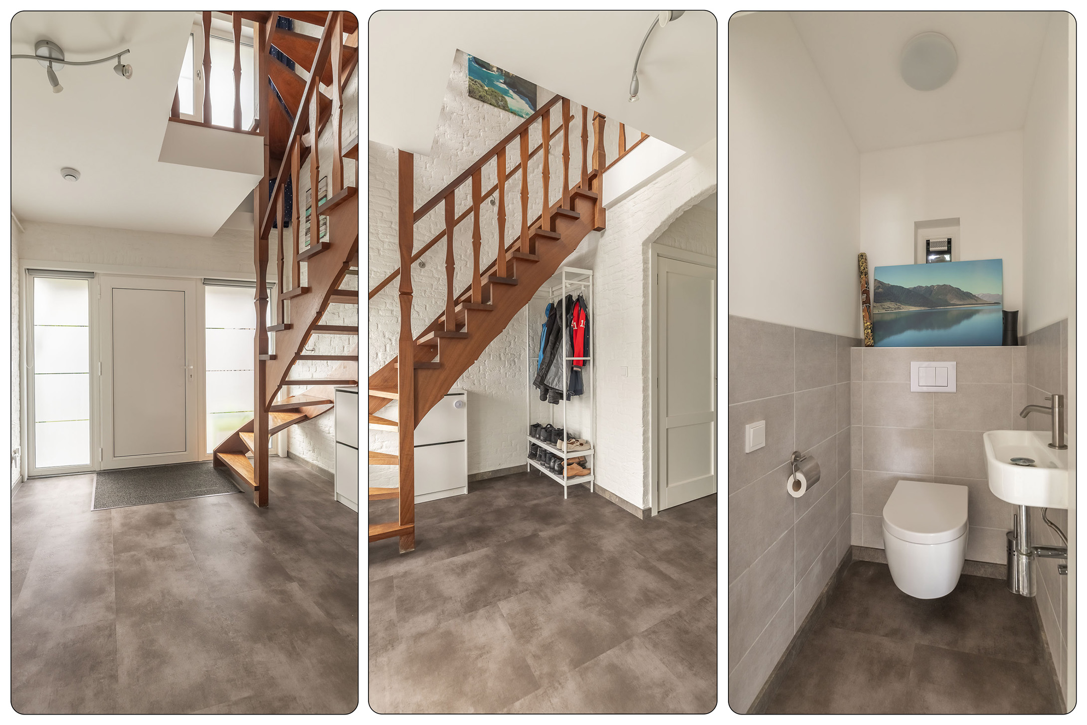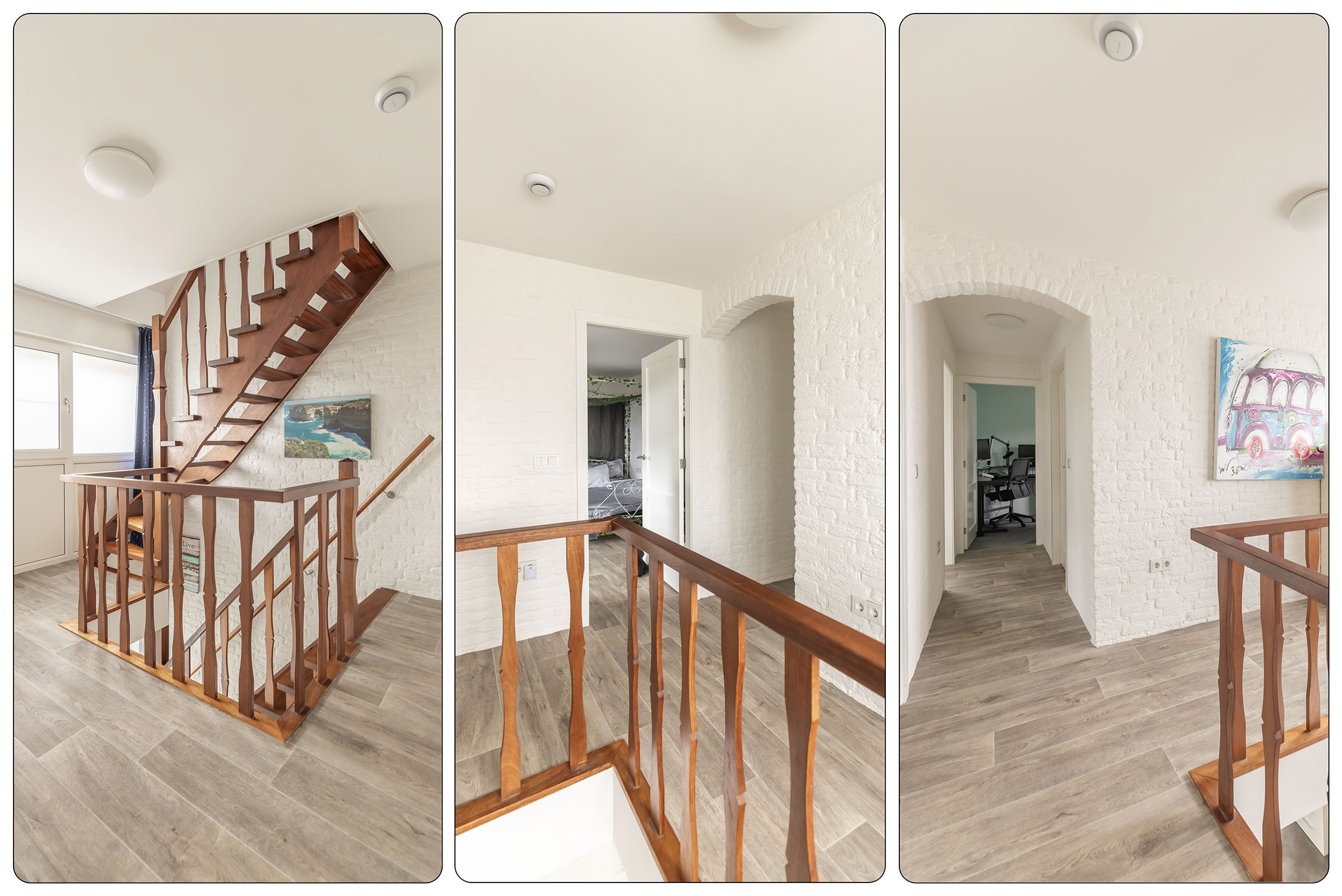 De eerste verdieping telt drie goed ingedeelde slaapkamers, alle voorzien van airconditioning voor een aangenaam binnenklimaat. De moderne badkamer is stijlvol uitgevoerd en uitgerust met een dubbele wastafel, een elektrische radiator en een ruime (regen)douche. Hier geniet je dagelijks van optimaal comfort.
