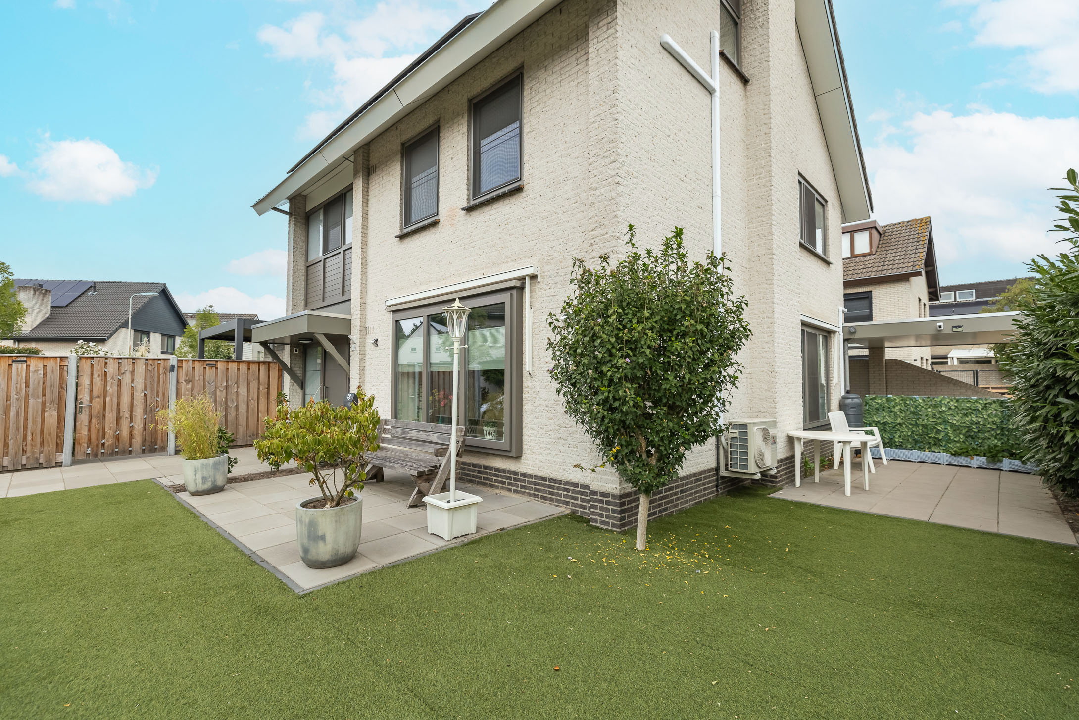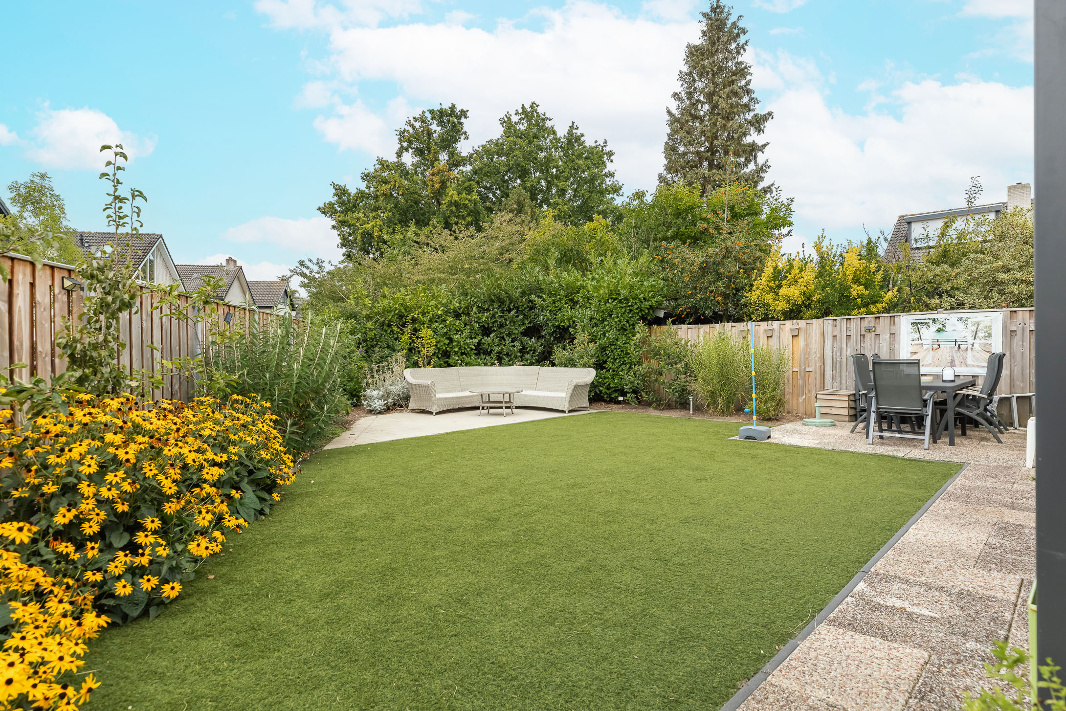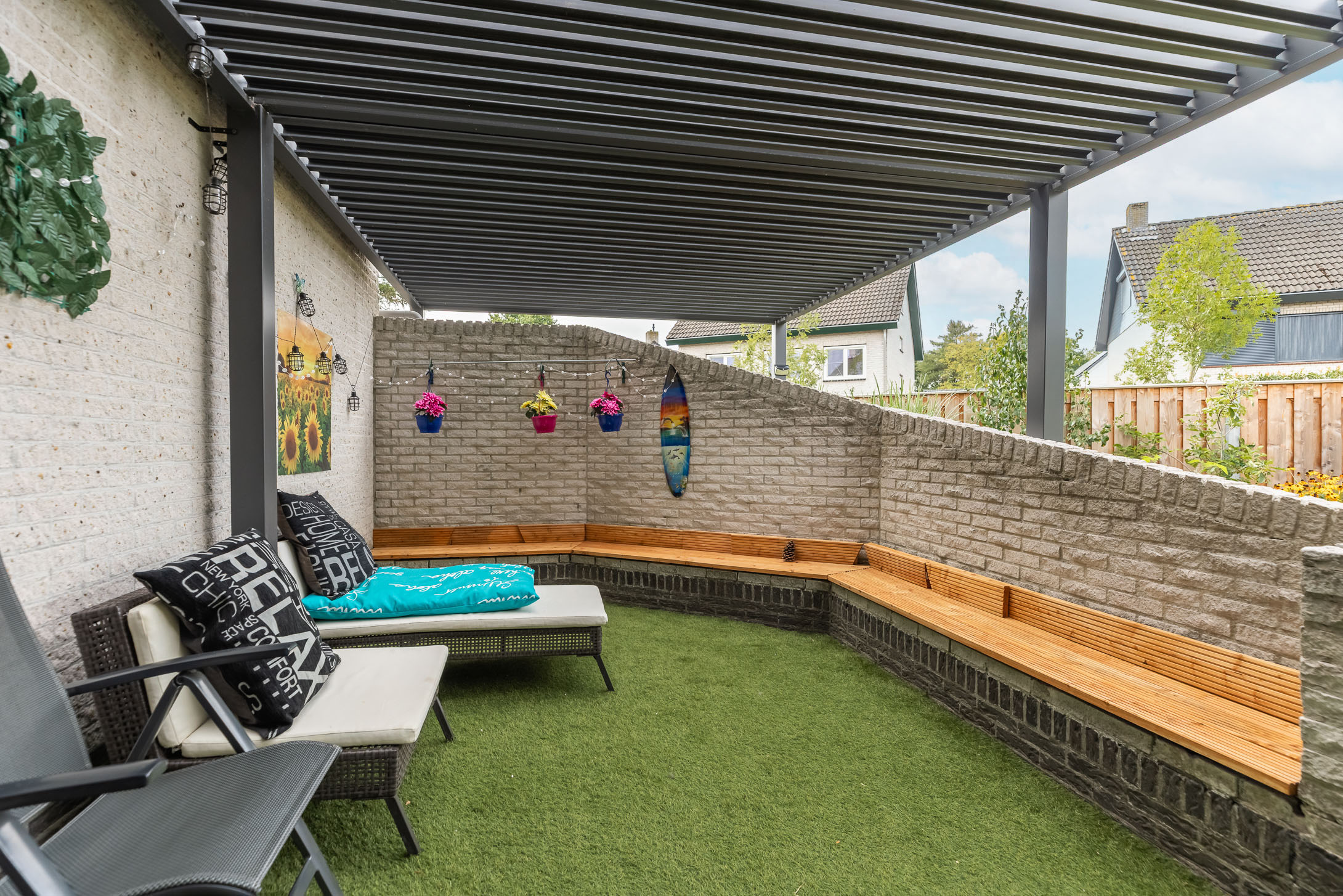 De achtertuin is een heerlijke plek om te genieten van het buitenleven. Dankzij de gunstige ligging op het zuidwesten heb je de hele dag zon. De royale tuin is voorzien van fruitbomen en een gezellige overkapping waar je lange zomeravonden kunt doorbrengen. Aan de achterzijde beschik je over een eigen oprit met carport. Via de zijtuin loop je eenvoudig naar de carport en garage.