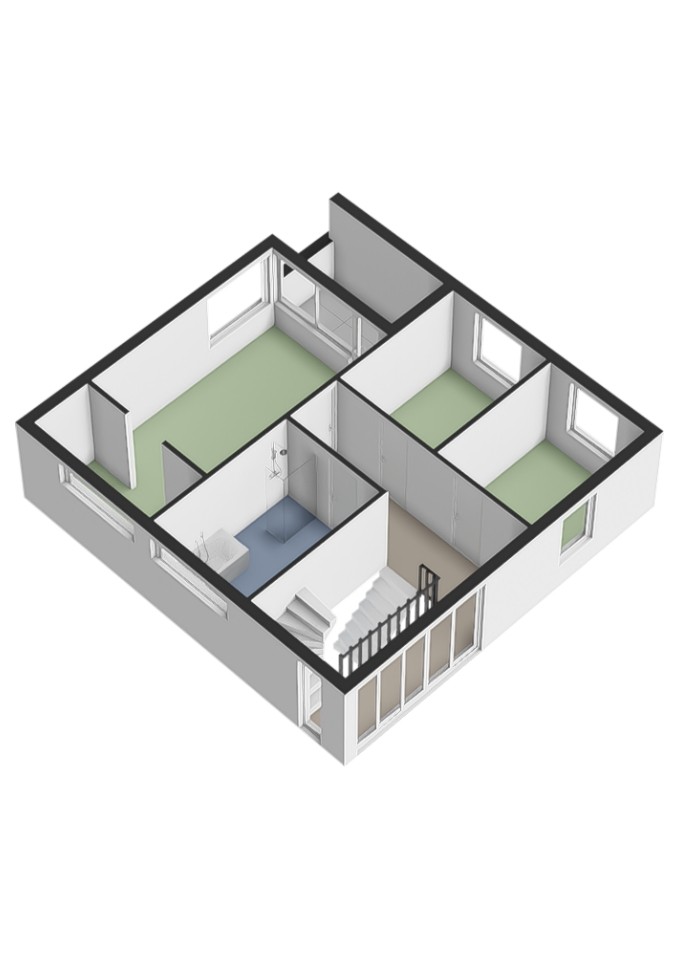 Op de eerste verdieping bevinden zich drie slaapkamers, allemaal netjes afgewerkt en prettig van formaat. De ouderslaapkamer biedt directe toegang tot de loggia: een fijne privébuitenruimte met volop comfort en privacy. De badkamer is compleet uitgevoerd en voorzien van een inloopdouche, ligbad, wastafelmeubel en toilet.
