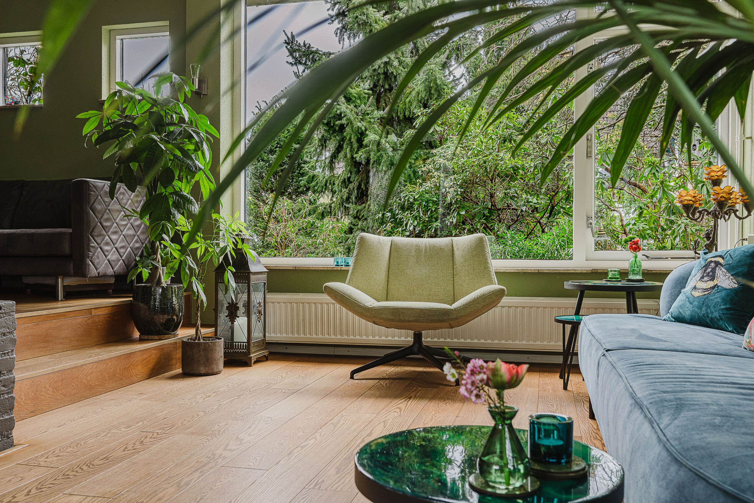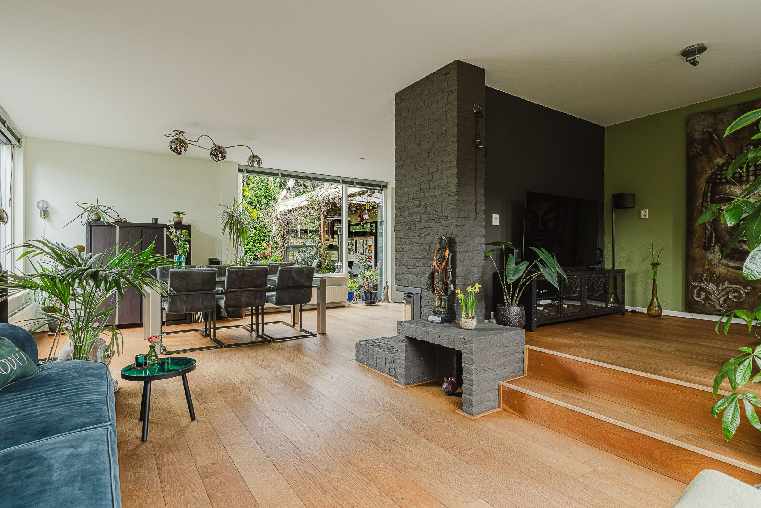 Via de hal, voorzien van comfortabele vloerverwarming, kom je binnen in de woning. Hier bevinden zich tevens het toilet en de meterkast. Vanuit de hal loop je door naar de sfeervolle woonkamer met houtkachel, waar de prachtige eikenhouten vloer direct in het oog springt.