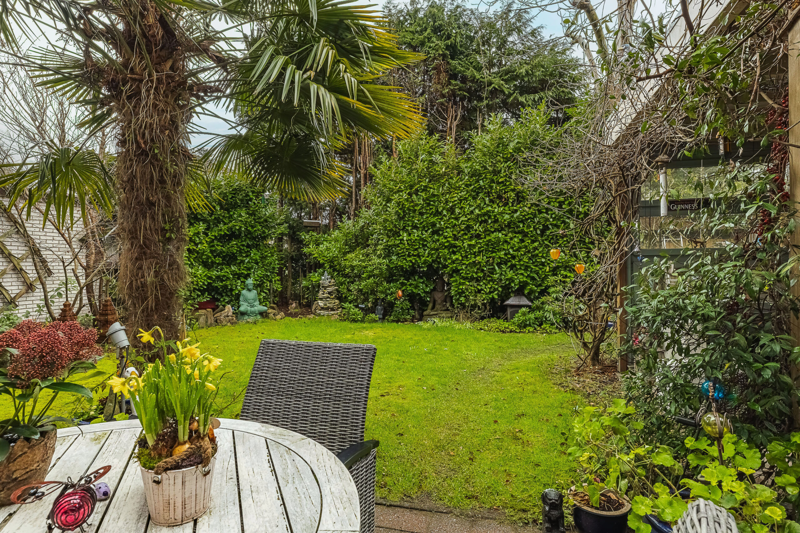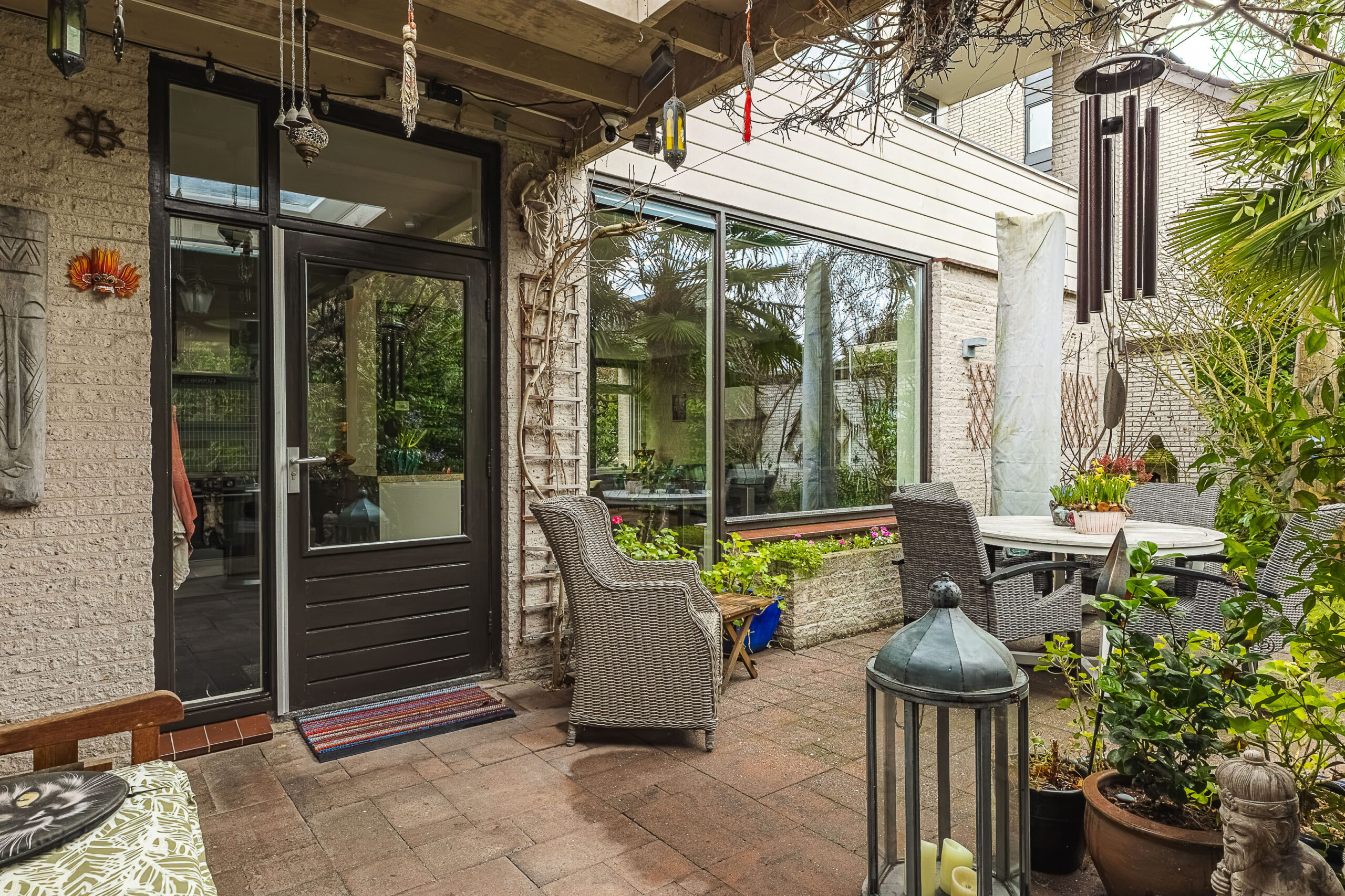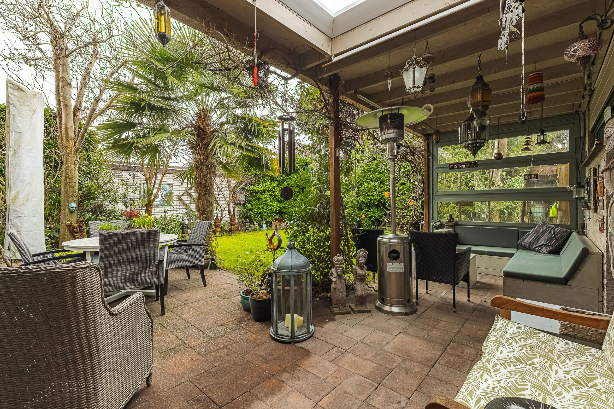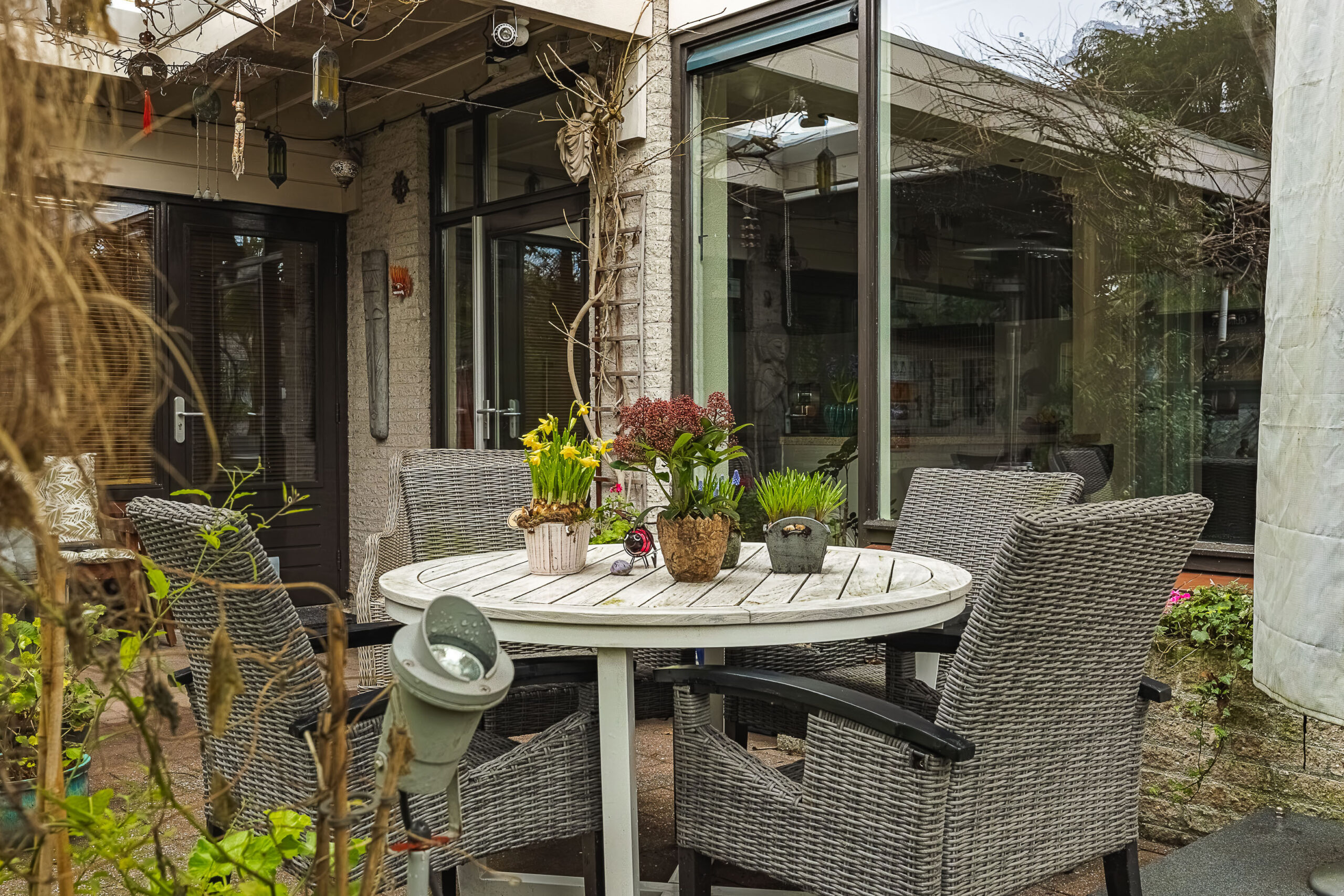 De achtertuin is gunstig gelegen op het westen, waardoor je hier volop kunt genieten van de middag- en avondzon. Dankzij de aanwezige overkapping is het een heerlijke, beschutte plek om te ontspannen, ongeacht het seizoen. Bovendien is er een handige zij-ingang, wat zorgt voor extra gemak en toegankelijkheid.