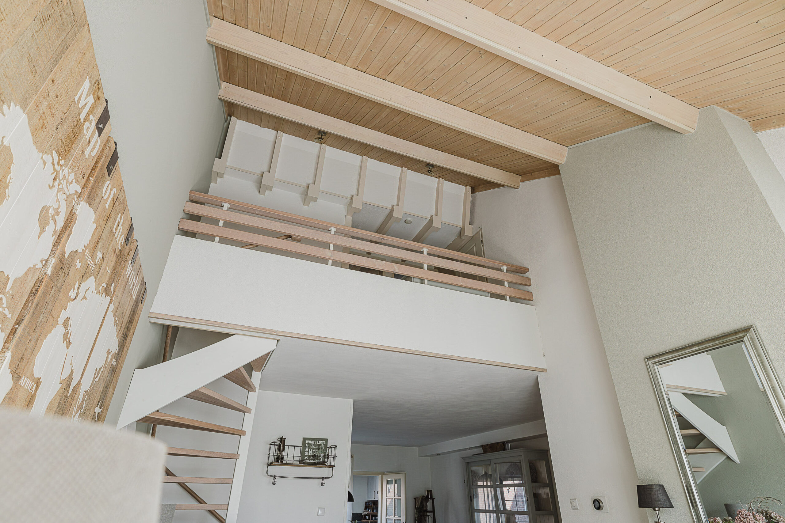 Op de eerste verdieping met vide bevinden zich 2 slaapkamers, een badkamer en een wasruimte/CV-ruimte. De overloop biedt een speels zicht op de woonkamer en is eventueel geschikt als werkplek.