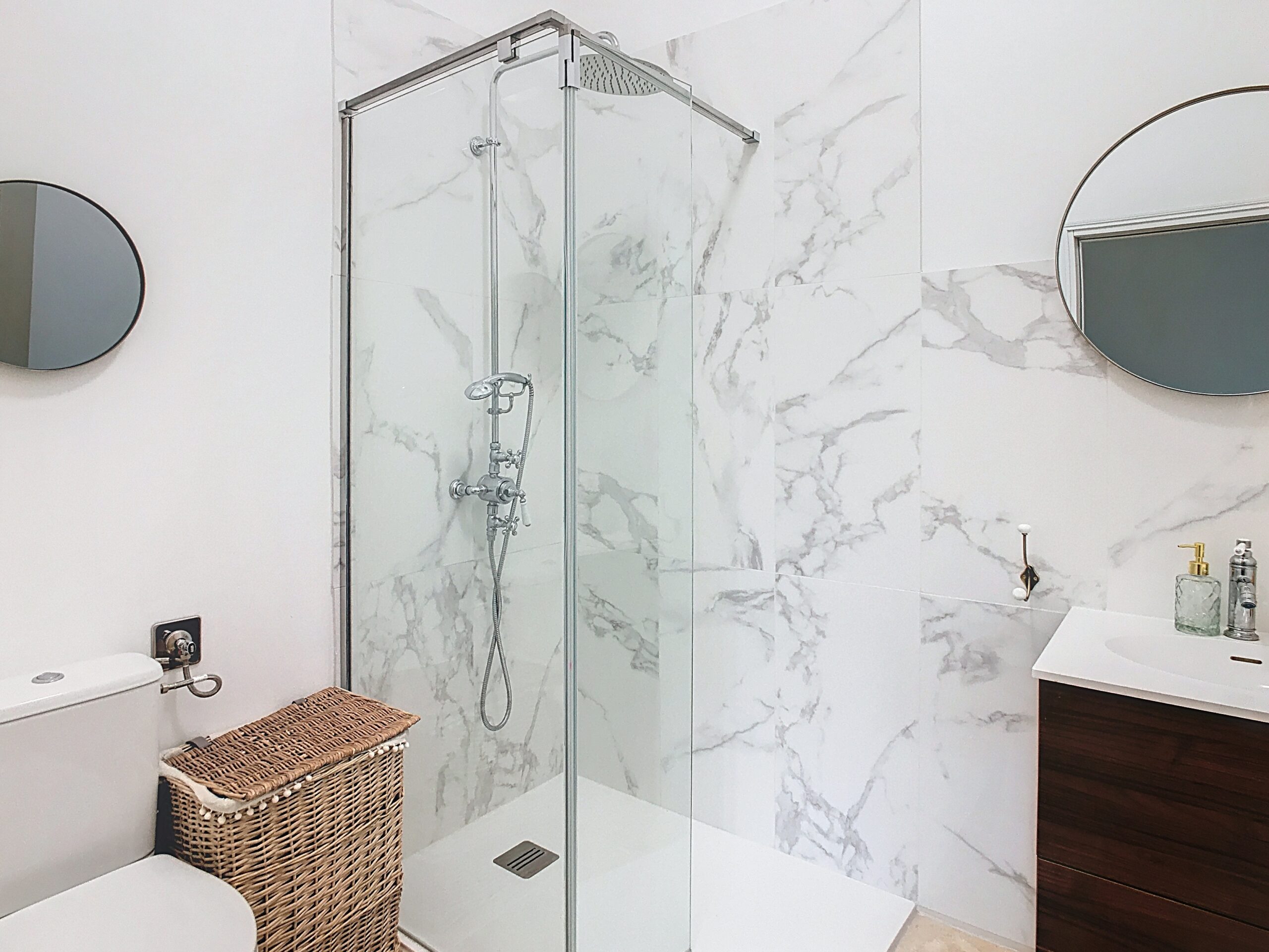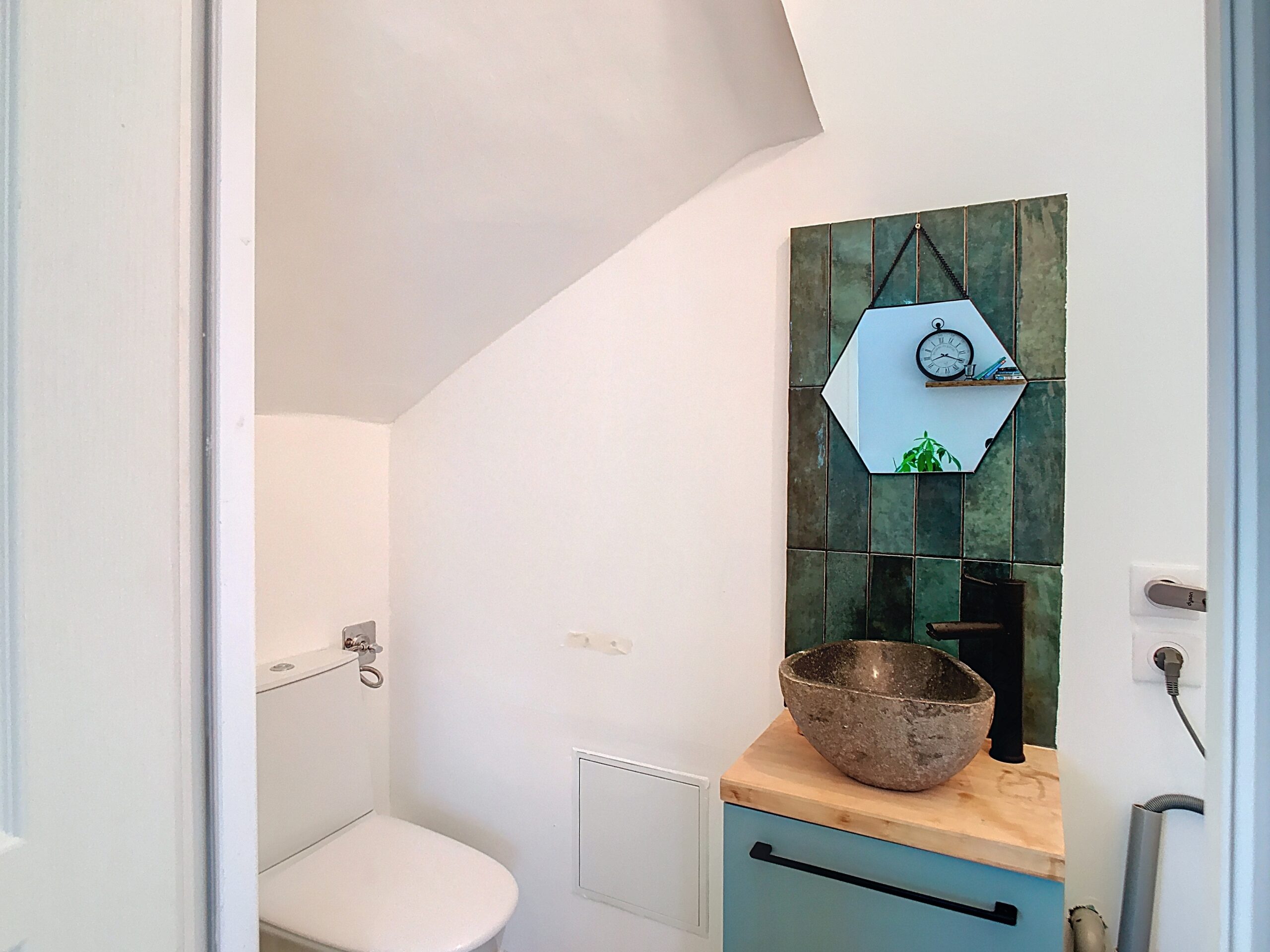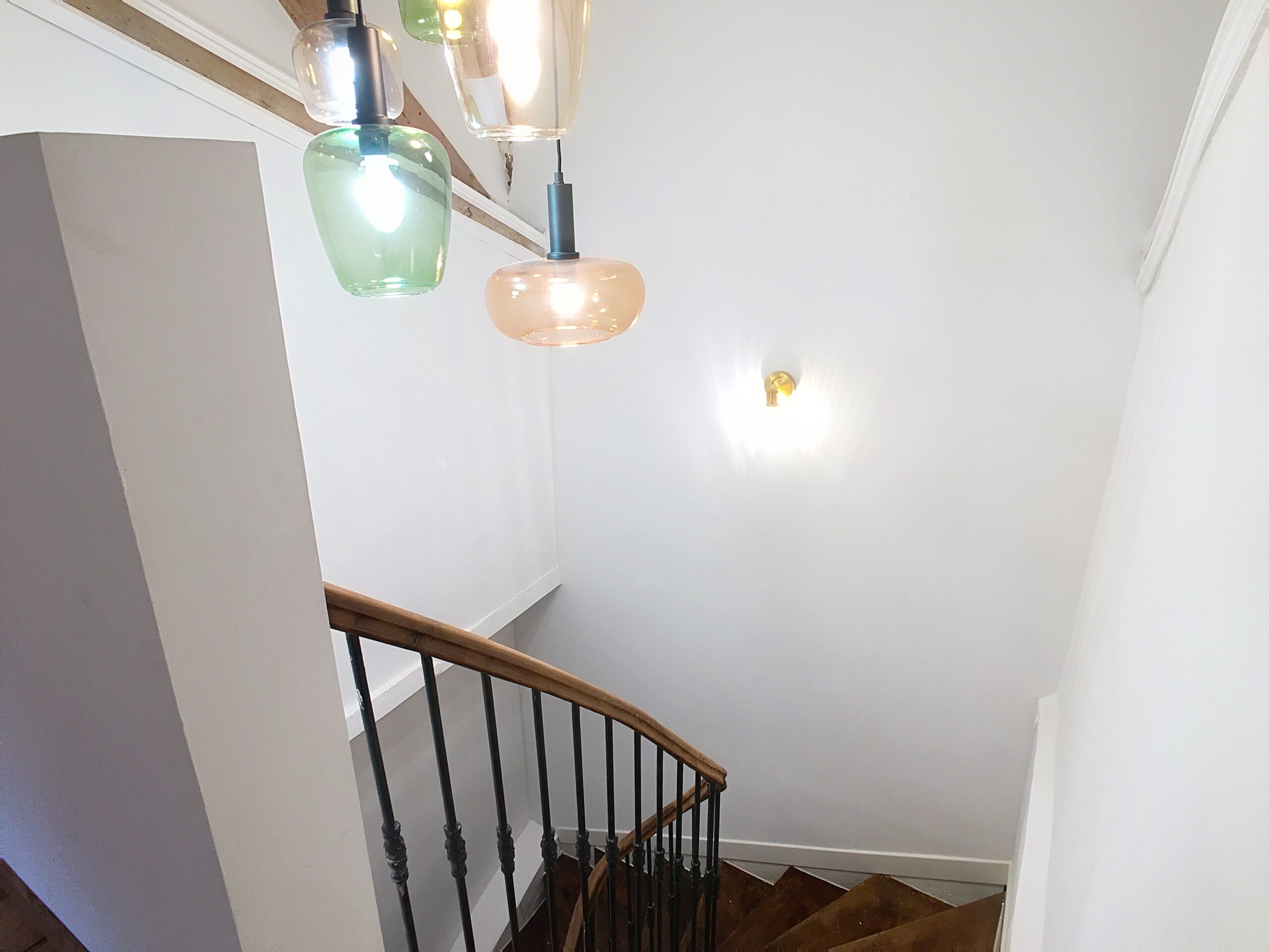 De eerste verdieping beschikt over twee comfortabele slaapkamers, elk met een eigen badkamer met douche. Een kantoorruimte, perfect voor thuiswerken met snel glasvezelinternet. Hier ervaart u rust en privacy, met behoud van de warme, karakteristieke uitstraling van de woning.