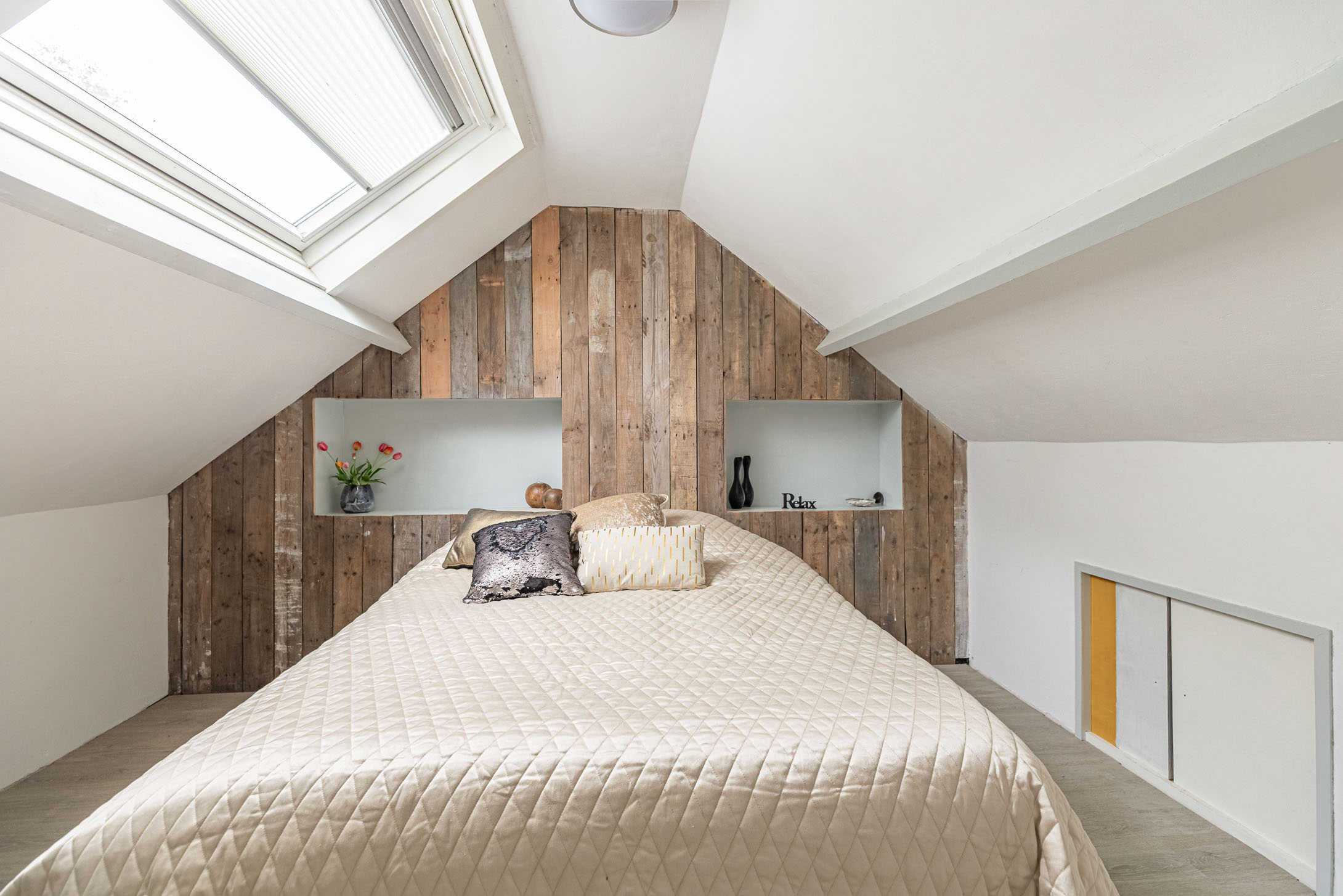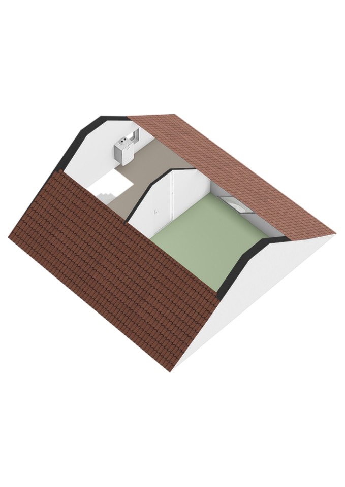 Via een vaste trap kom je op de tweede verdieping. Hier vind je de derde ruime slaapkamer met groot dakraam, die net als de andere kamers keurig is afgewerkt en veel licht biedt. Op de voorzolder zijn de cv-ketel en de aansluitingen voor wasmachine en droger te vinden. Ook is hier volop bergruimte aanwezig.