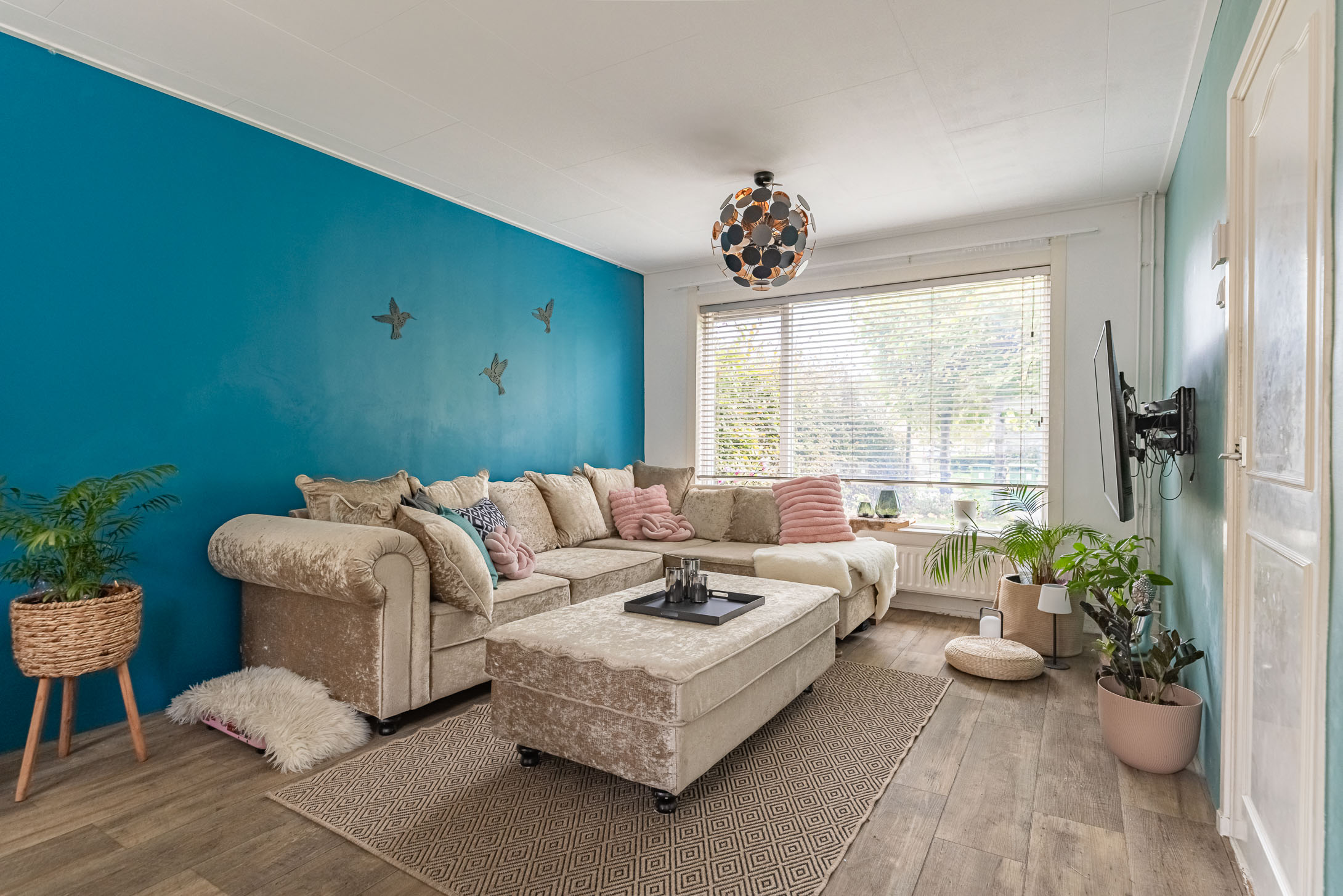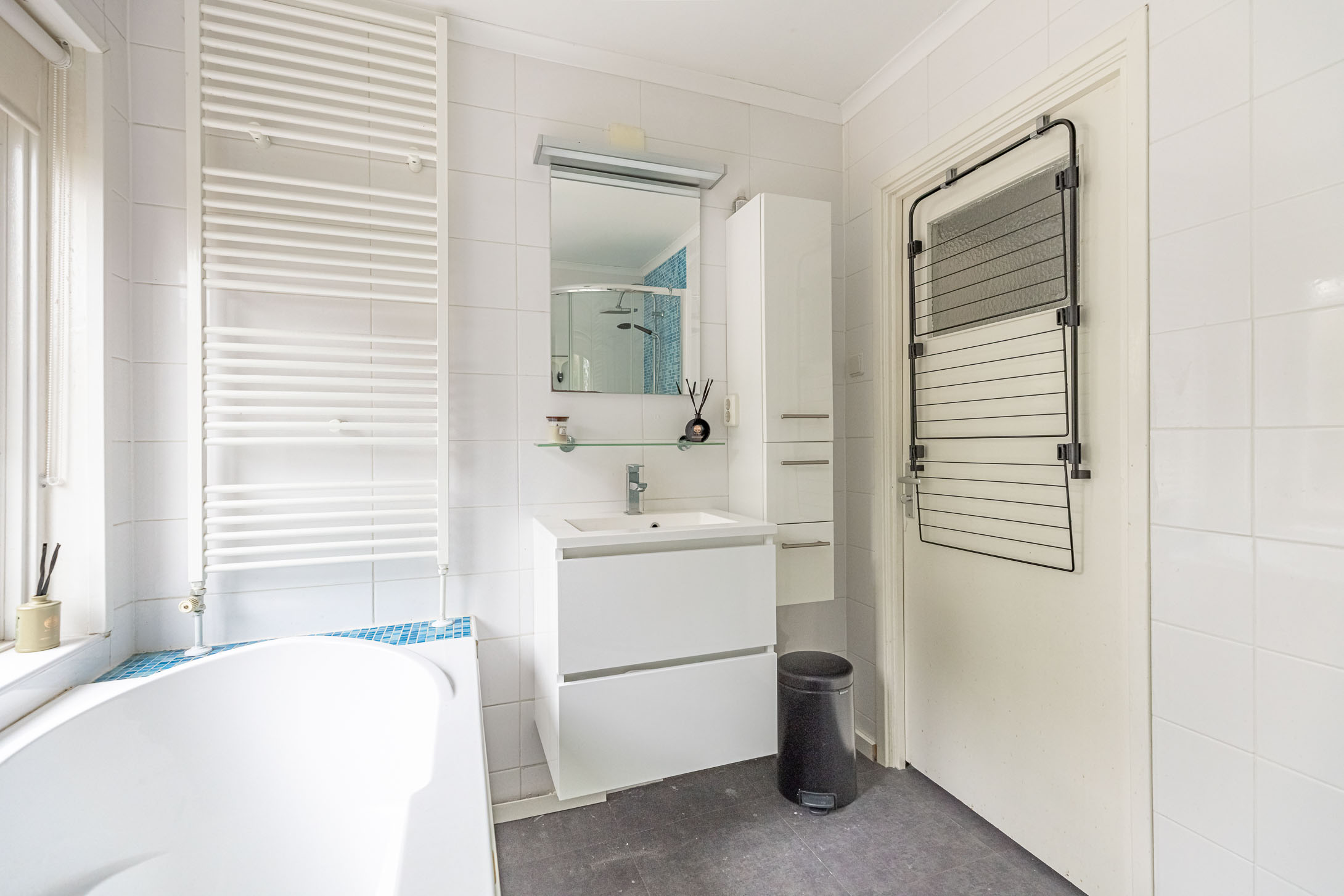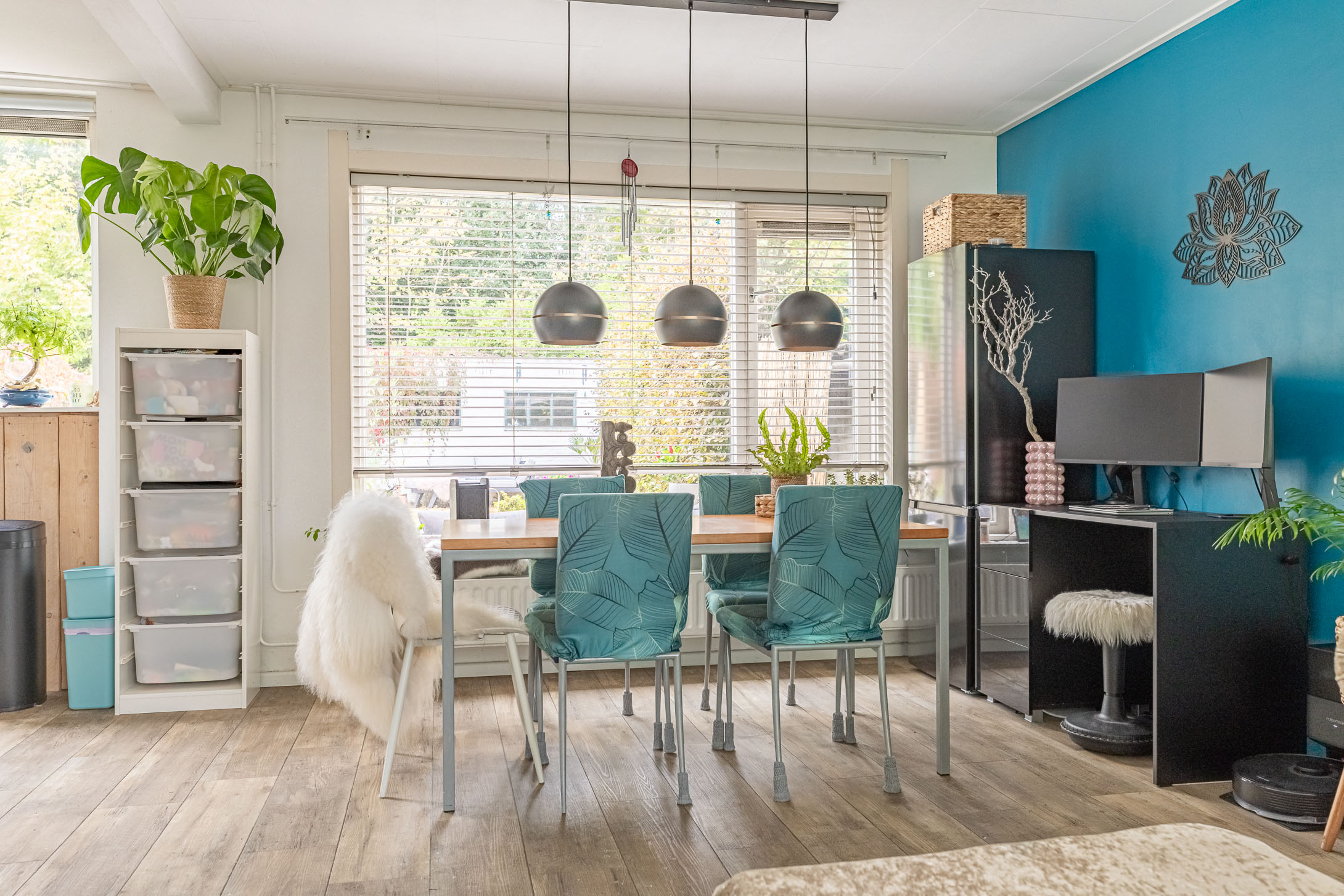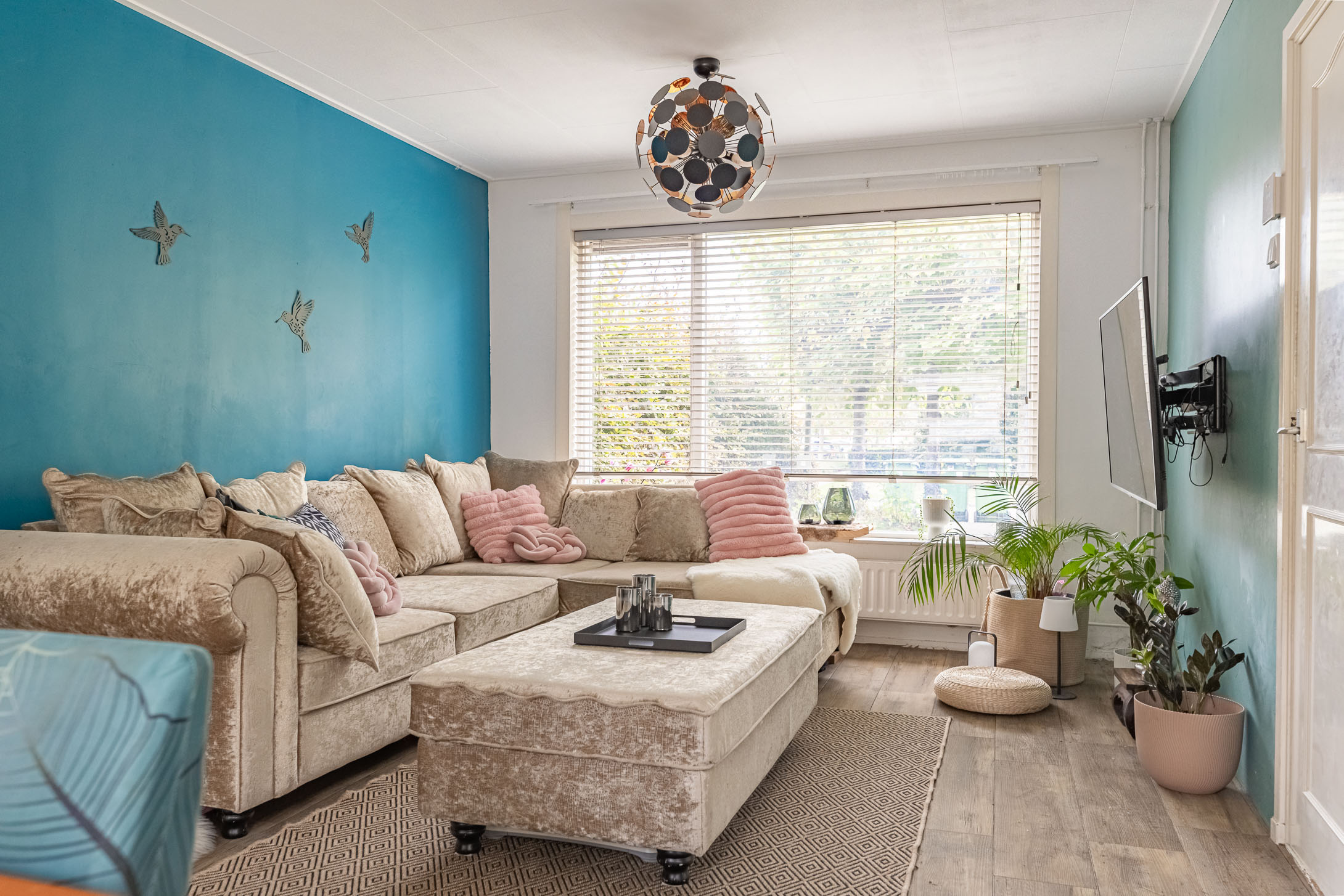 Parkeer je auto gemakkelijk in de straat – er is altijd een plekje – en stap via de voordeur de woning binnen. In de sfeervolle hal vind je het toilet met fonteintje en de trapopgang naar boven. De lichte laminaatvloer loopt door naar de woonkamer, wat zorgt voor een frisse en moderne uitstraling.