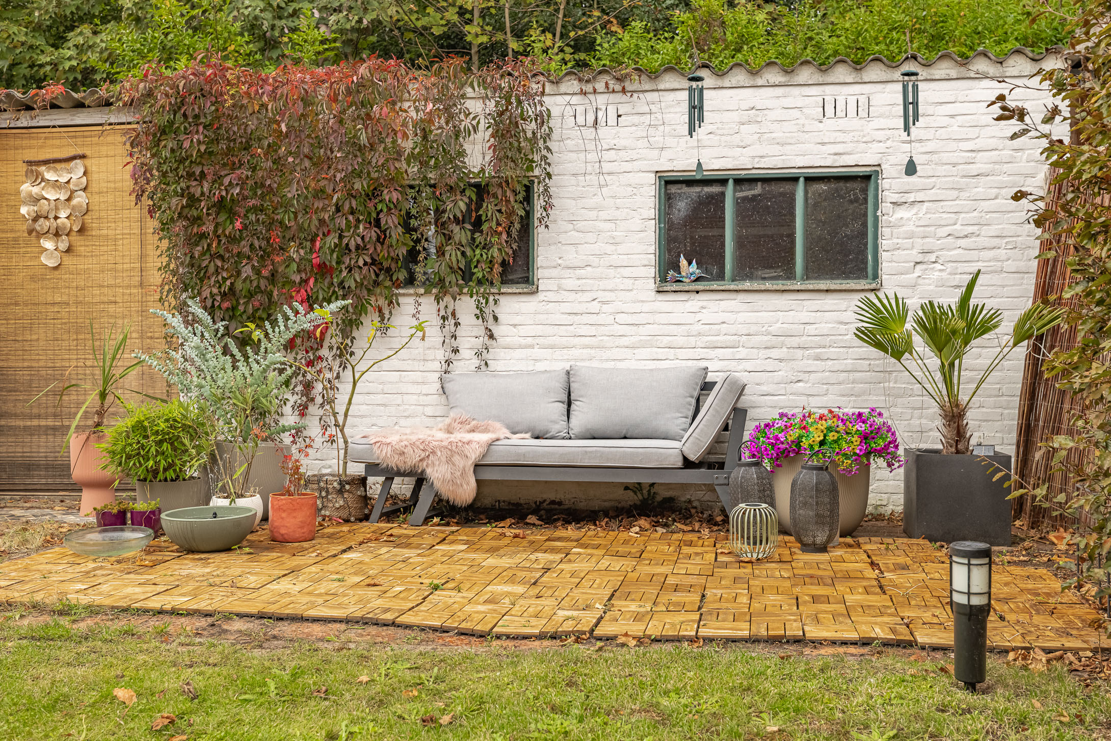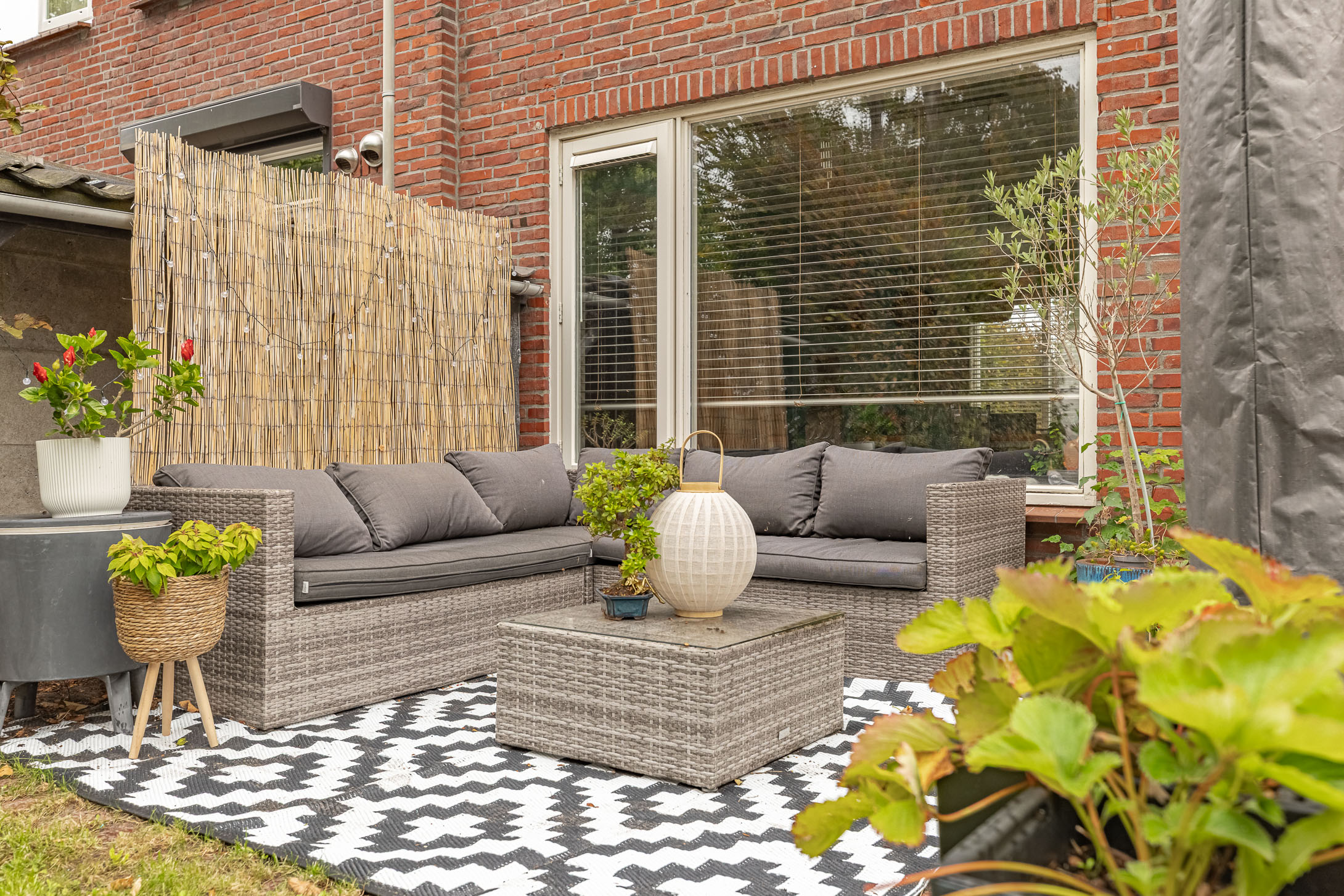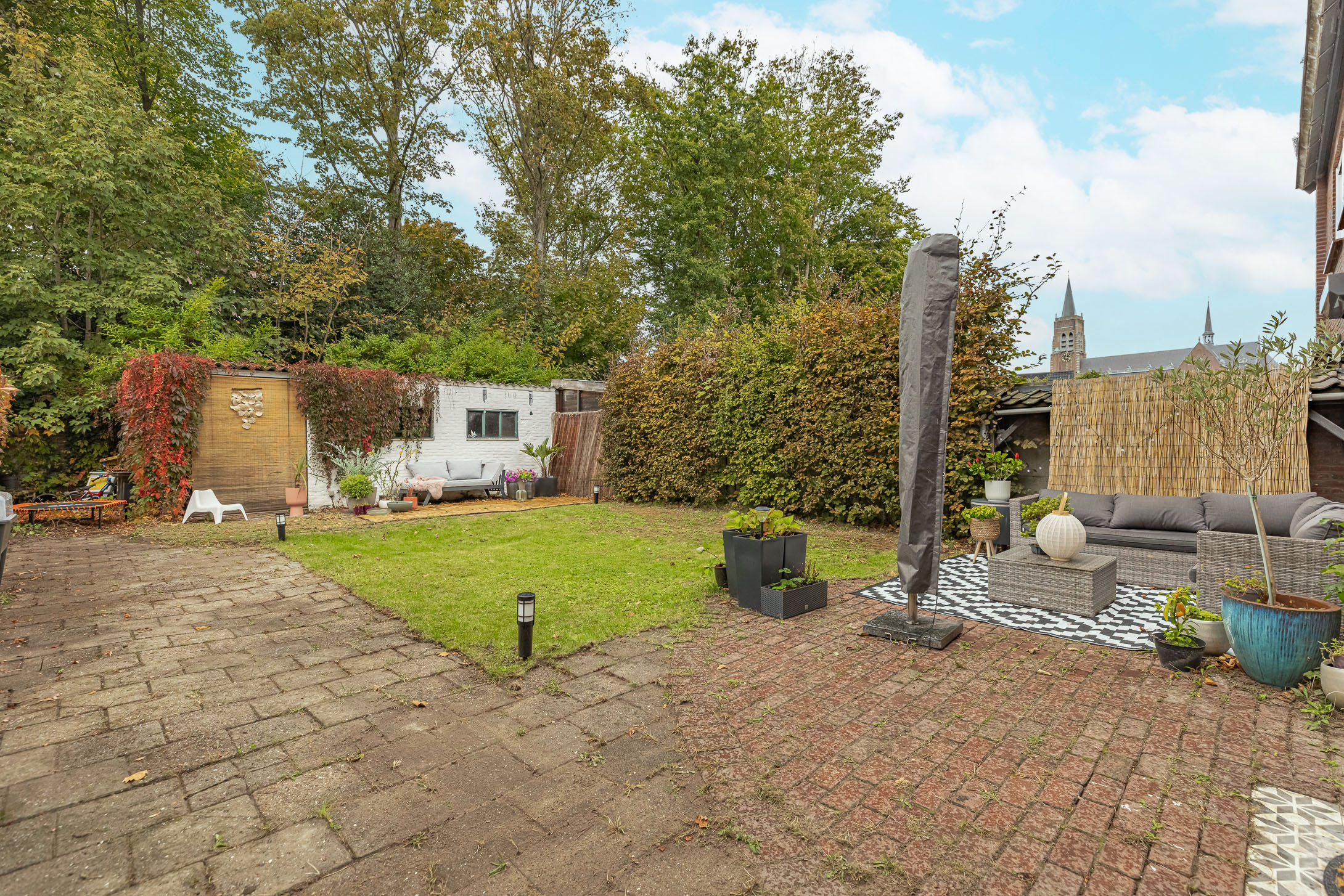 • Zonnige tuin op het westen met veel privacy, zij-ingang en stenen berging