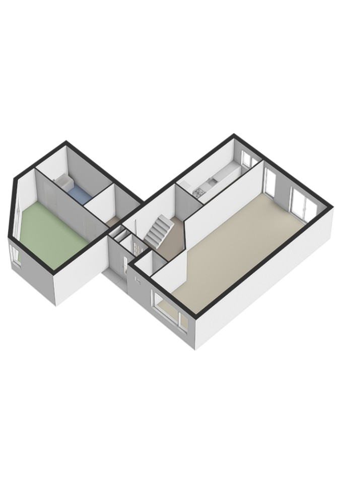 Een groot pluspunt op de begane grond is de ruime slaapkamer met eigen badkamer. Ideaal voor gelijkvloers wonen, maar ook zeer geschikt als kantoor, praktijkruimte, atelier of comfortabele logeerkamer.
