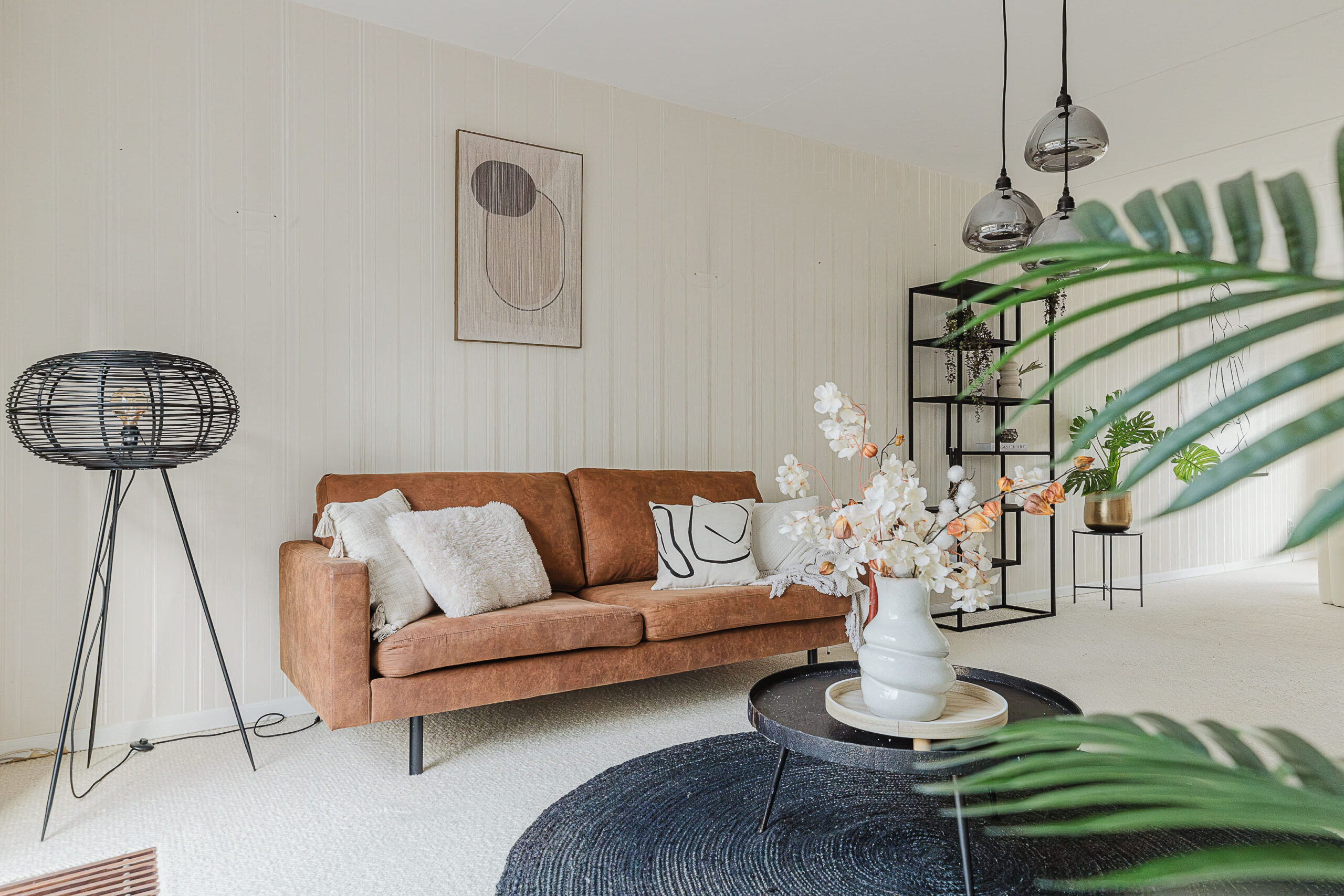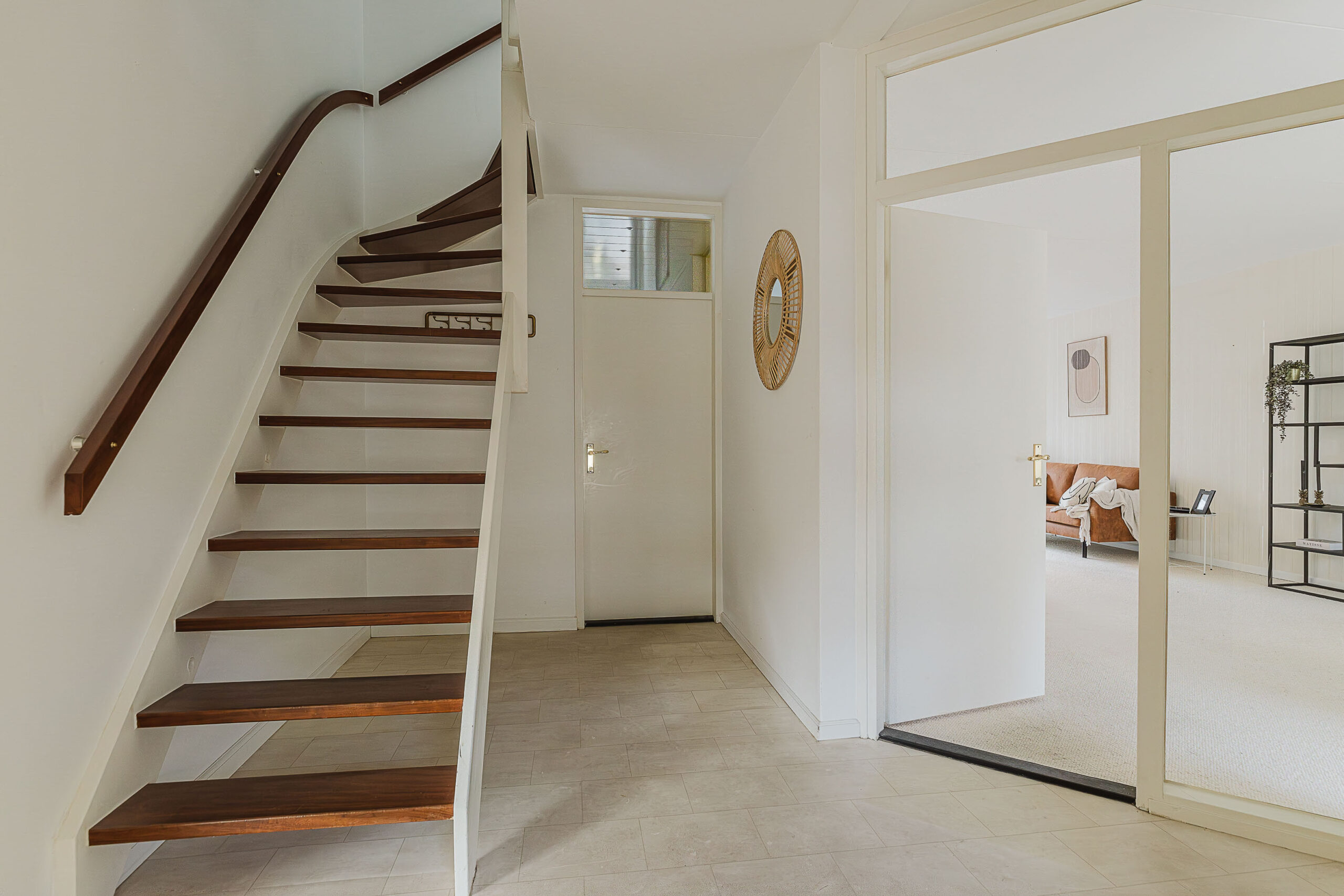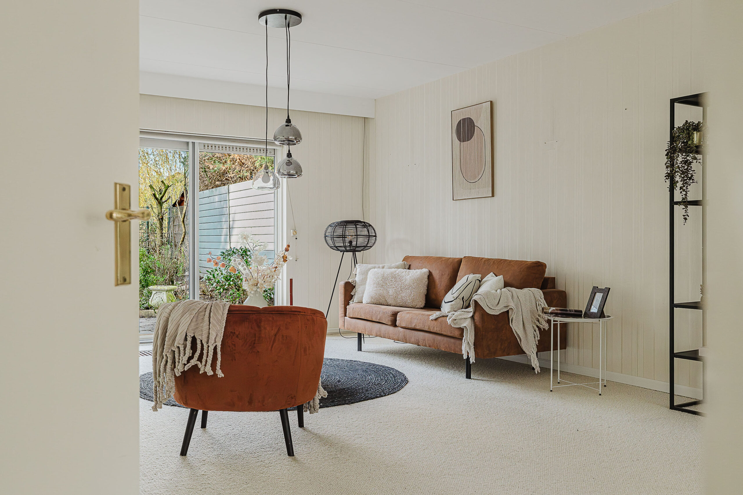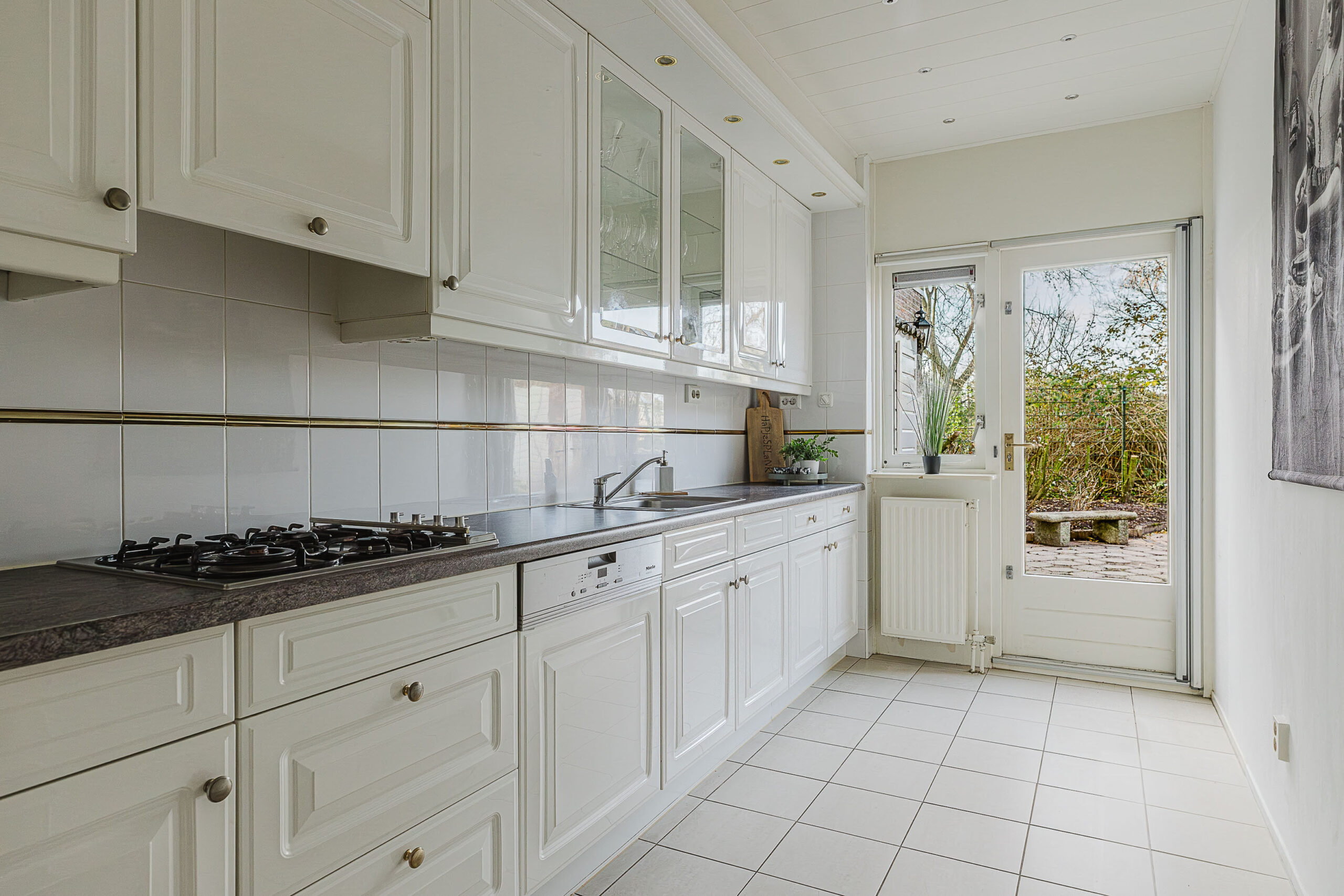 We beginnen in de ruime, uitnodigende hal, die meteen de goede sfeer en het royale karakter van deze woning laat zien. Vanuit de hal stappen we de lichte woonkamer binnen. Hier valt direct de fijne leefruimte op: grote ramen en tuindeuren creëren een warme, open sfeer. Aansluitend vinden we de aparte, ruime keuken, die voldoende plek biedt om uitgebreid te koken.