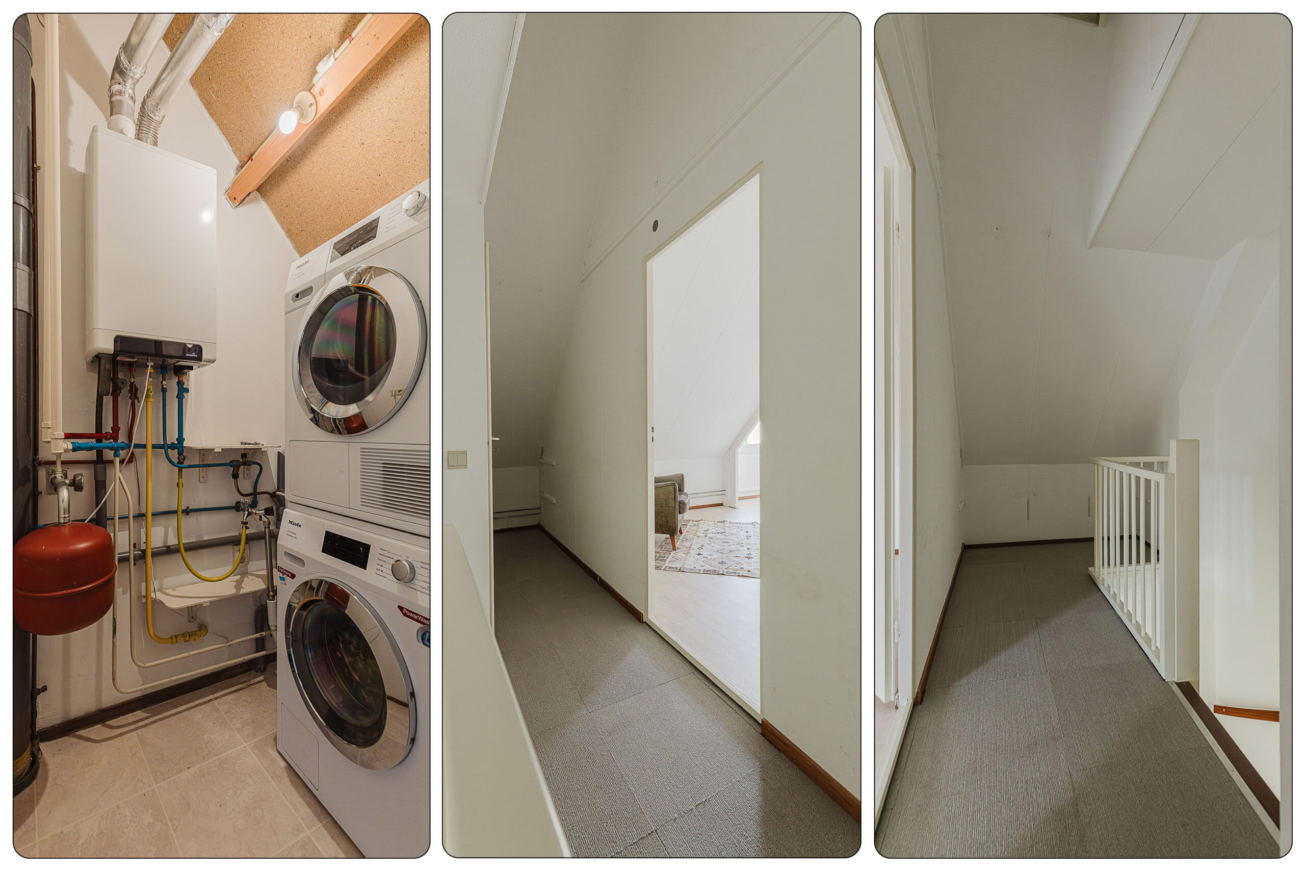 Via een vaste trap bereiken we de zeer ruime zolderverdieping. Deze ruimte biedt volop mogelijkheden: denk aan een extra slaapkamer, hobbyruimte, speelzolder of grote bergzolder — net wat u nodig heeft. Tevens bevindt zich hier de cv-ketel en de aansluitingen voor de wasmachine en droger.