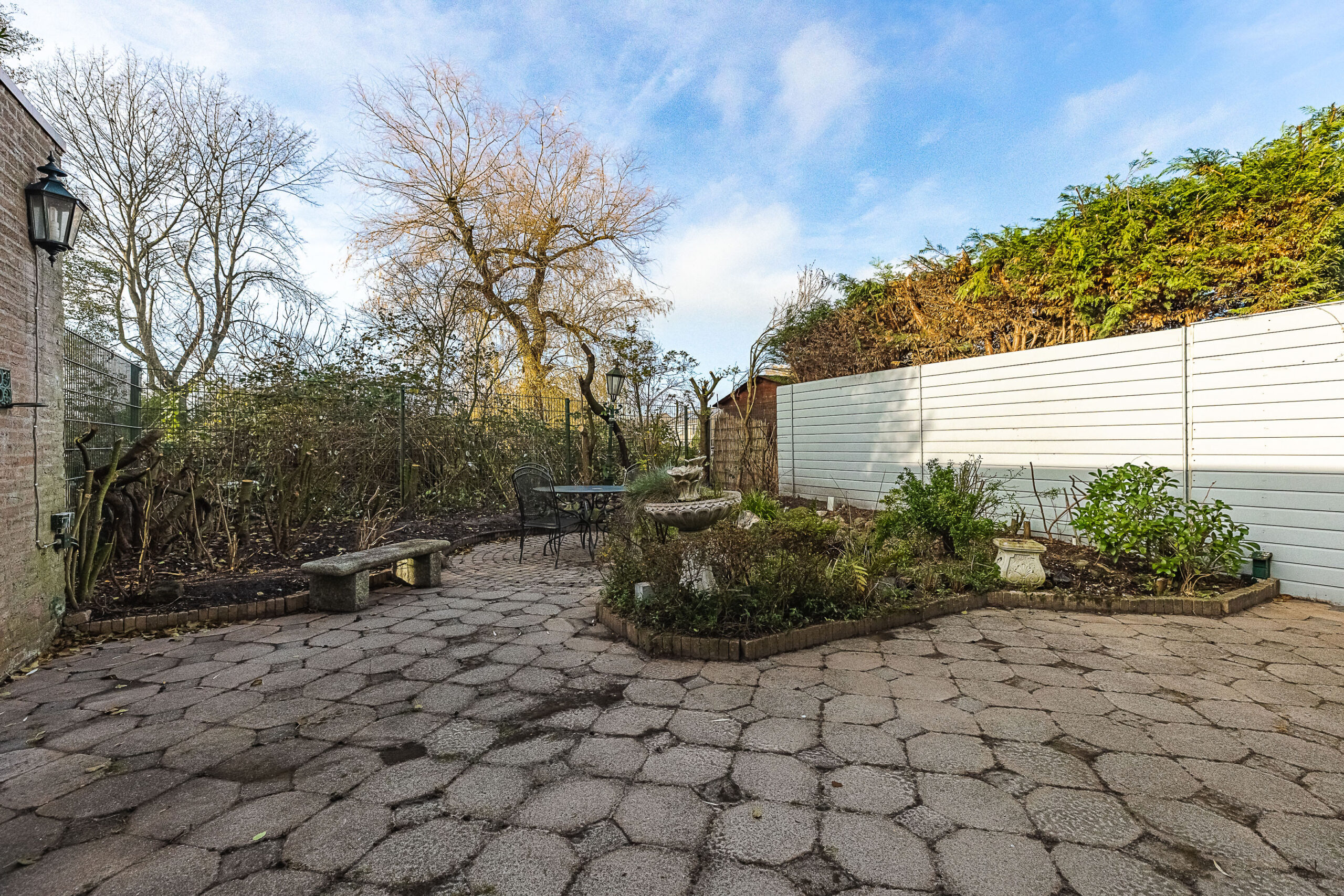 De achtertuin ligt op het westen, waardoor u de hele middag en avond van de zon kunt genieten. De groene, vrije ligging aan de achterzijde zorgt bovendien voor veel privacy.