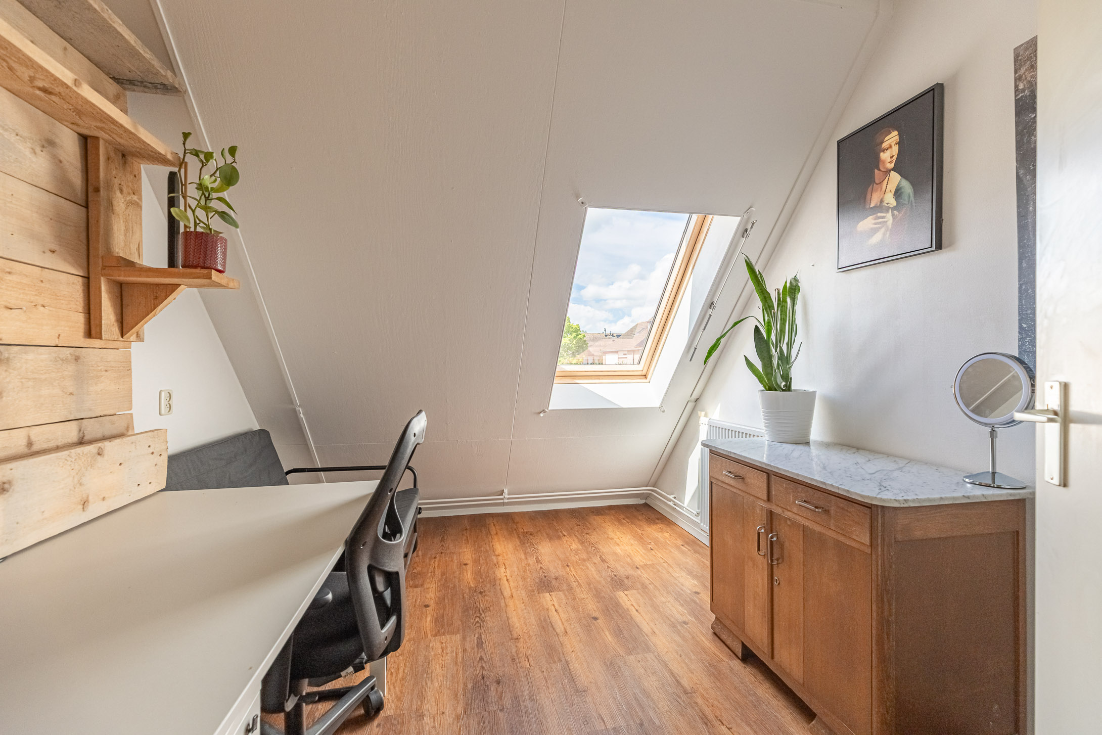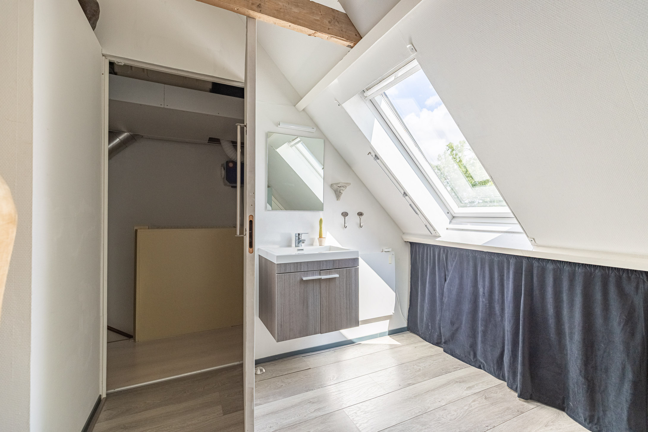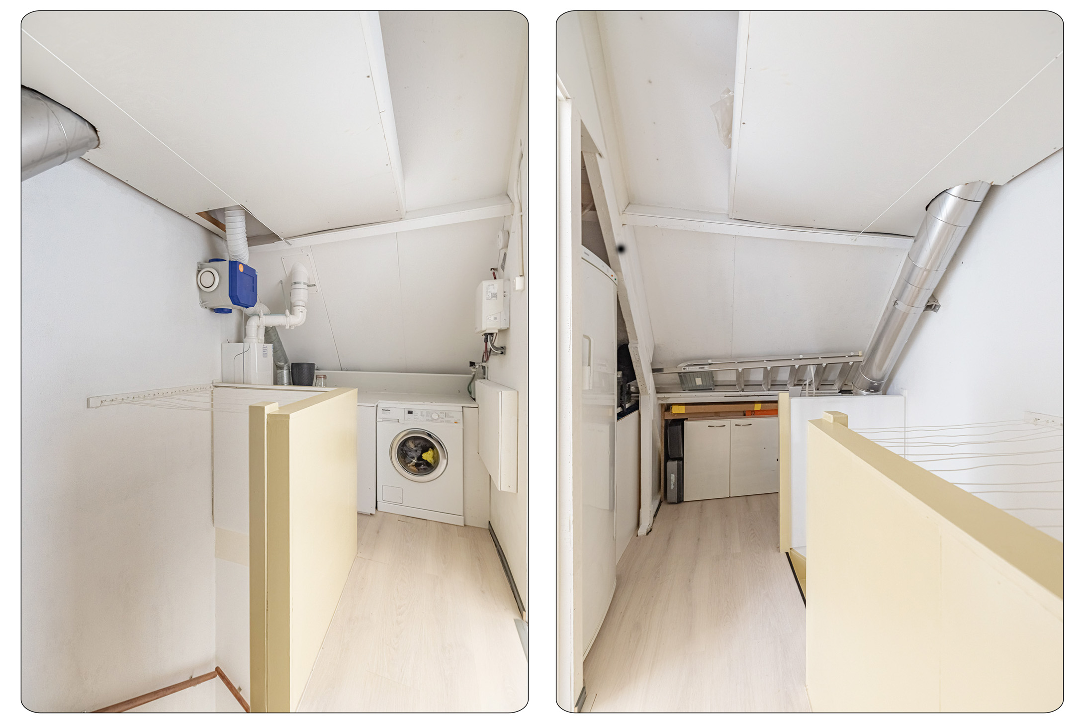 Via een vaste trap kom je op de tweede verdieping. Hier vind je een vierde slaapkamer met eigen wastafel – perfect als extra slaapkamer, werkplek of creatieve studio. Op de voorzolder is plek voor je wasmachine en droger: handig en netjes weggewerkt.