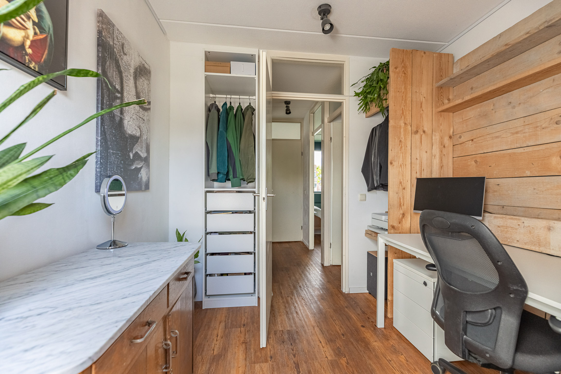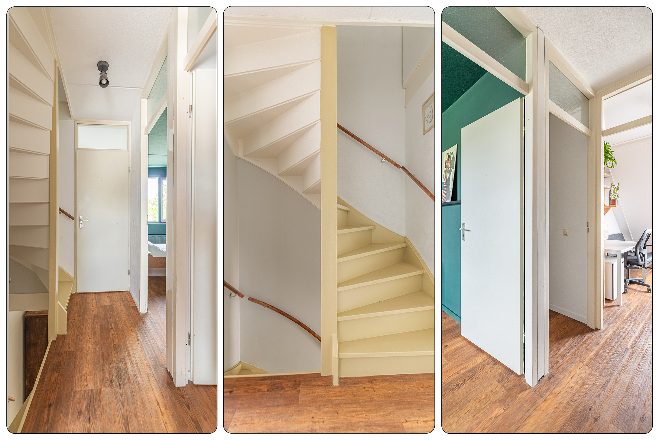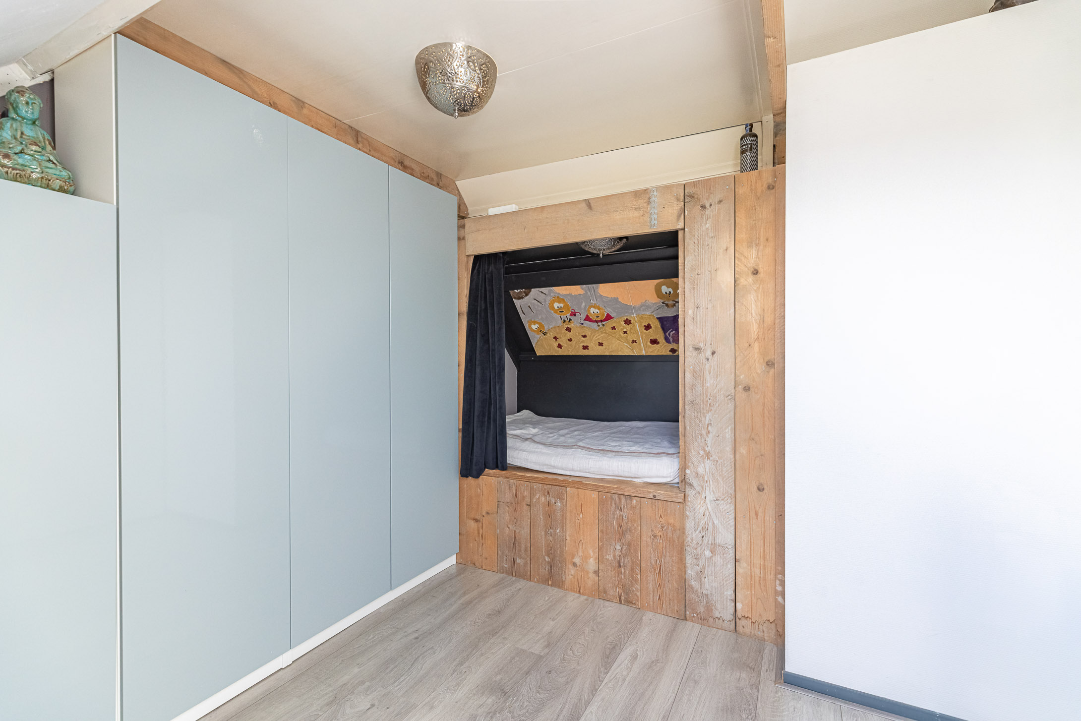 Via een vaste trap kom je op de tweede verdieping. Hier vind je een vierde slaapkamer met eigen wastafel – perfect als extra slaapkamer, werkplek of creatieve studio. Op de voorzolder is plek voor je wasmachine en droger: handig en netjes weggewerkt.