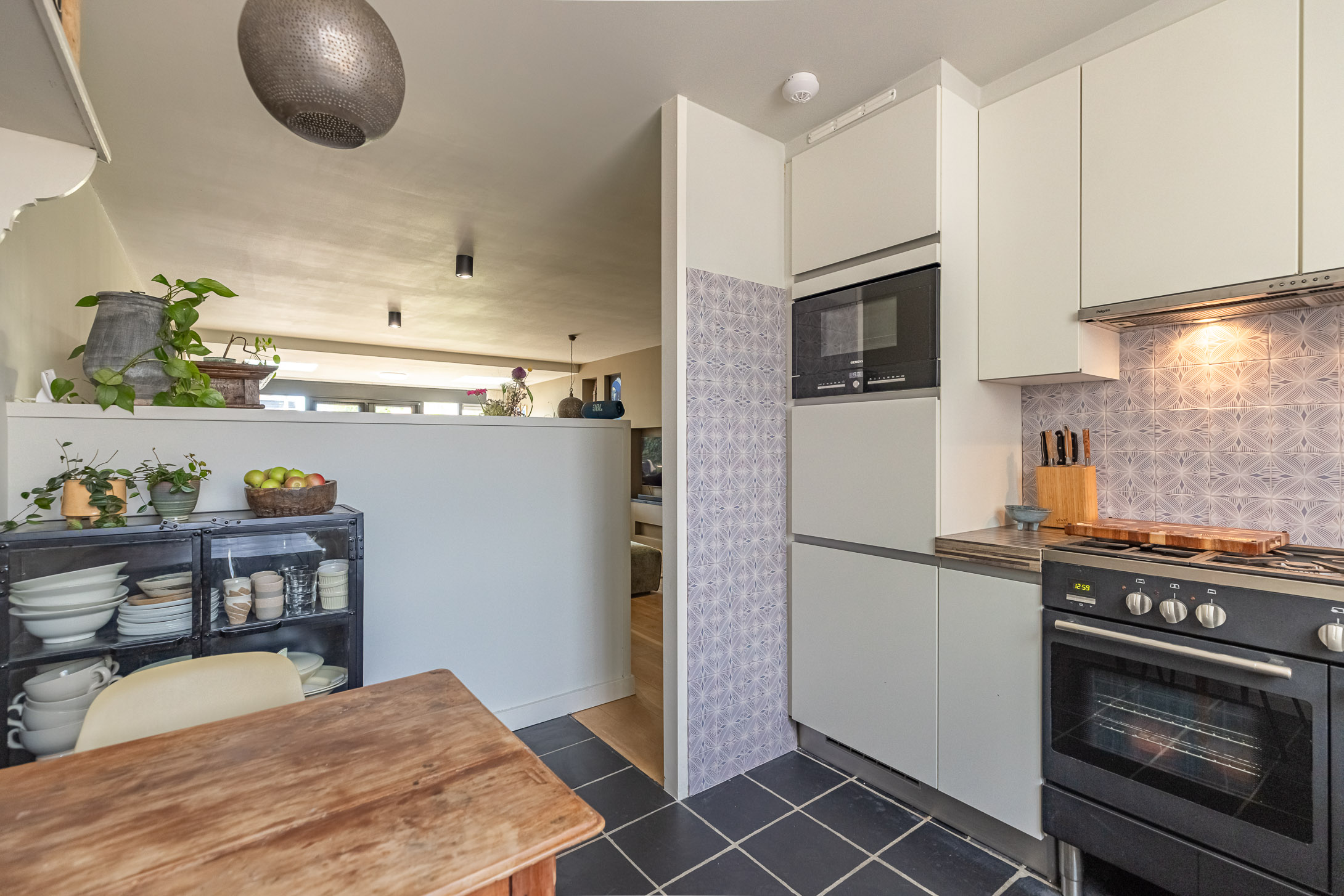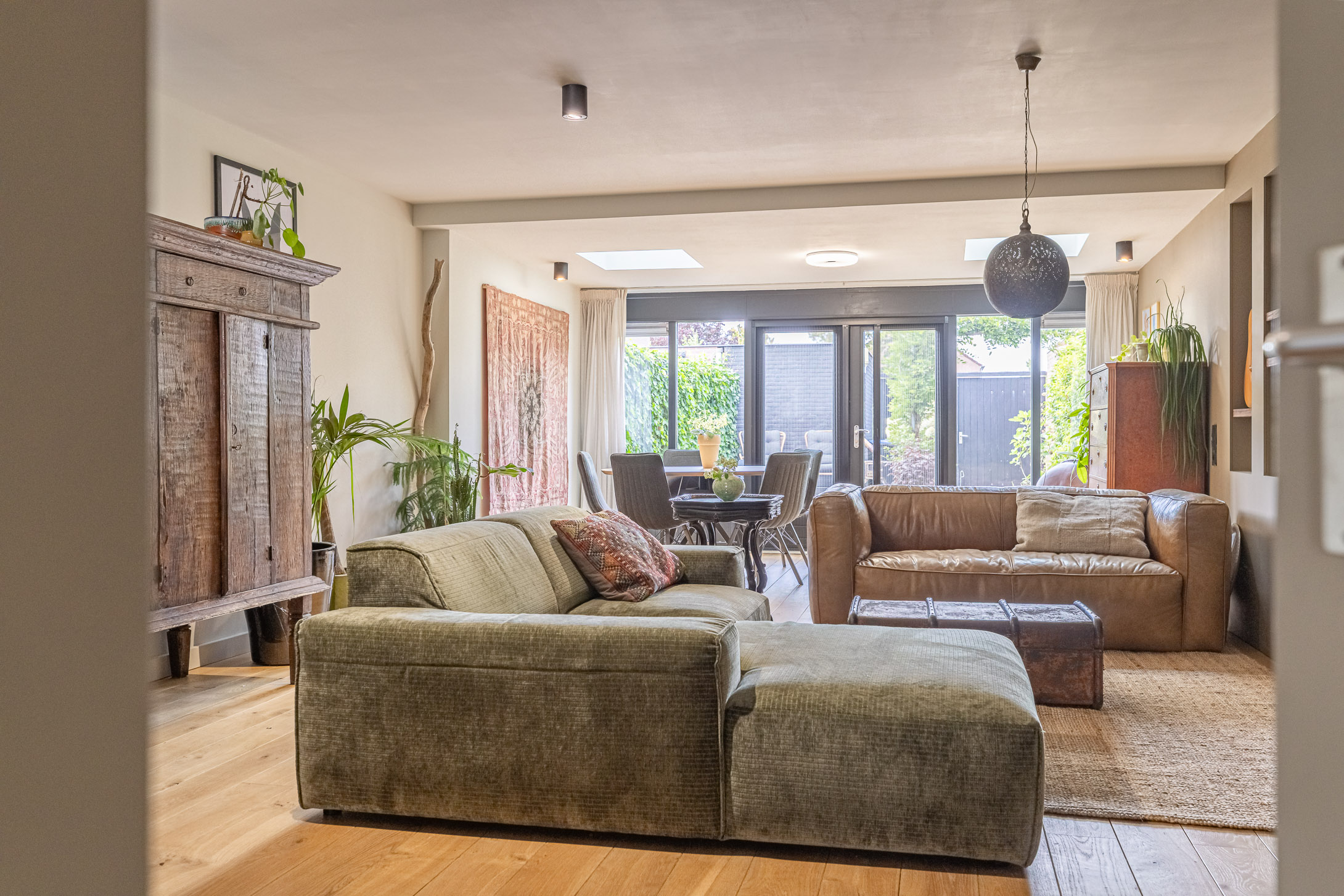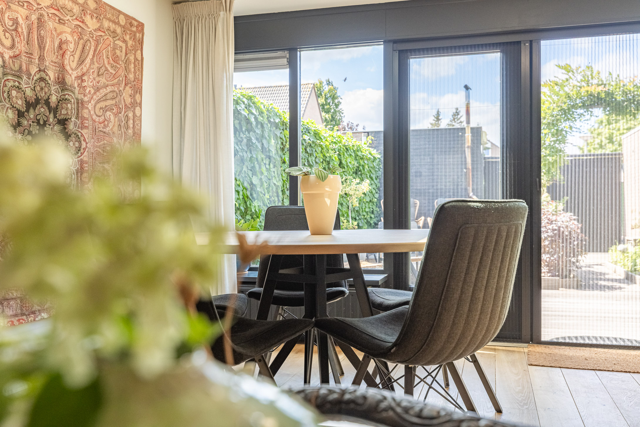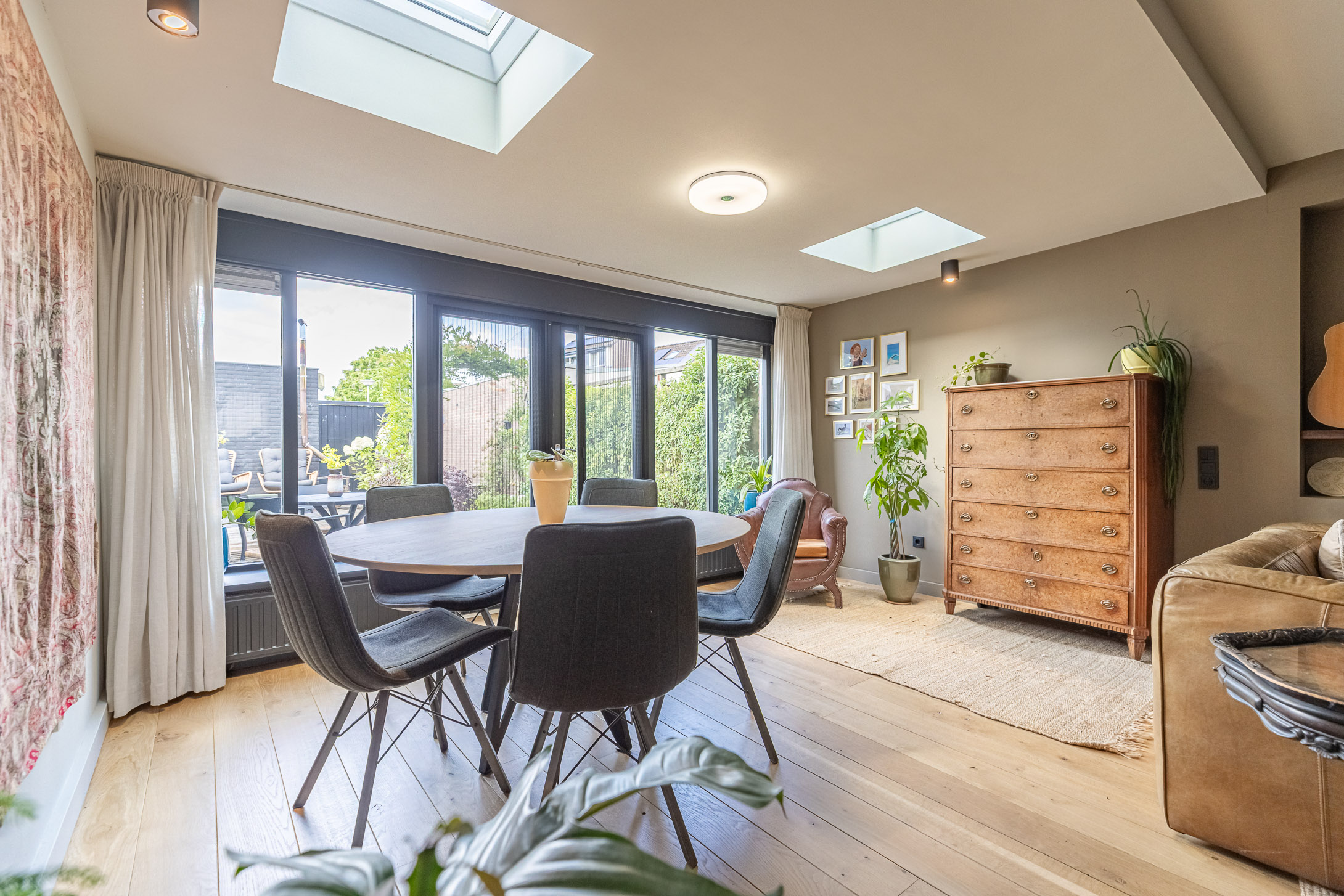 De woonkamer is lekker ruim en licht, mede dankzij de grote raampartijen én twee lichtkoepels met dubbel glas en screens. Er is genoeg plek voor een comfortabele zithoek én een grote eettafel. De open keuken aan de voorzijde is modern en van alle gemakken voorzien: een vaatwasser, Quooker, koelkast, magnetron, afzuigkap, twee ovens én een gasfornuis. Koken met uitzicht op de straat, terwijl je toch verbonden blijft met de rest van de woonkamer – ideaal! Via de woonkamer loop je zo de fraai aangelegde achtertuin in.