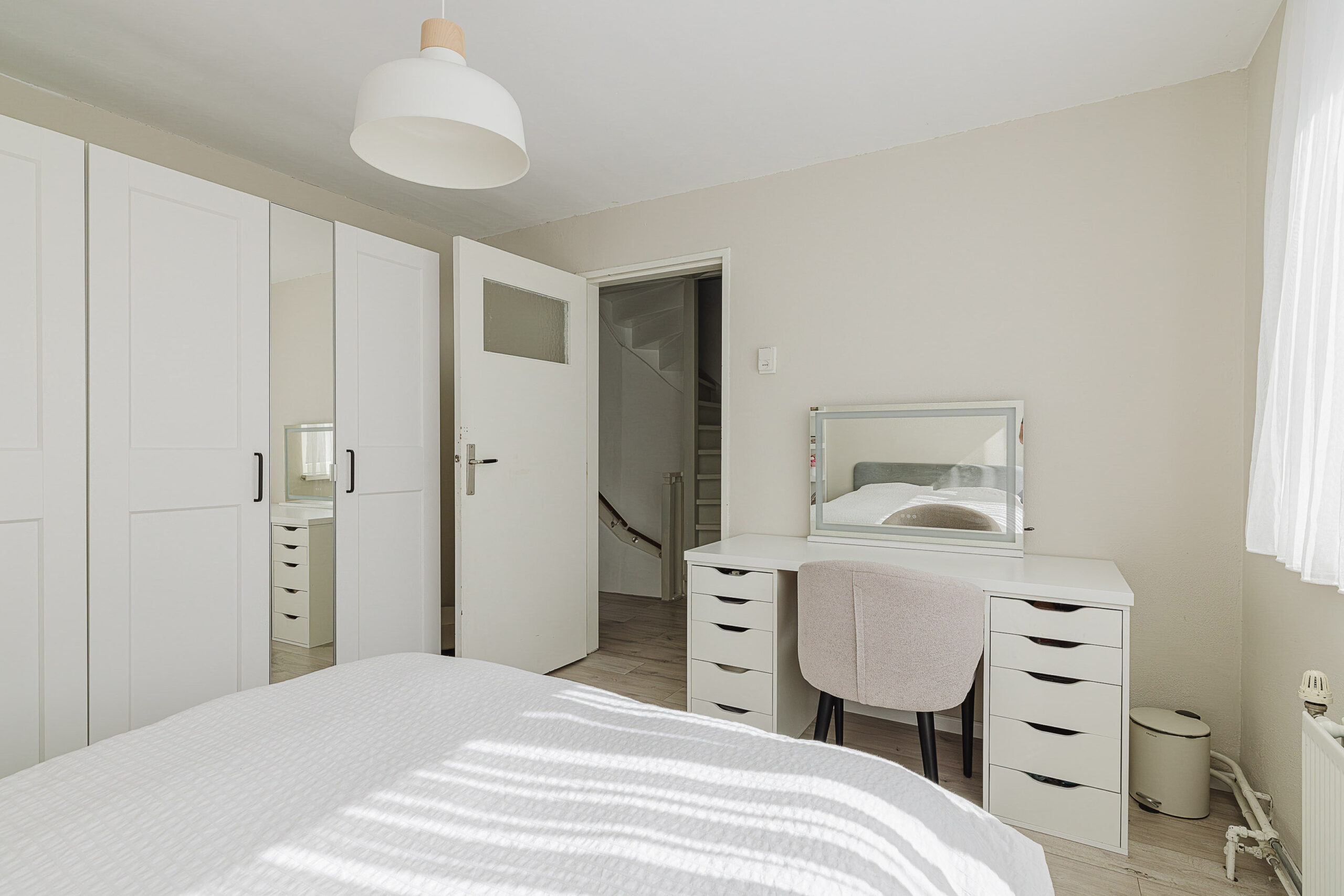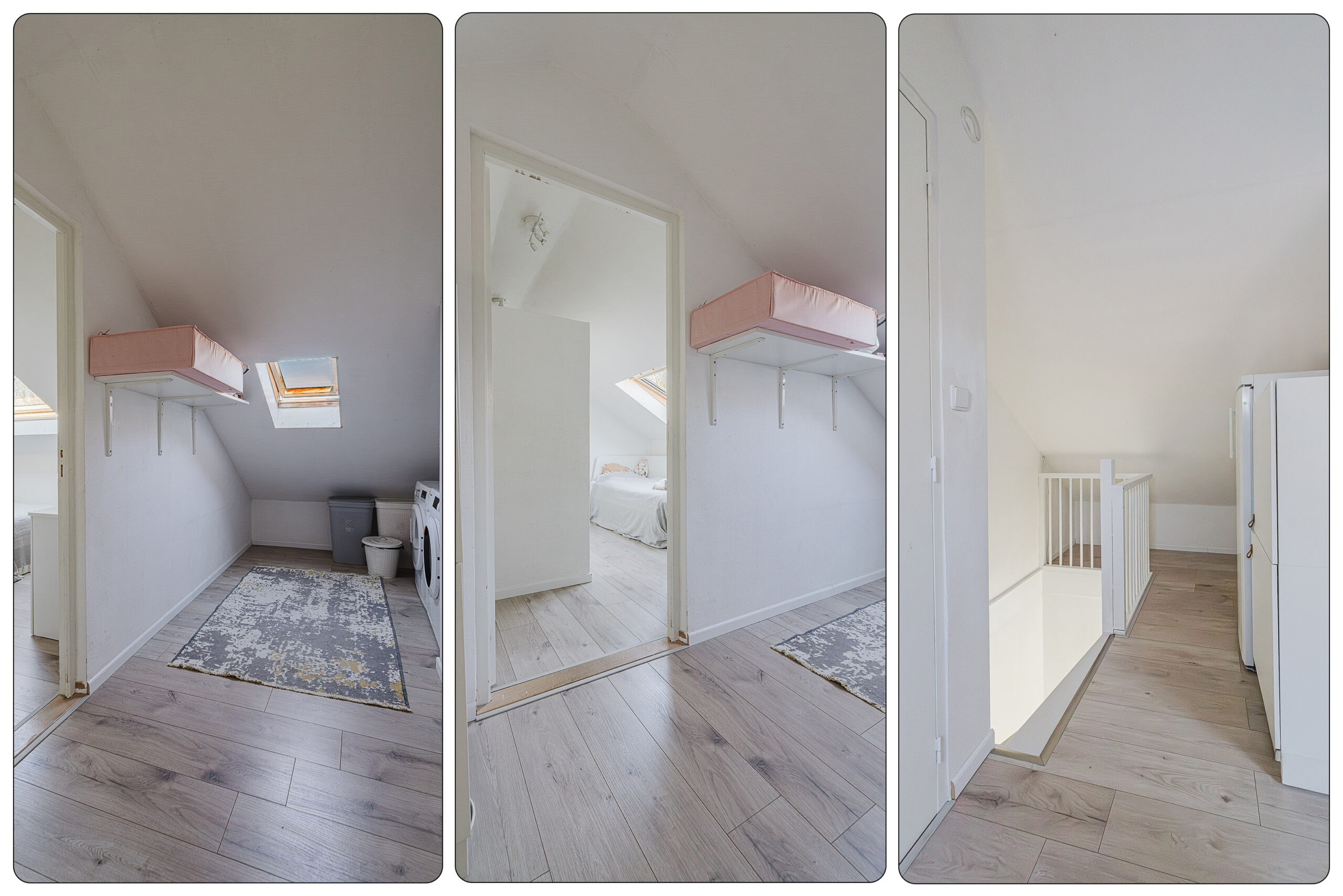 De zolderverdieping is verrassend ruim opgezet en beschikt over een royale slaapkamer met een dakraam, wat zorgt voor een prettige en natuurlijke lichtinval. Op de voorzolder bevindt zich een praktische wasruimte, voorzien van aansluitingen voor zowel een wasmachine als een droger.