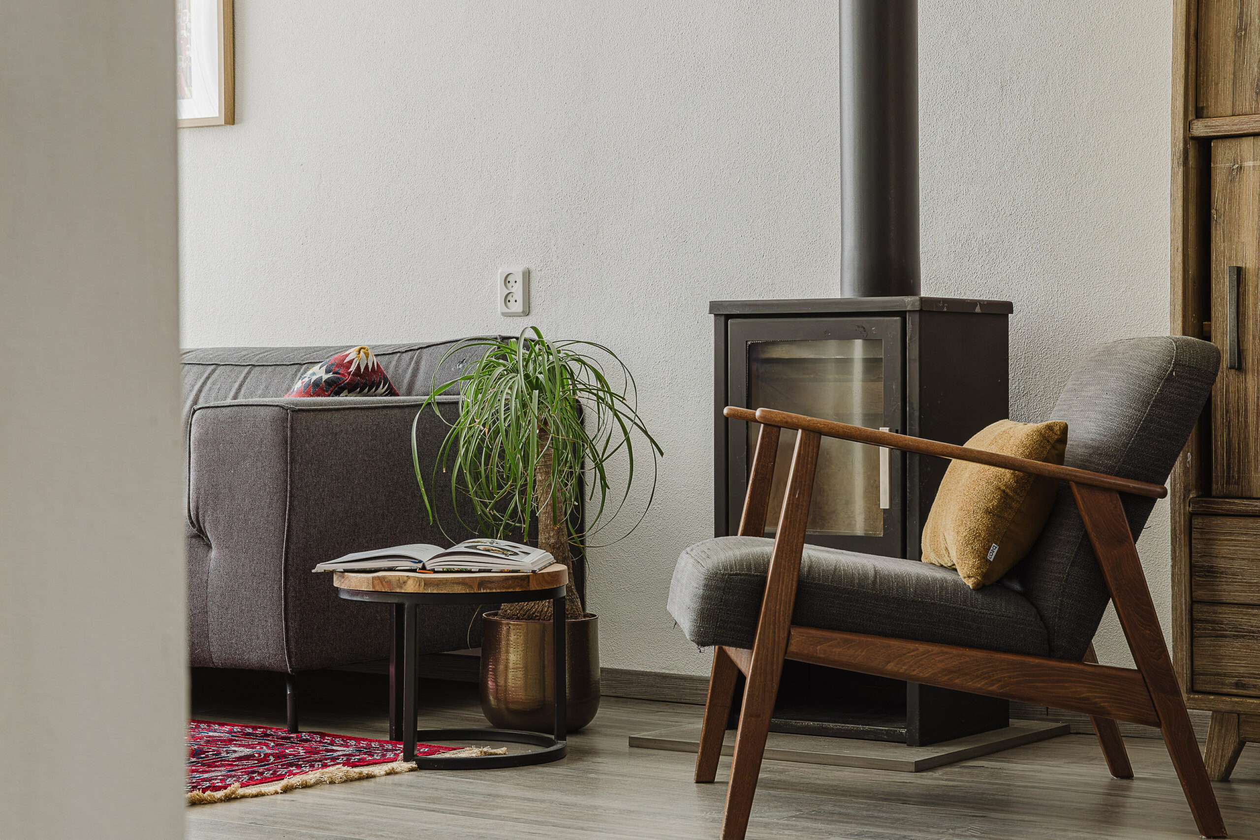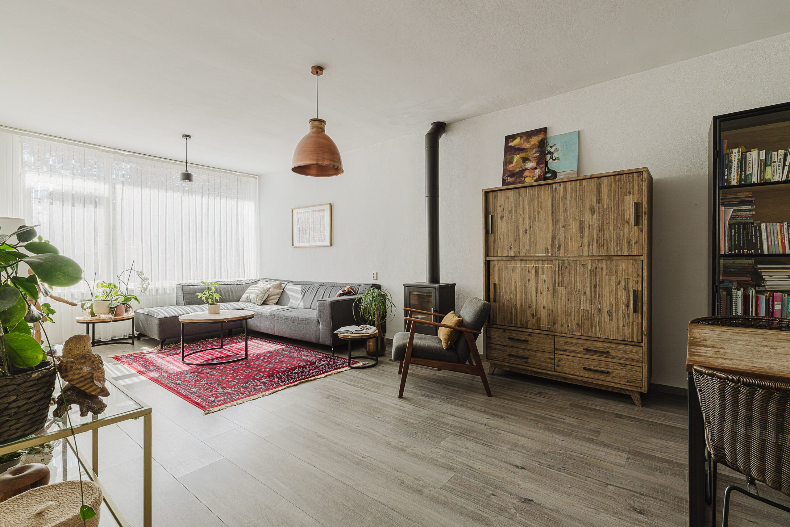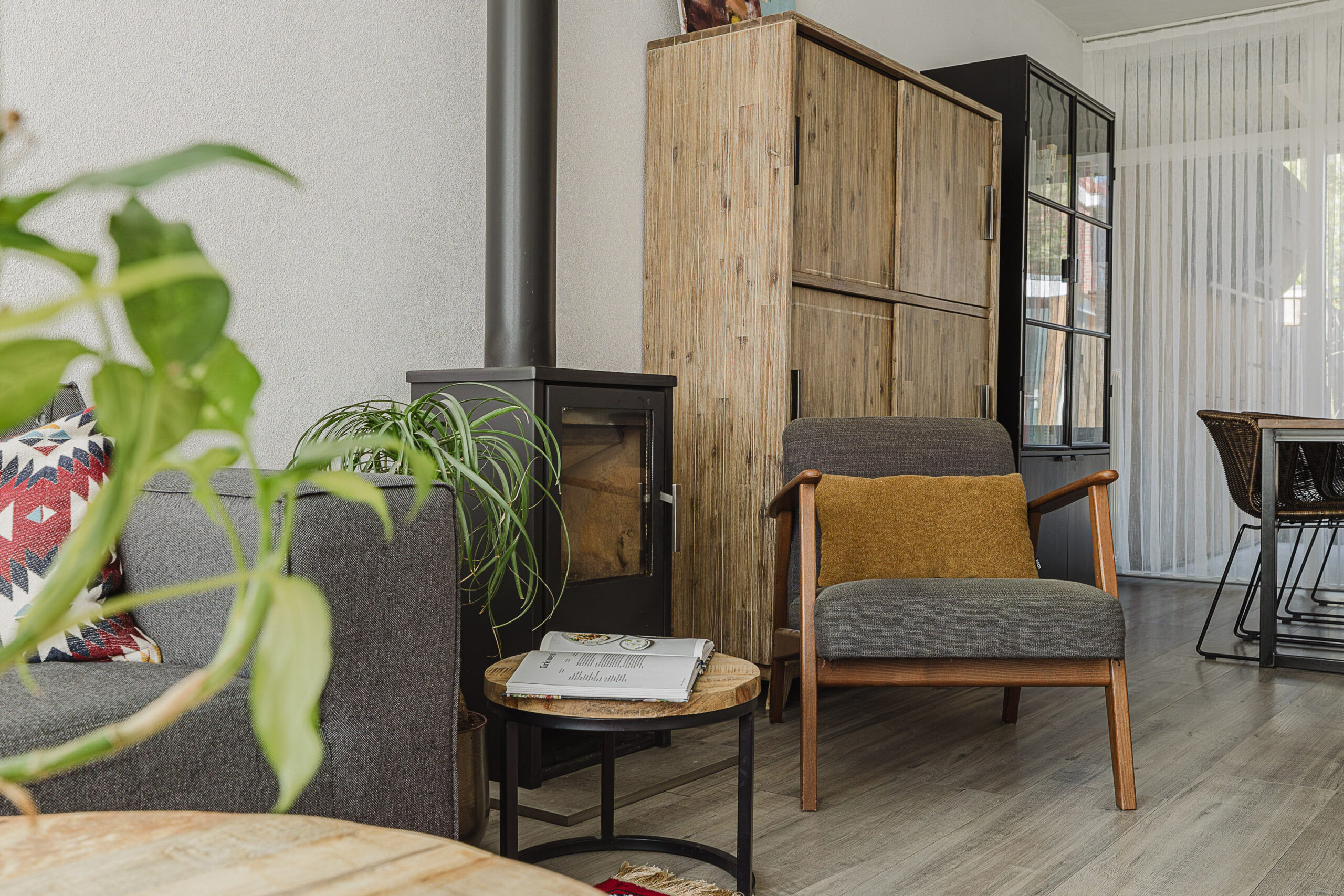 • Woonkamer met sfeervolle houtkachel