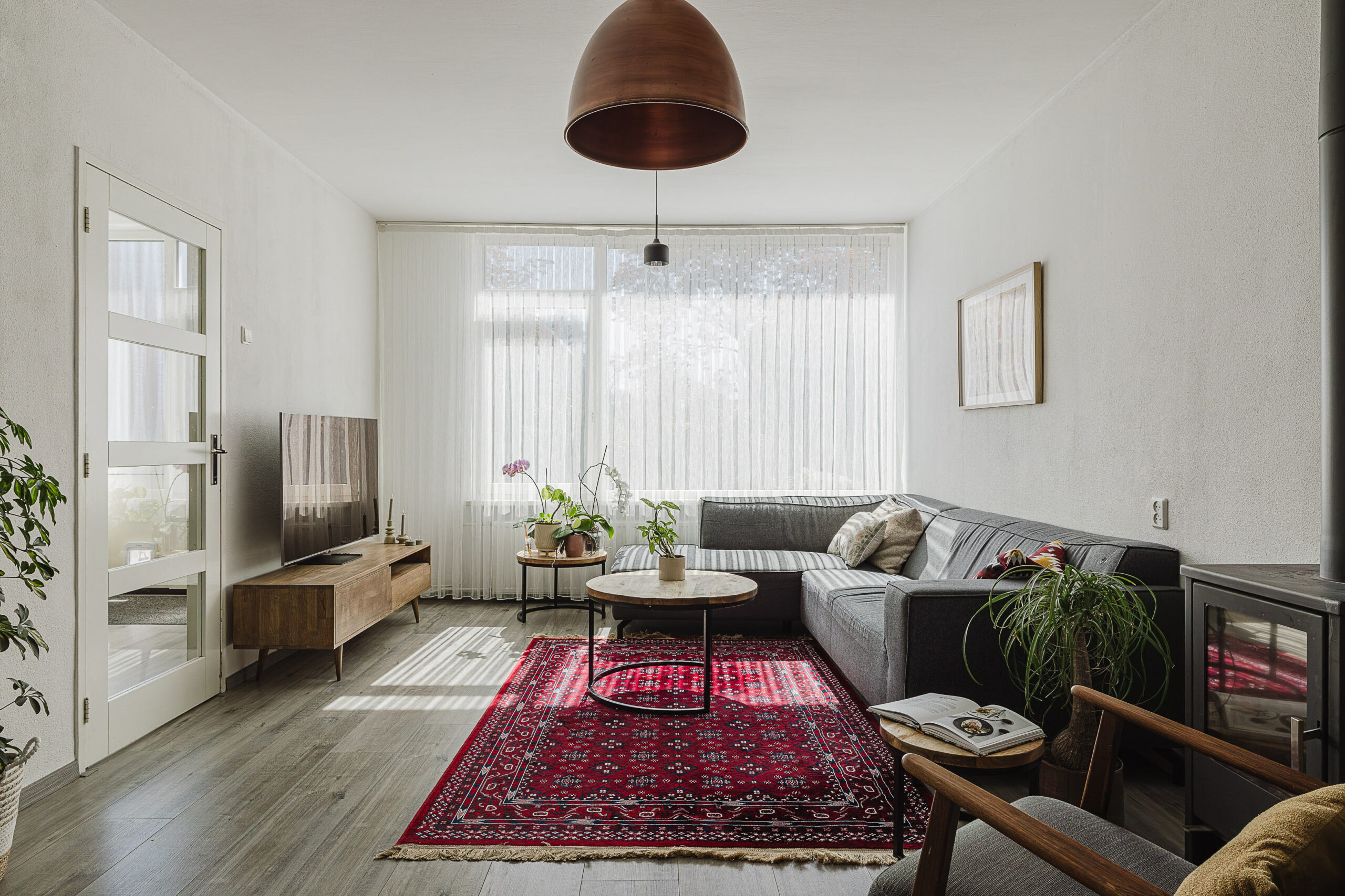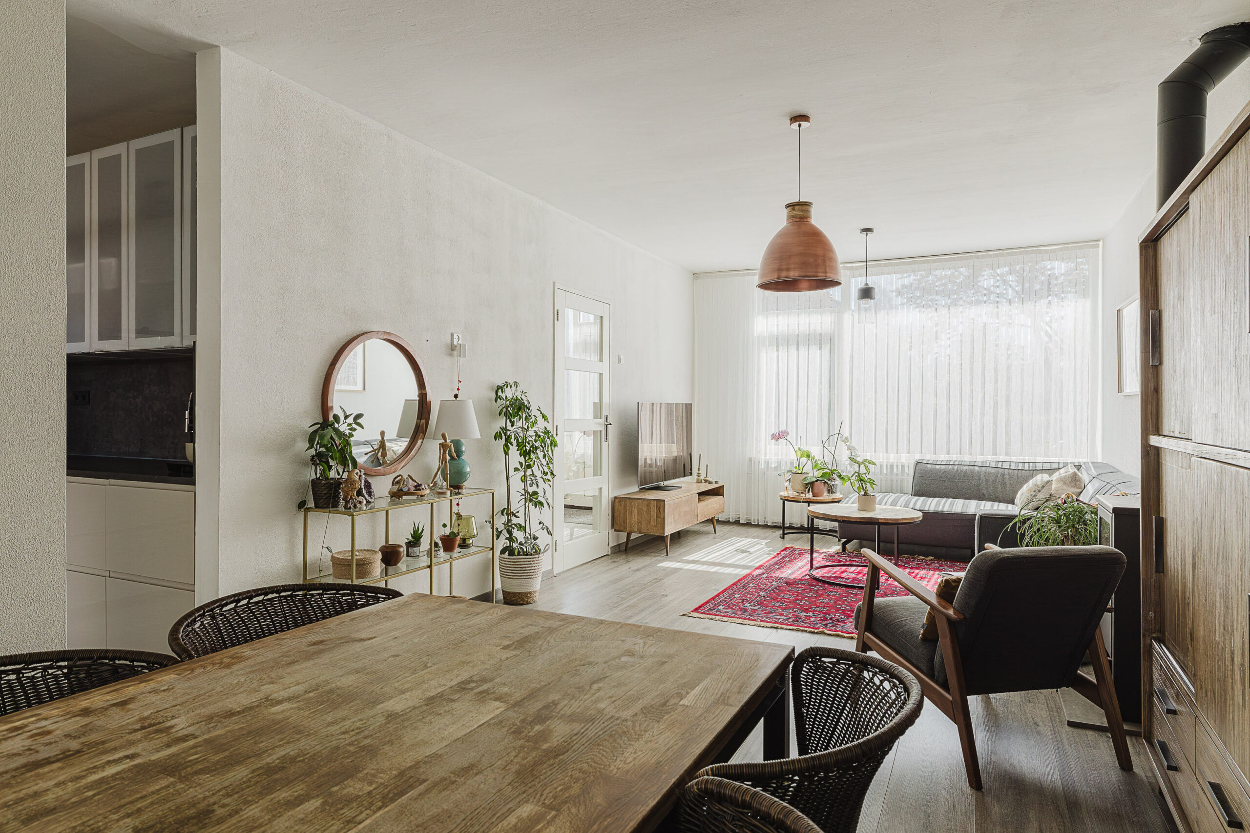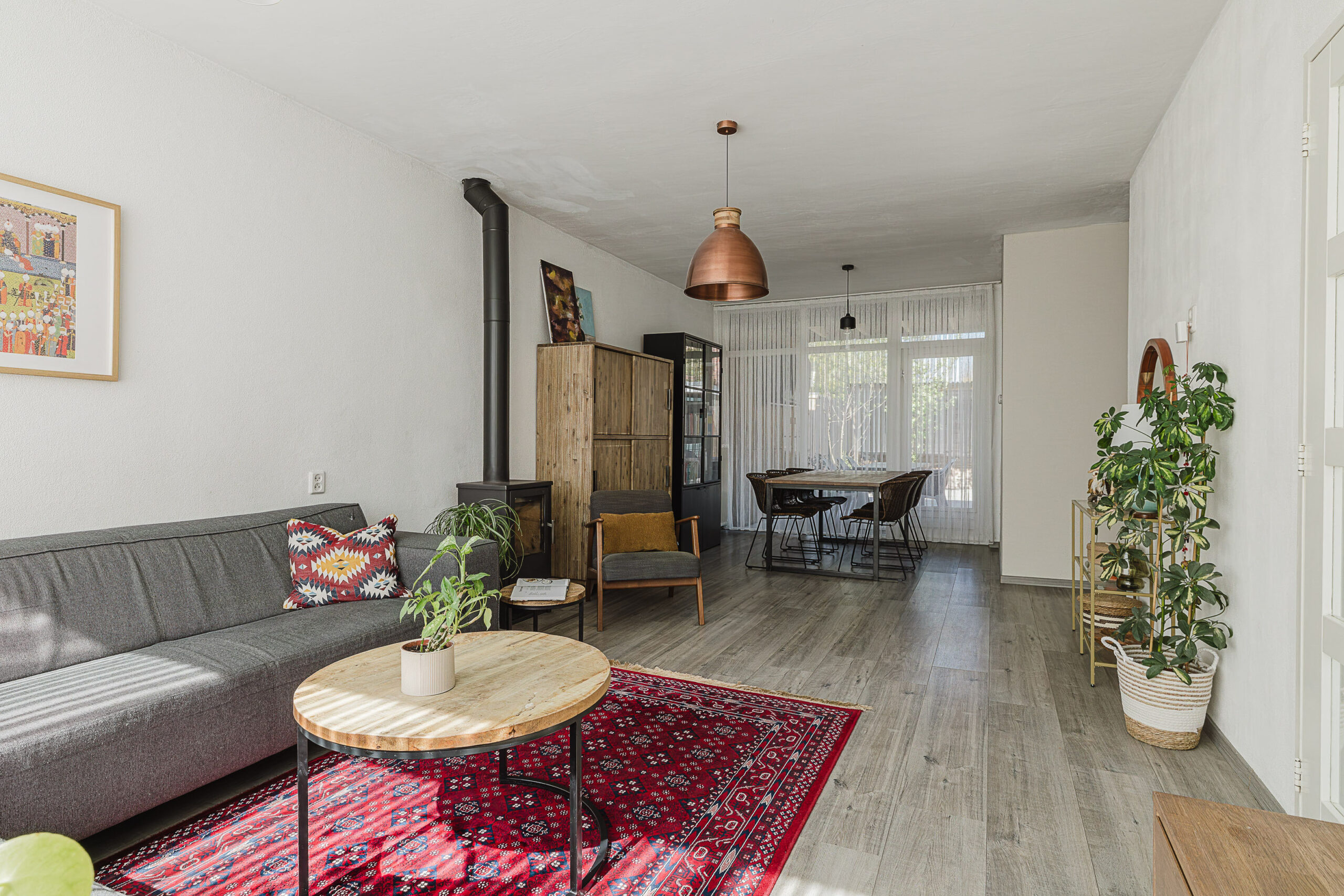• Woonkamer met sfeervolle houtkachel