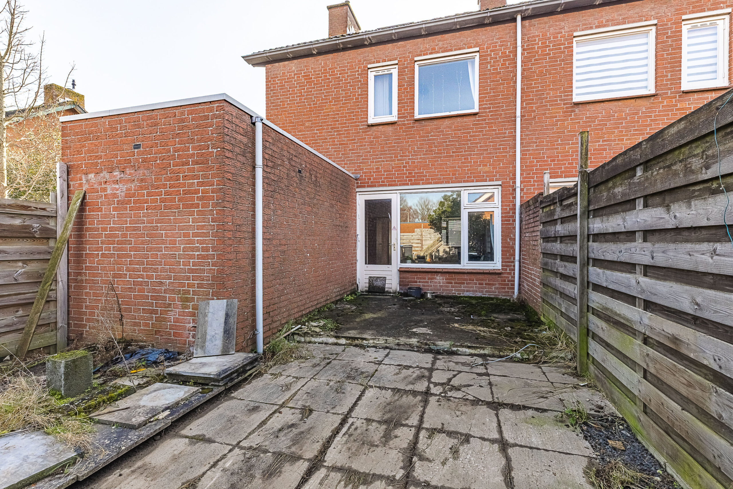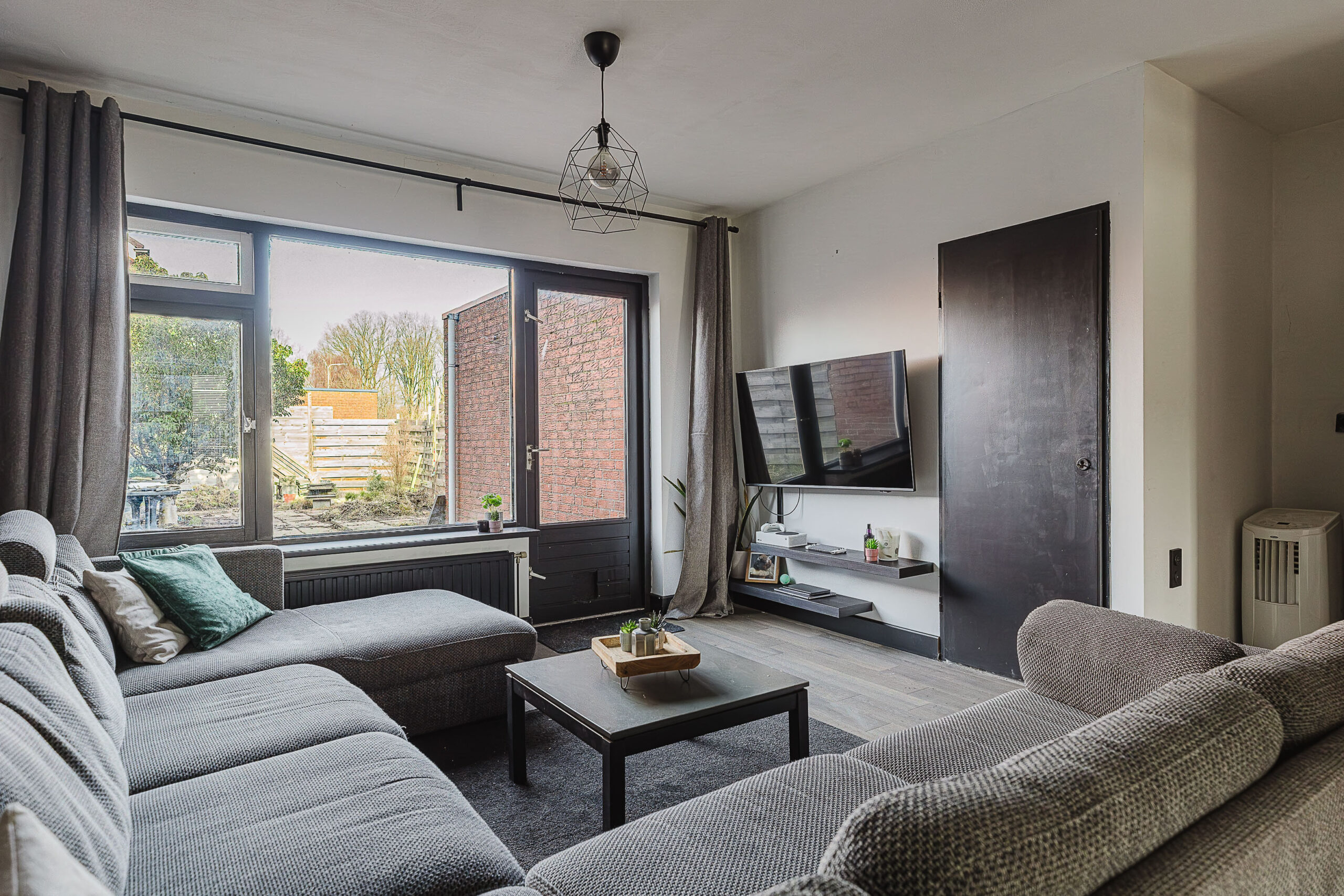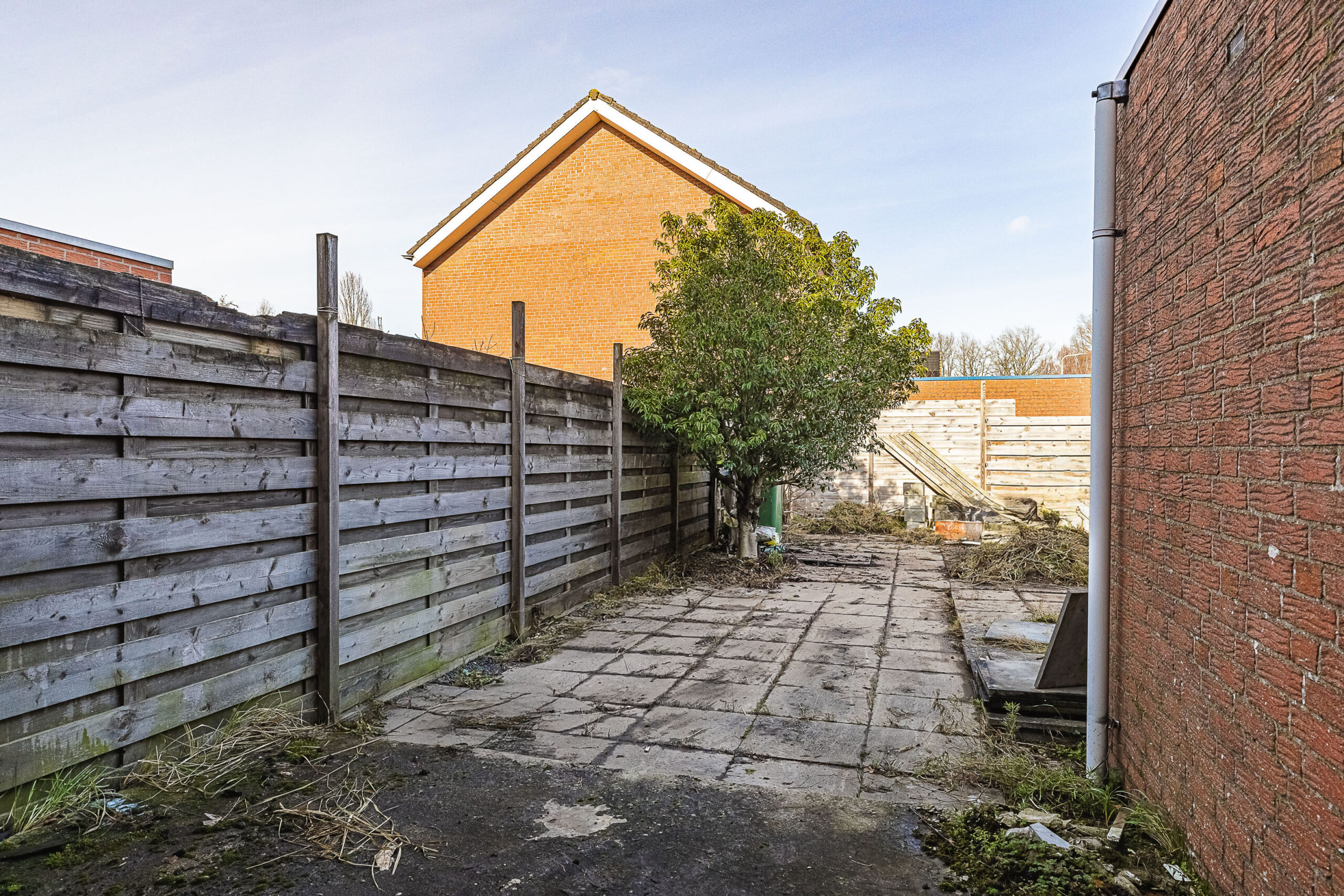 Vanuit de woonkamer stap je direct de verrassend royale achtertuin in. De tuin is grotendeels bestraat en biedt volop mogelijkheden om te ontspannen en van het buitenleven te genieten. Of je nu wilt loungen, barbecueën of gewoon in alle rust buiten wilt zitten — het kan hier allemaal. Via de zijpoort is de tuin ook via de achterom bereikbaar.