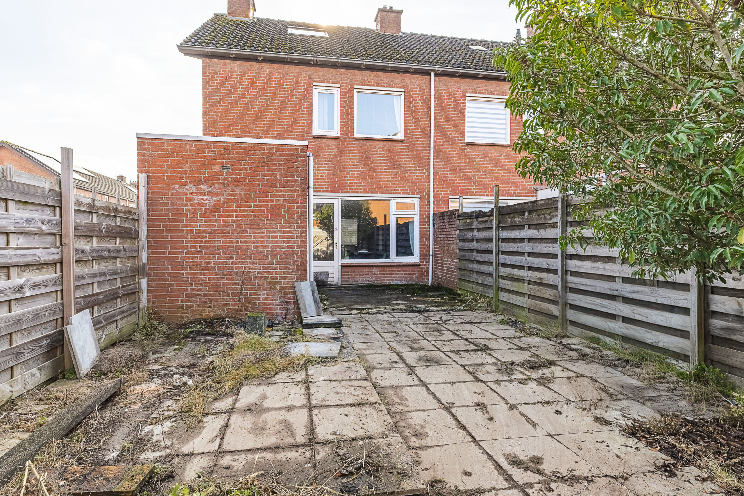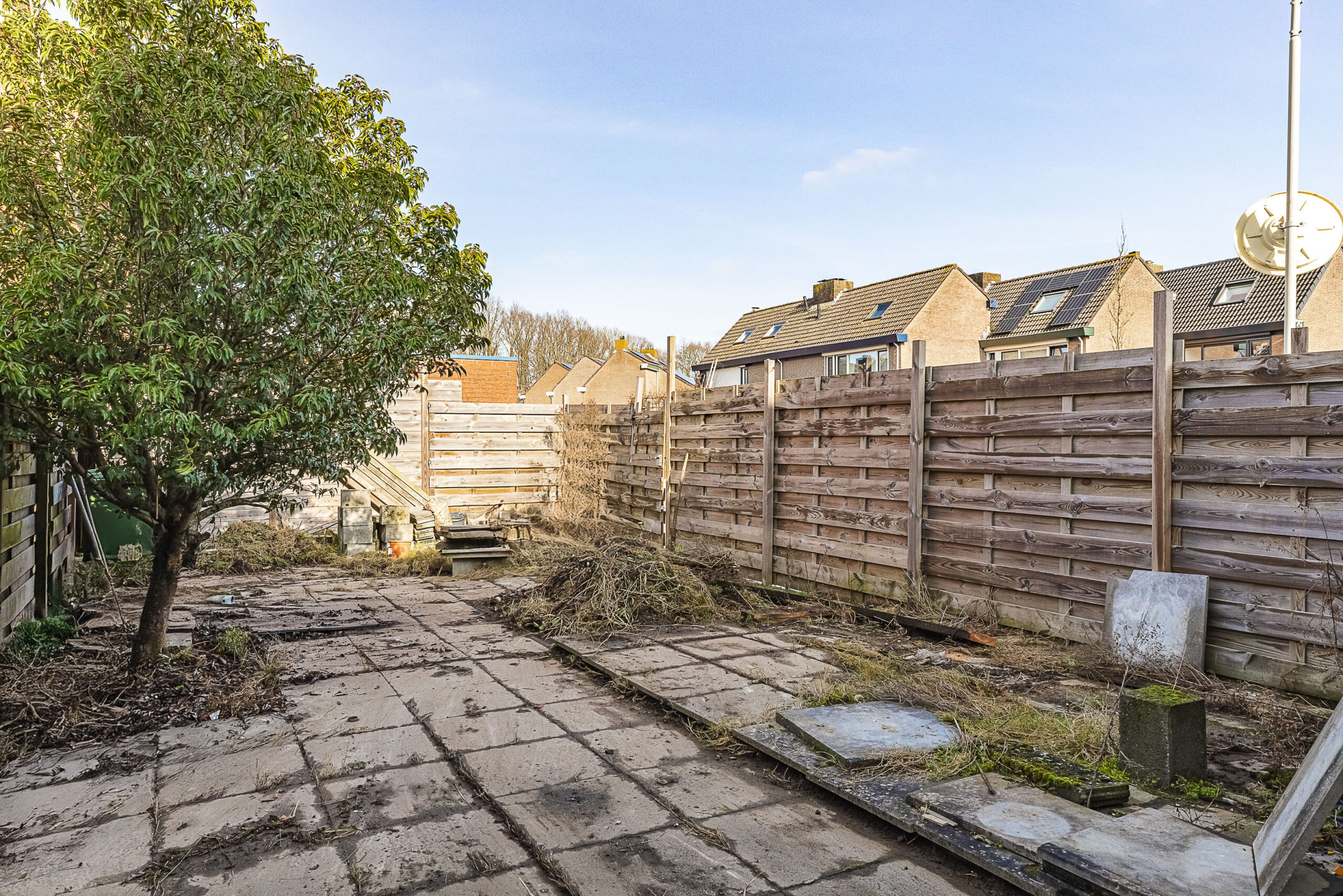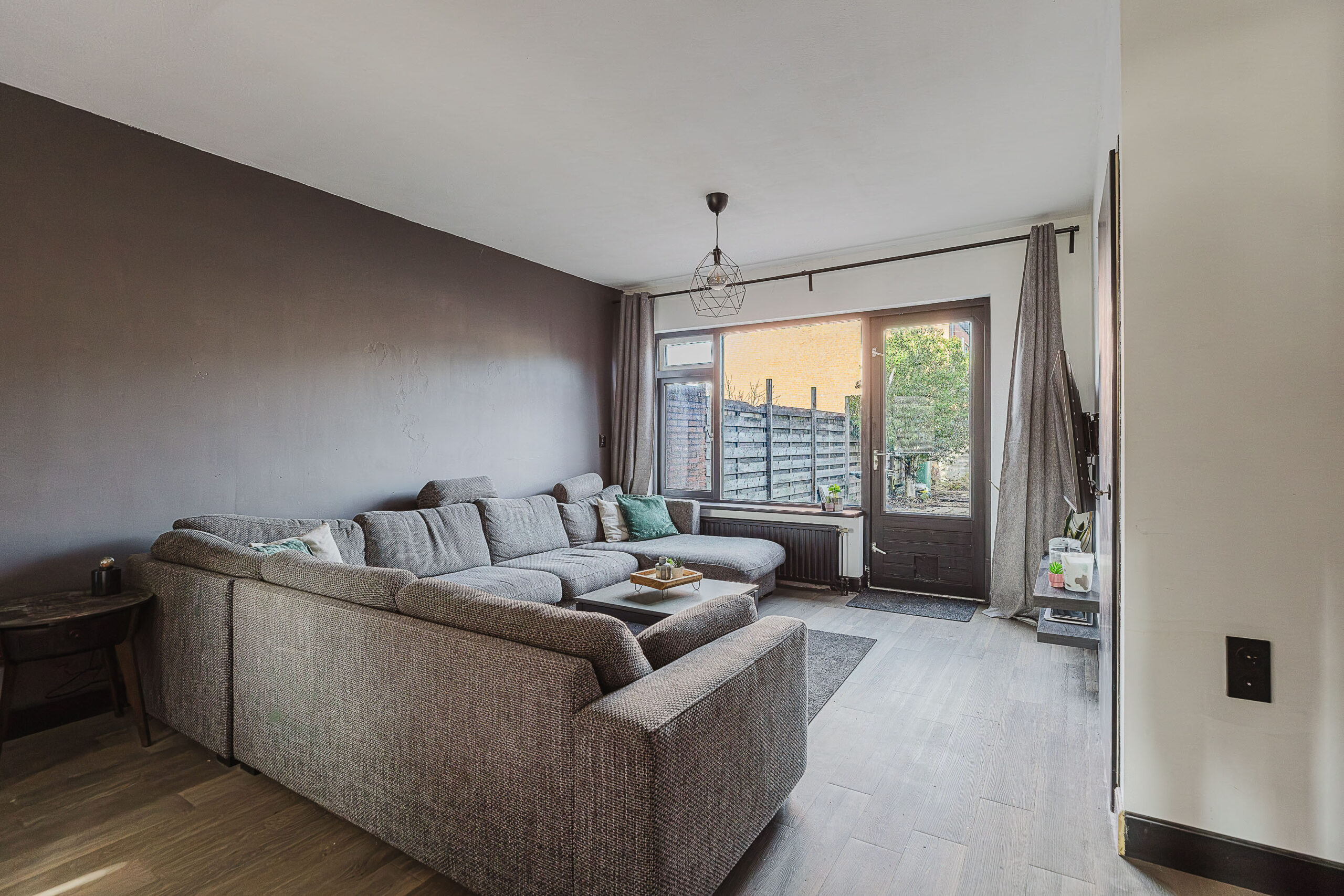 Vanuit de woonkamer stap je direct de verrassend royale achtertuin in. De tuin is grotendeels bestraat en biedt volop mogelijkheden om te ontspannen en van het buitenleven te genieten. Of je nu wilt loungen, barbecueën of gewoon in alle rust buiten wilt zitten — het kan hier allemaal. Via de zijpoort is de tuin ook via de achterom bereikbaar.