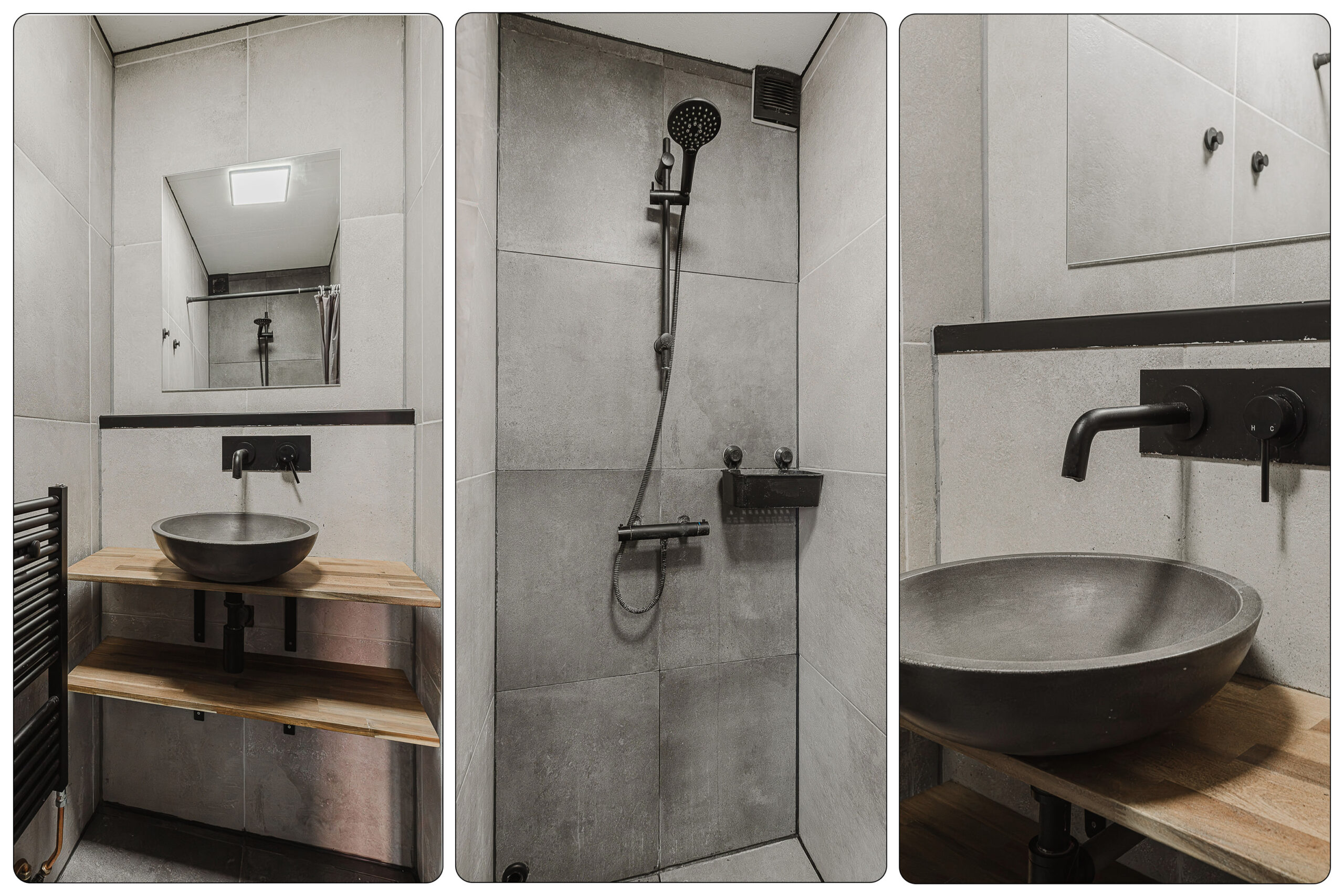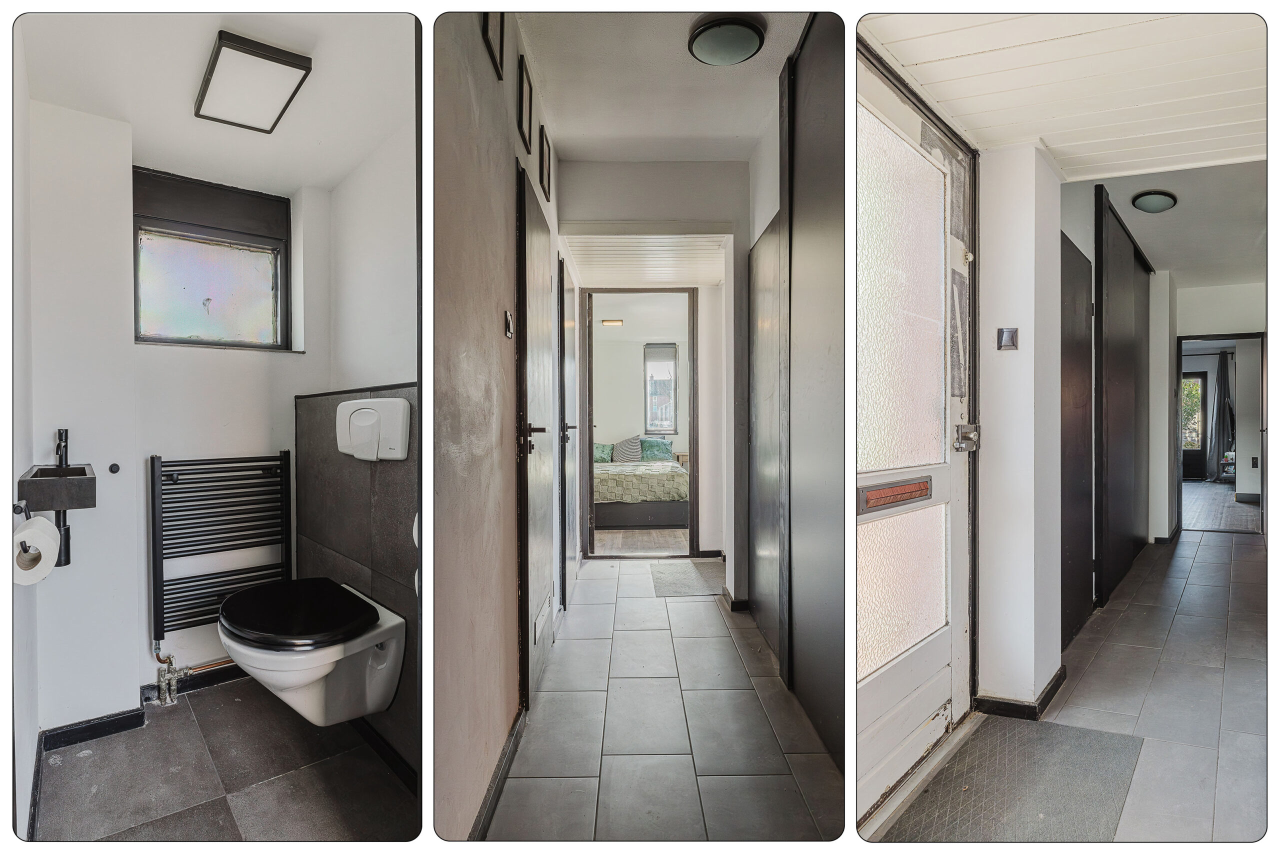 De toiletruimte is modern uitgevoerd met een wandcloset en fonteintje. Aansluitend bevindt zich de eigentijds ingerichte badkamer met een douche en een wastafel. Daarnaast is er een vaste kast met de opstelplaats van de cv-combiketel.
