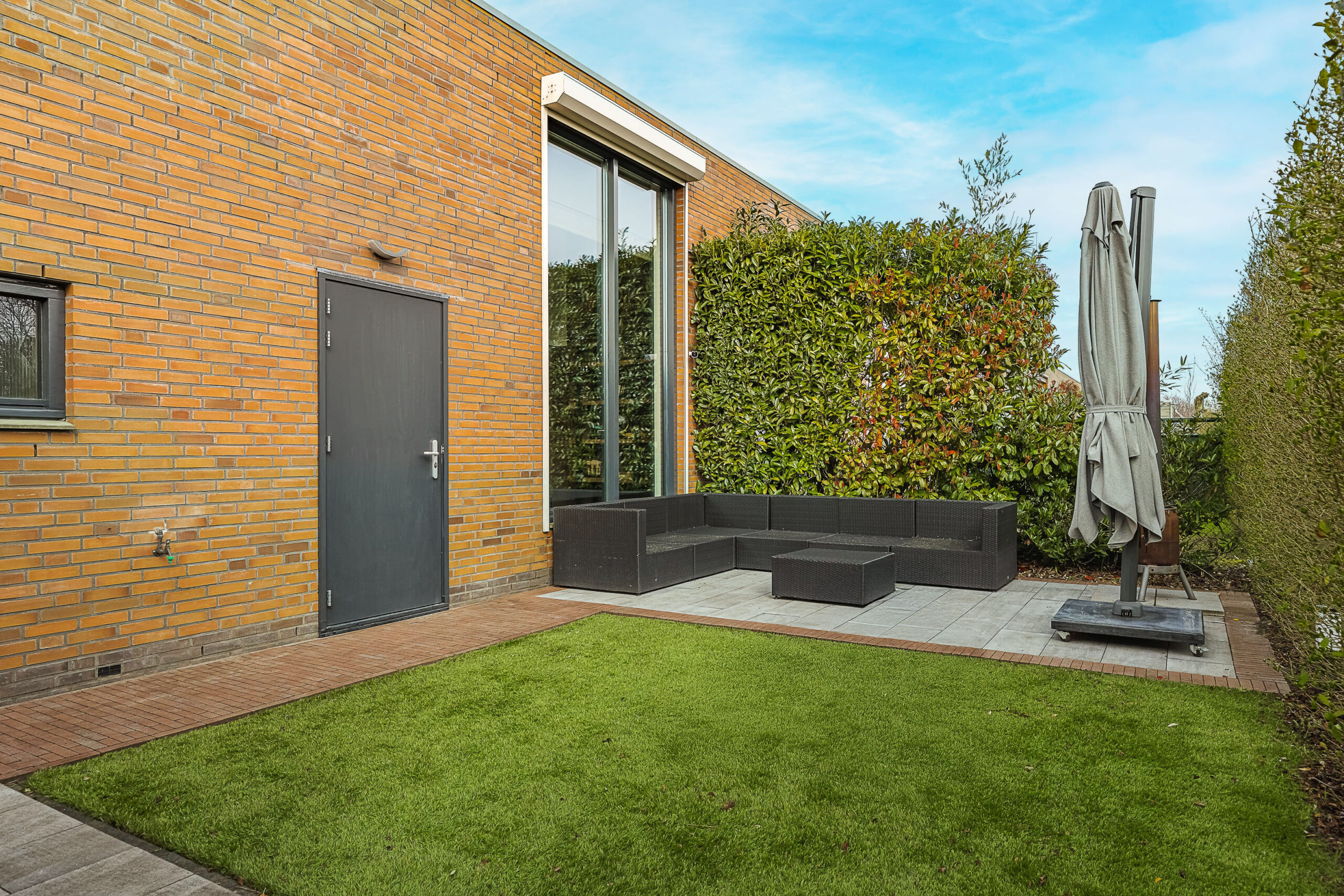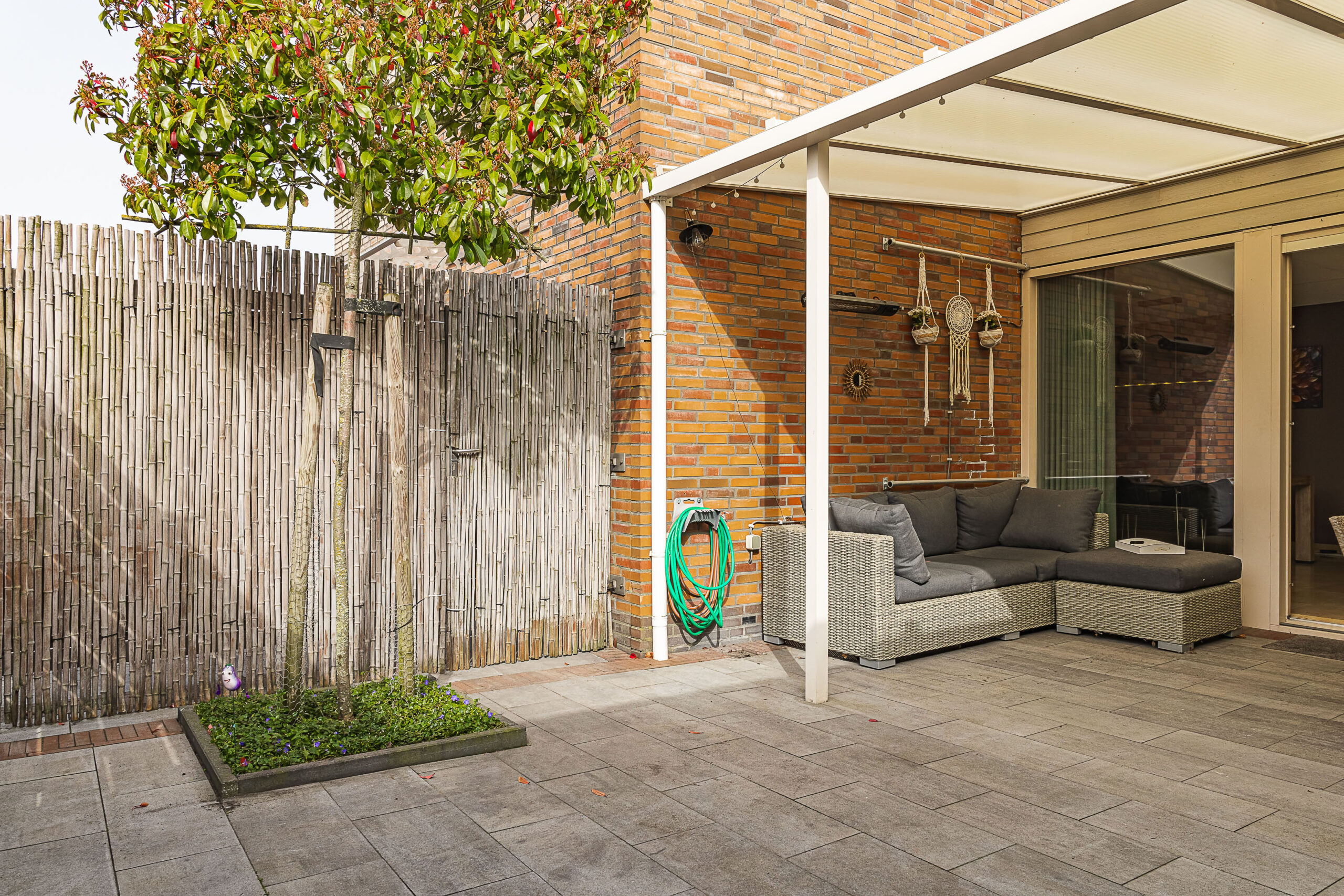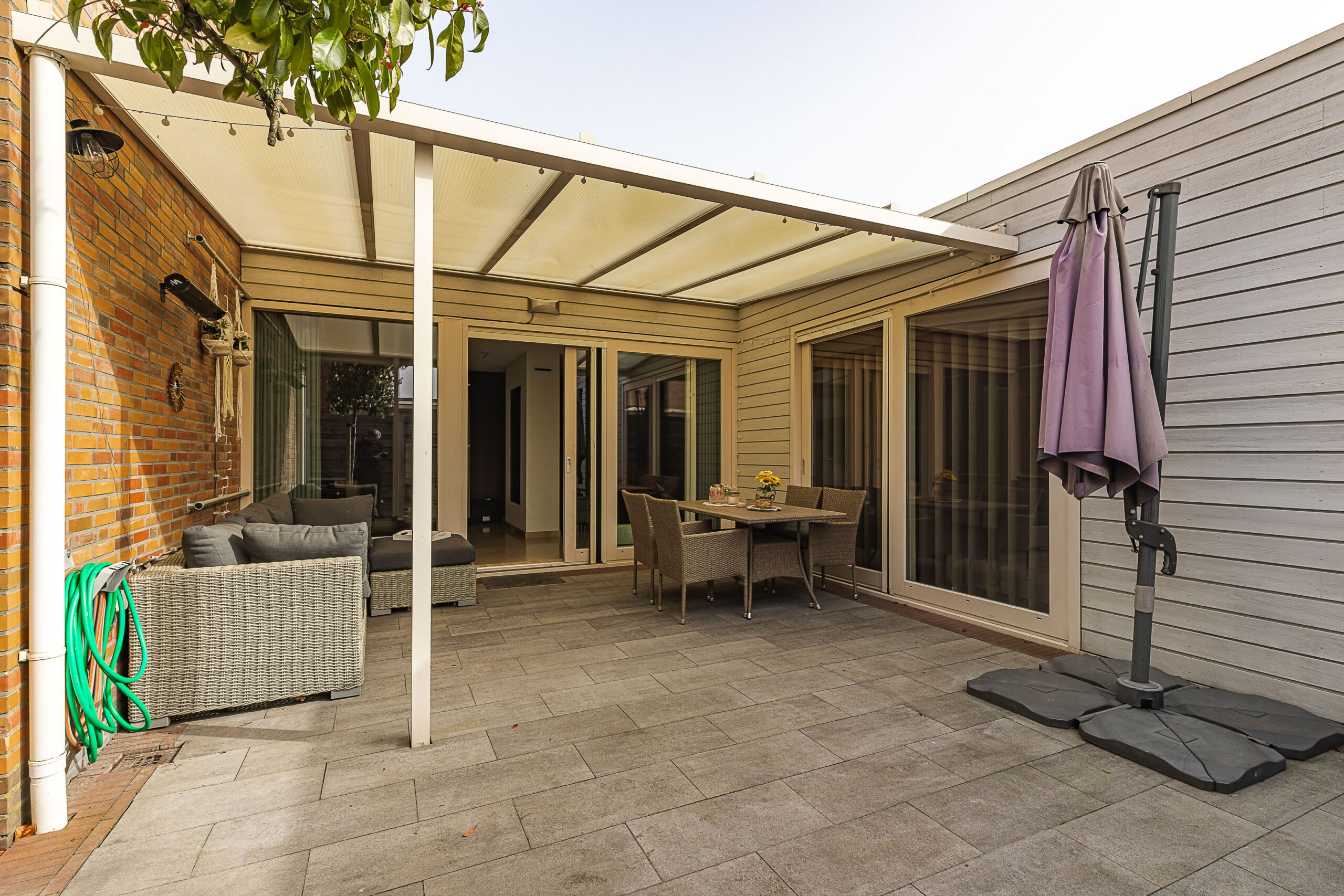 Via de woonkamer stapt u de ruime patio op, waar u dankzij de overkapping al vroeg in het voorjaar en tot laat in het najaar heerlijk buiten kunt zitten. Vanuit de hal en berging bereikt u de zonnige achtertuin op het zuiden, met veel privacy en groen voor natuurlijke verkoeling in de zomer. Er is volop bergruimte aanwezig.