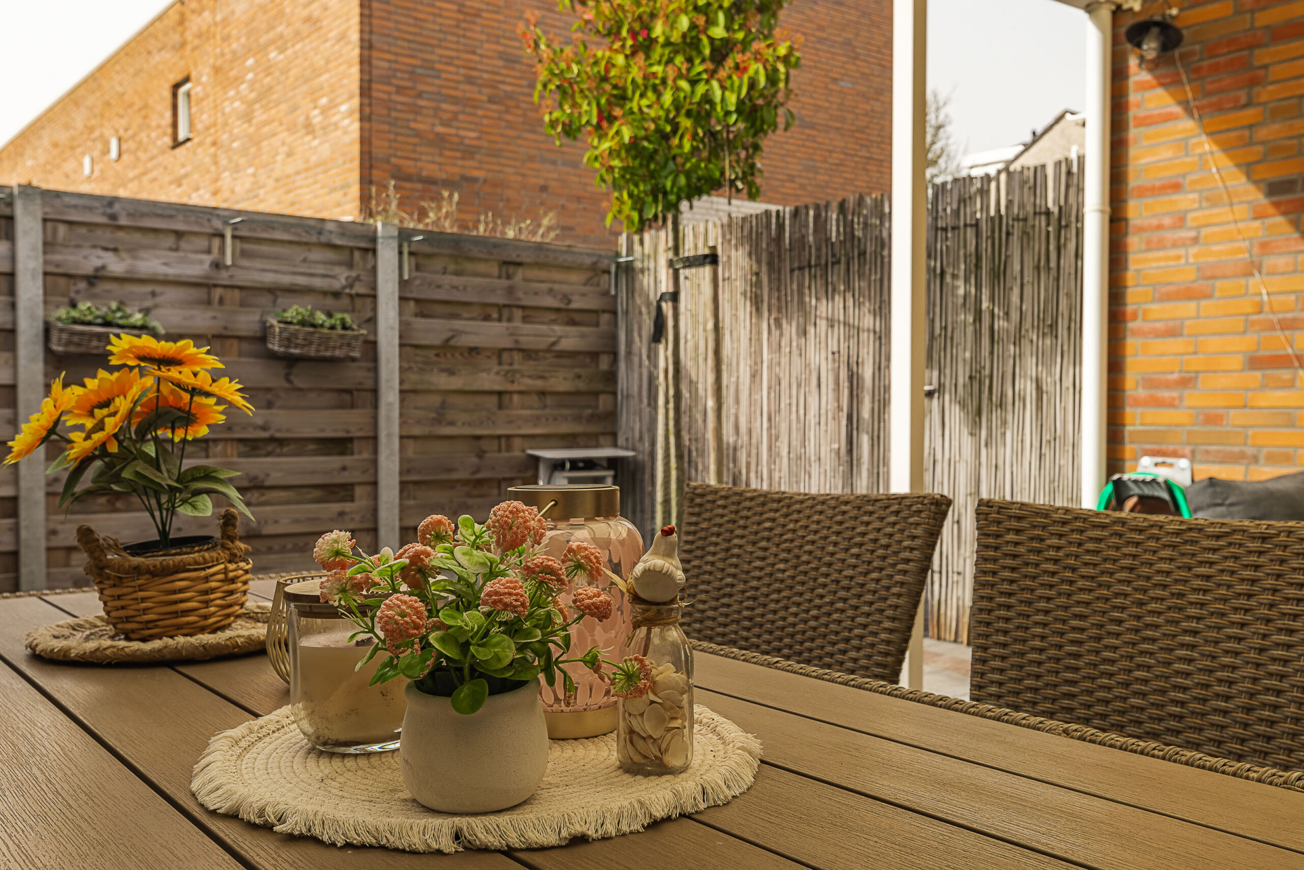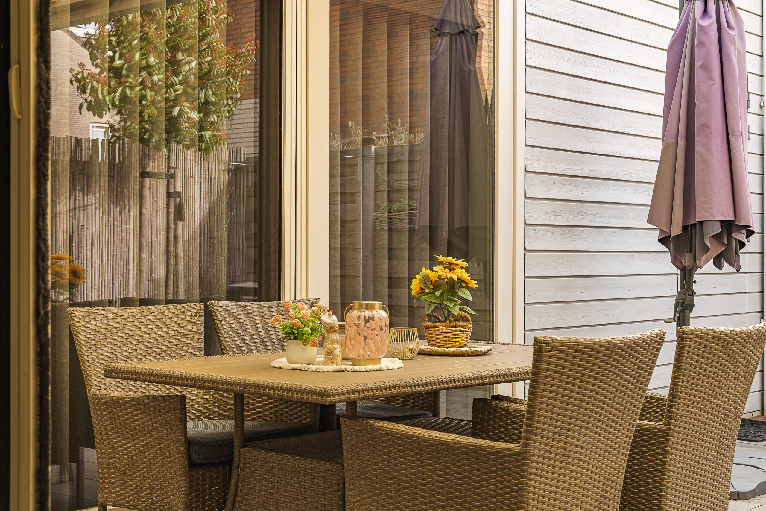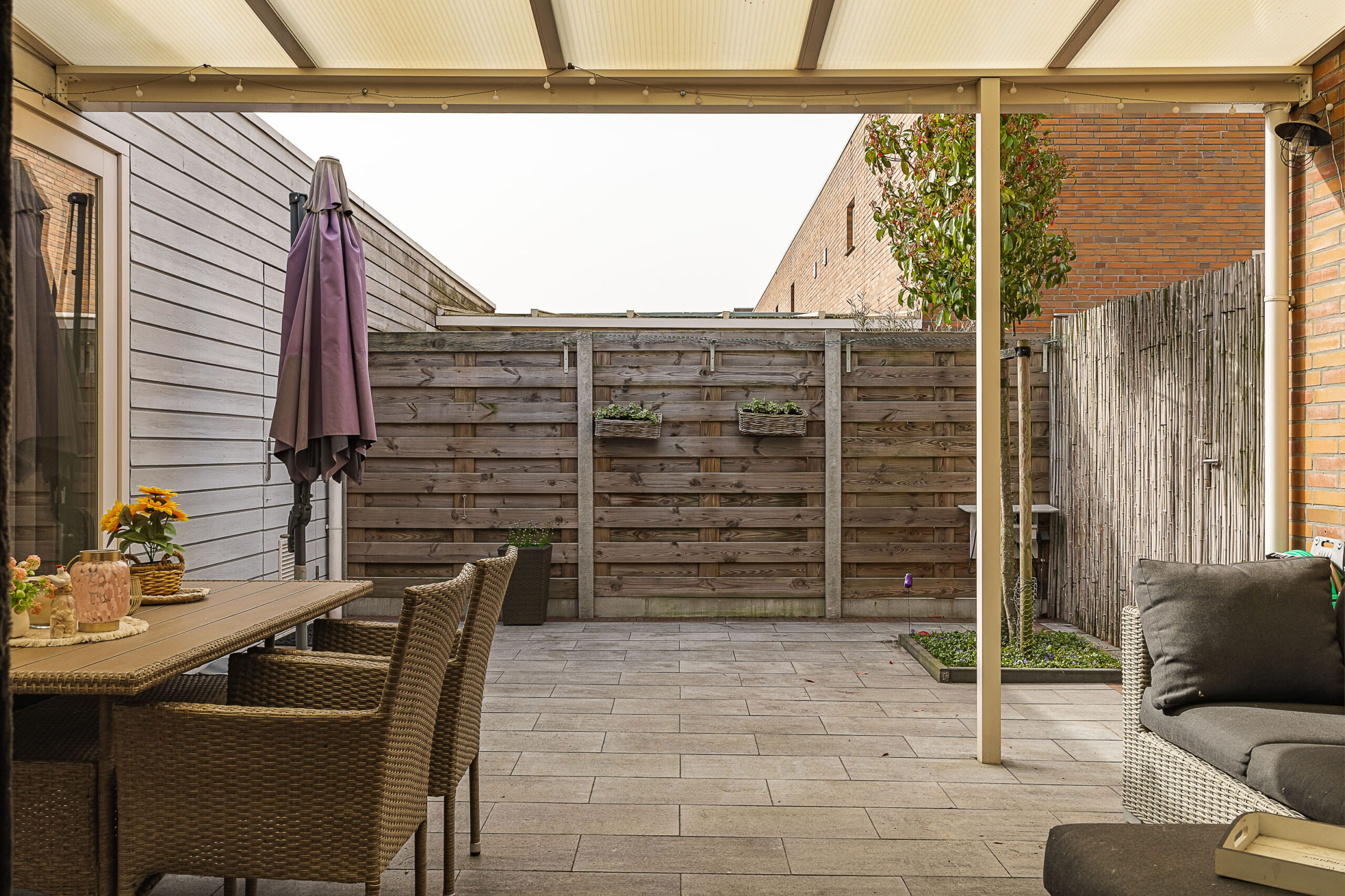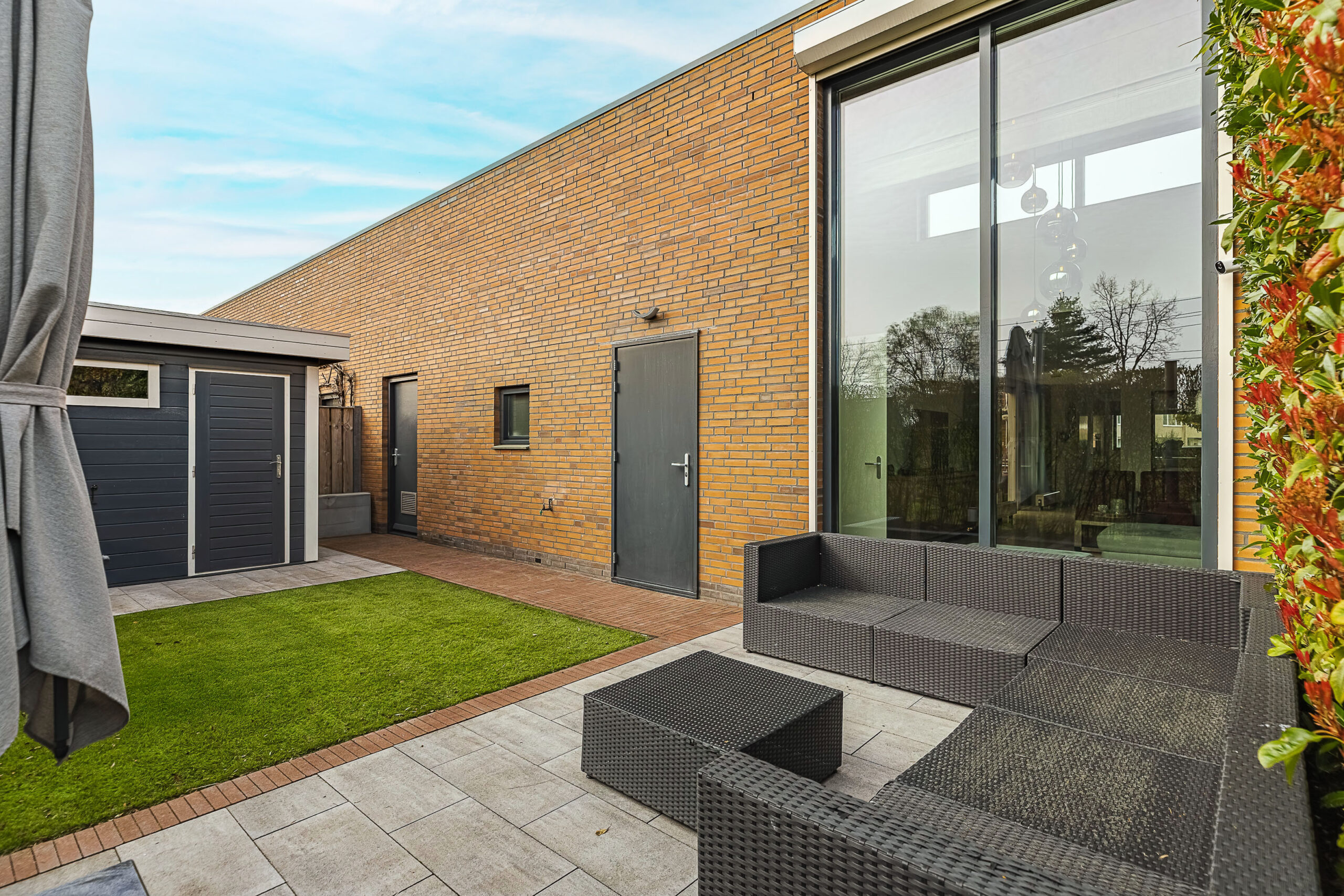 Via de woonkamer stapt u de ruime patio op, waar u dankzij de overkapping al vroeg in het voorjaar en tot laat in het najaar heerlijk buiten kunt zitten. Vanuit de hal en berging bereikt u de zonnige achtertuin op het zuiden, met veel privacy en groen voor natuurlijke verkoeling in de zomer. Er is volop bergruimte aanwezig.