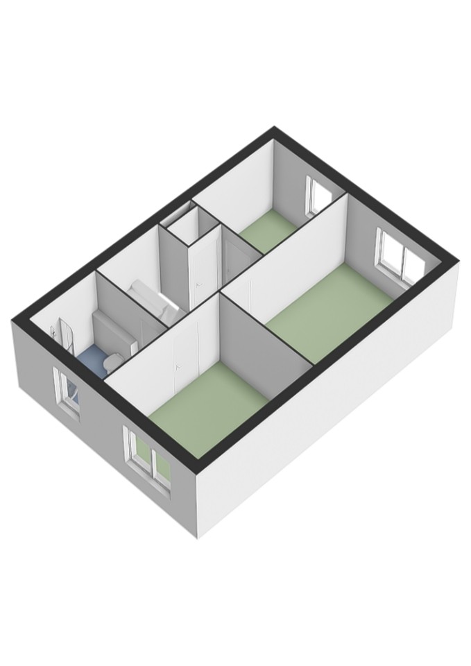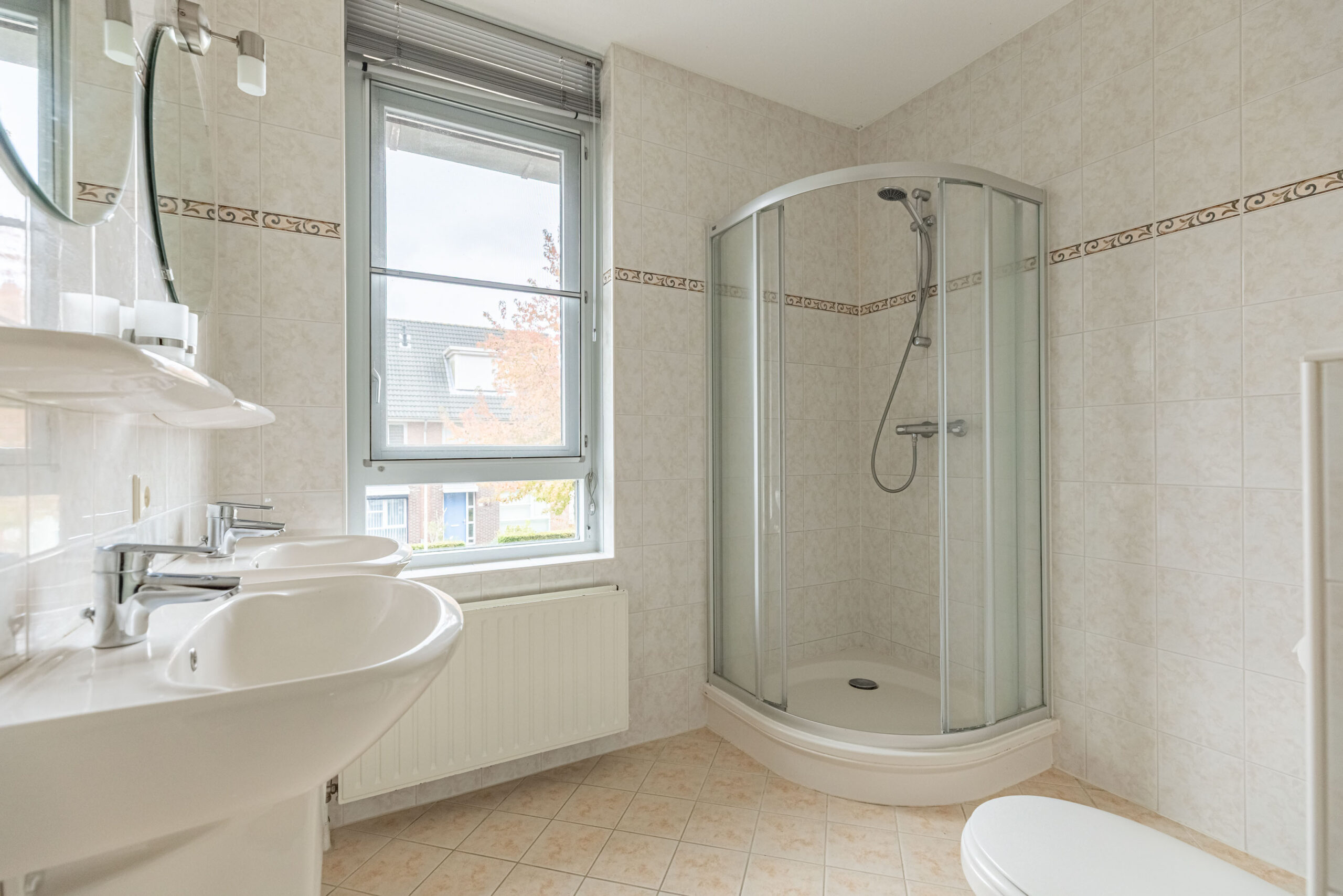 Boven zijn drie ruime slaapkamers, allemaal netjes afgewerkt met stucwerk en pvc-vloeren. De kamers zijn lekker licht en bieden genoeg plek voor een gezin, thuiswerkplek of hobbyruimte. De badkamer is ruim opgezet met een douchecabine, dubbele wastafel en toilet. Volledig betegeld én met natuurlijke ventilatie — praktisch én fris.