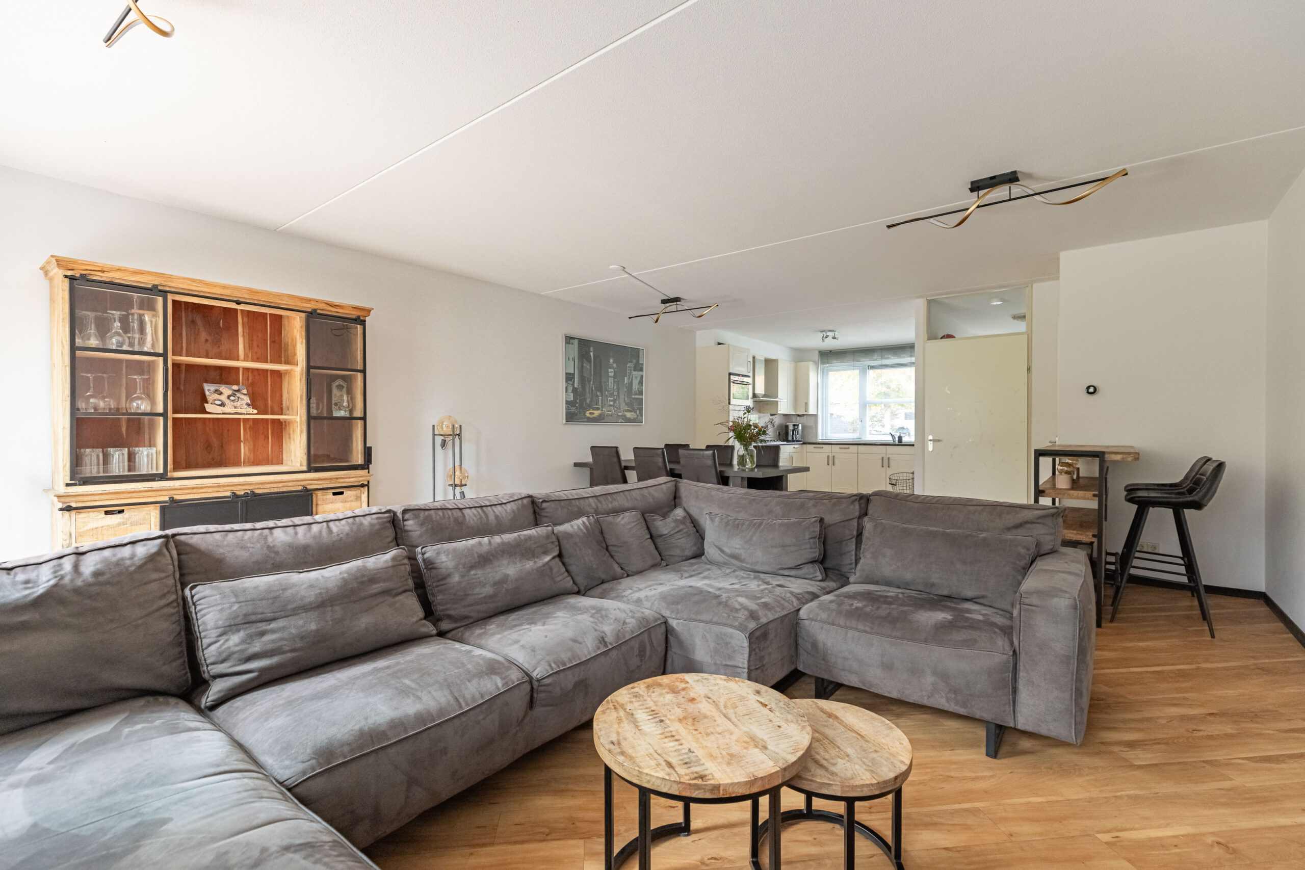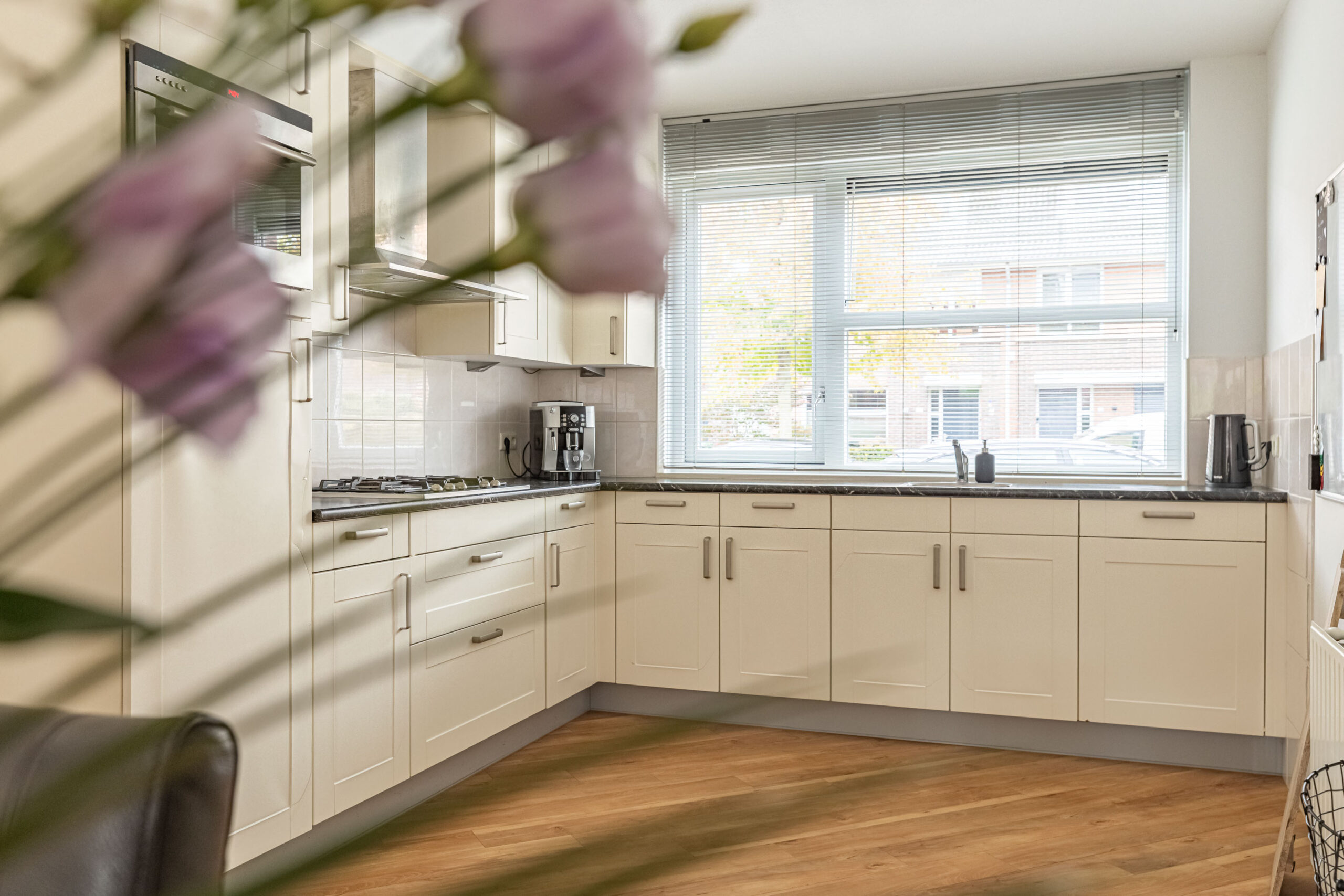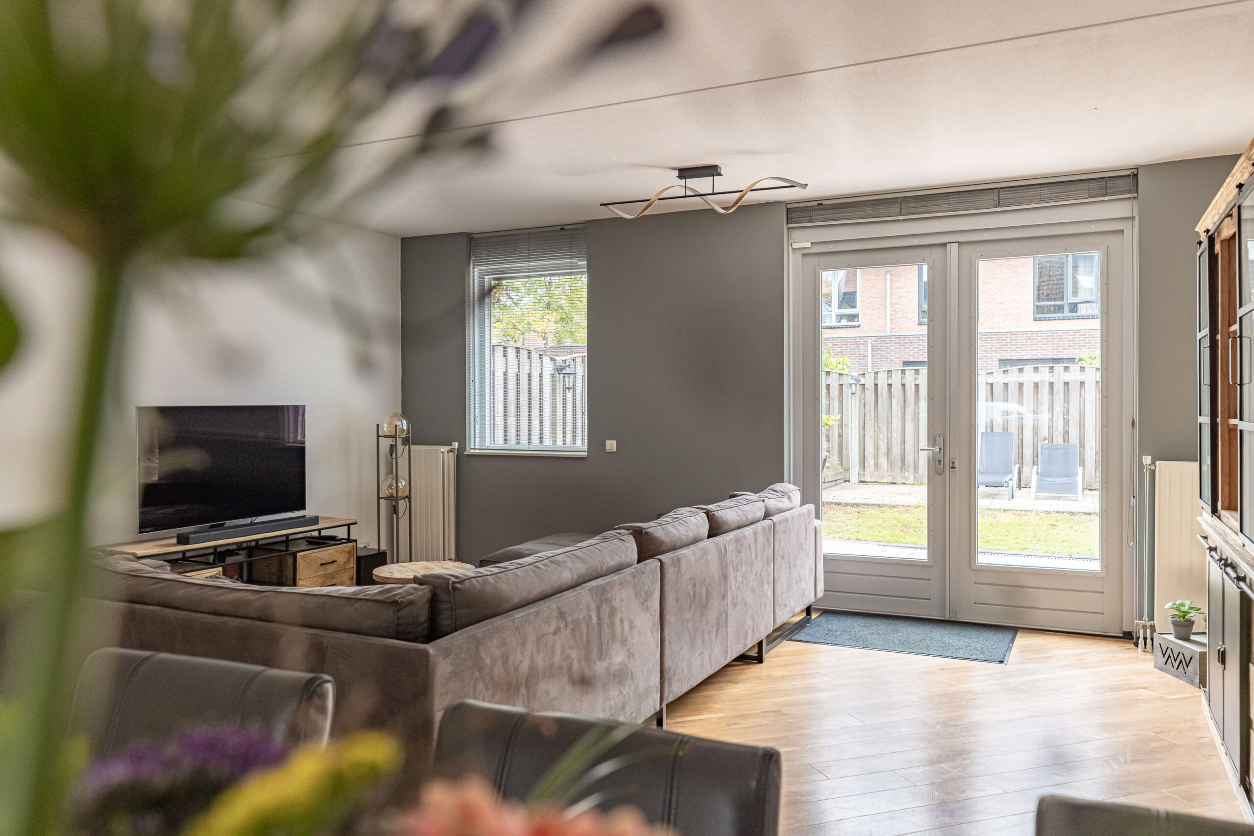 Kom binnen in de lichte, ruime woonkamer waar het daglicht volop binnenvalt door de grote ramen. Aan de achterkant vind je het zitgedeelte met uitzicht op de tuin — via de dubbele tuindeuren loop je zó naar buiten. De strakke pvc-vloer geeft de ruimte een moderne uitstraling en is ook nog eens super onderhoudsvriendelijk. De open keuken sluit mooi aan op de woonkamer en is van alle gemakken voorzien: ideaal om uitgebreid te koken of gezellig te borrelen met vrienden.