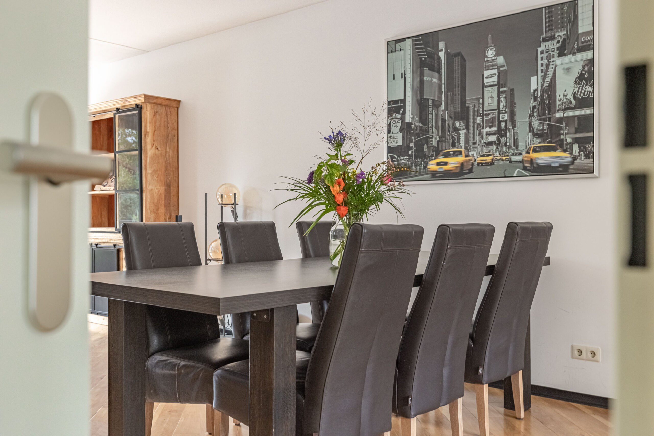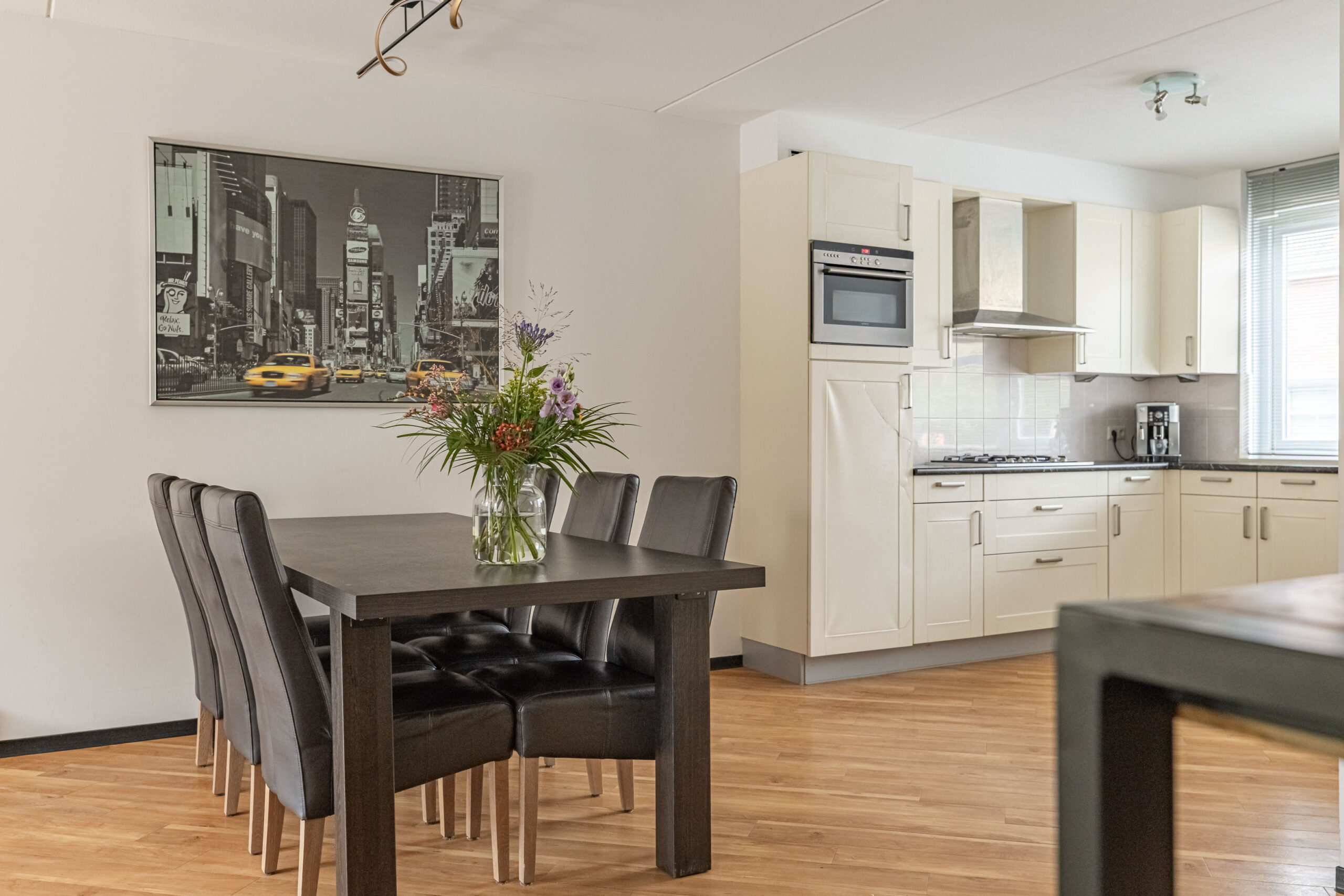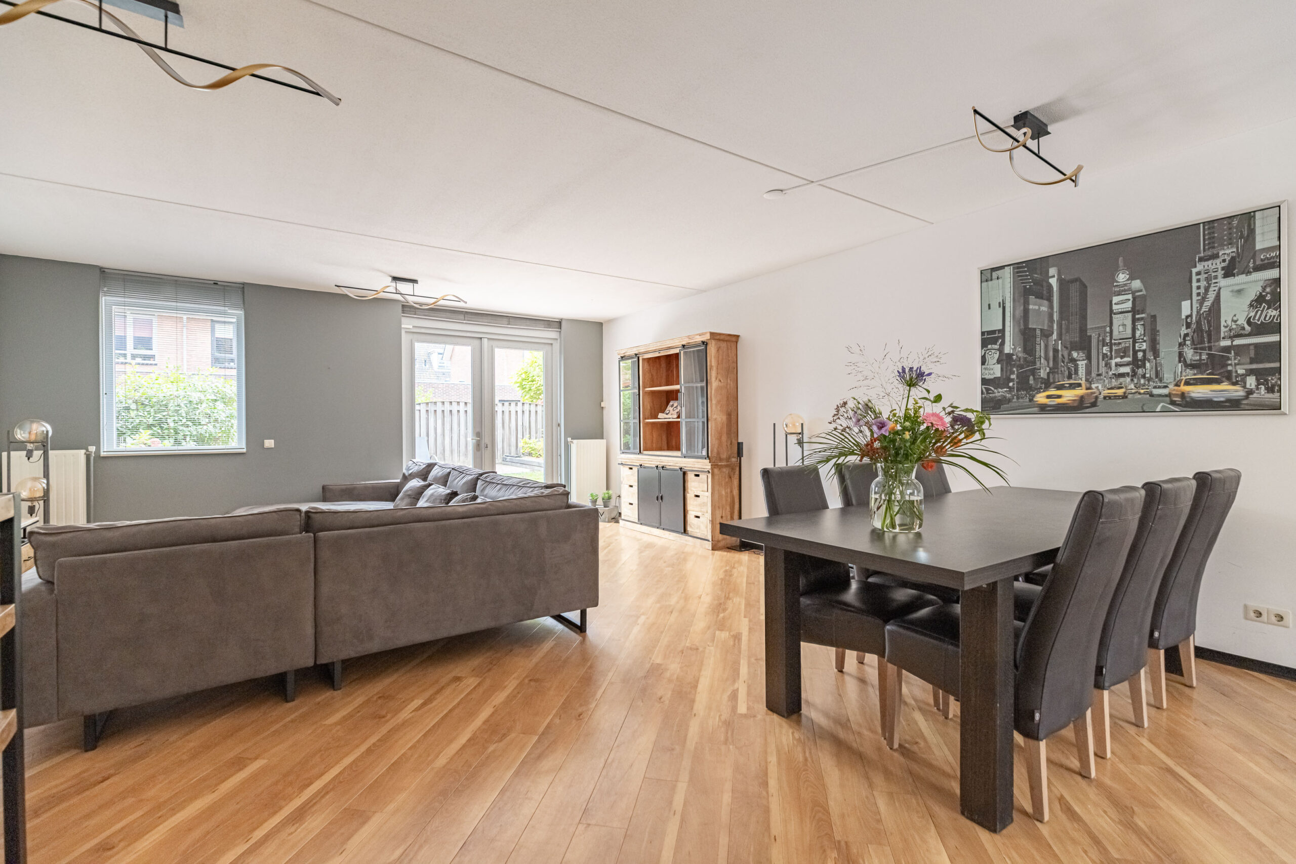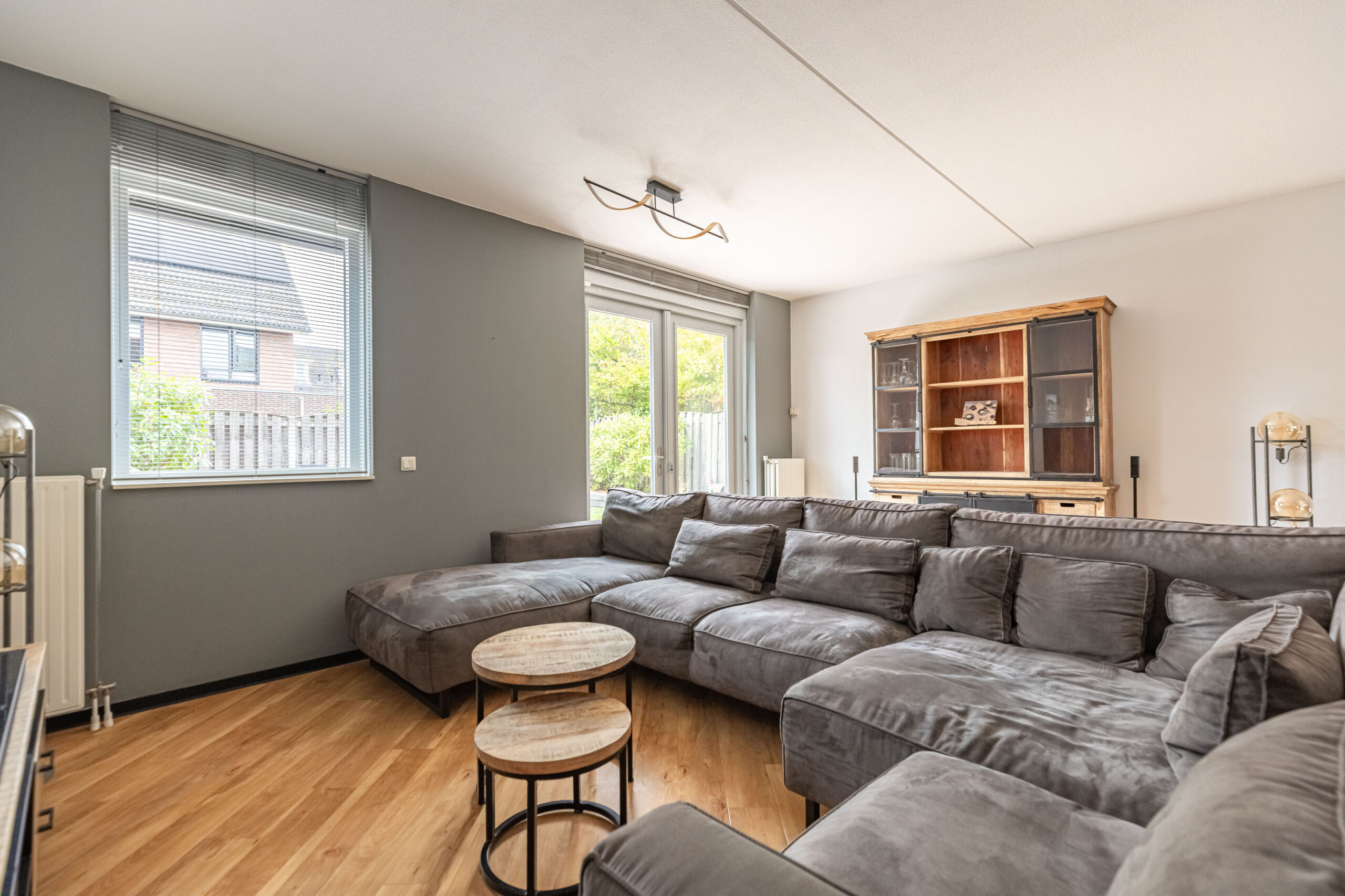 Kom binnen in de lichte, ruime woonkamer waar het daglicht volop binnenvalt door de grote ramen. Aan de achterkant vind je het zitgedeelte met uitzicht op de tuin — via de dubbele tuindeuren loop je zó naar buiten. De strakke pvc-vloer geeft de ruimte een moderne uitstraling en is ook nog eens super onderhoudsvriendelijk. De open keuken sluit mooi aan op de woonkamer en is van alle gemakken voorzien: ideaal om uitgebreid te koken of gezellig te borrelen met vrienden.
