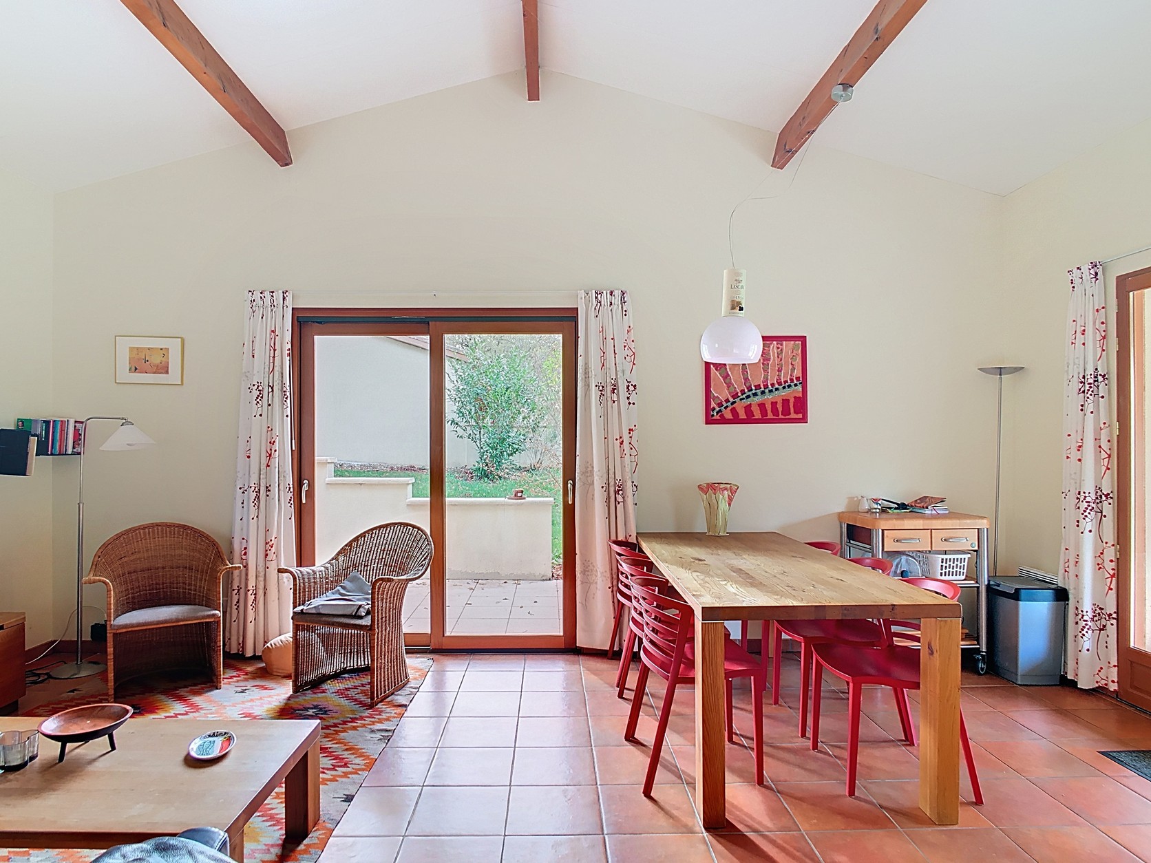 Binnen biedt het huis een lichte woonkamer met directe toegang tot het zonnige terras en de groene tuin, een praktische kitchenette, een badkamer met douche en toilet en drie comfortabele slaapkamers. Alles wordt volledig uitgerust en gemeubileerd verkocht – je hoeft alleen je koffers nog uit te pakken. De woning is aangesloten op het riool en verkeert in nette, verzorgde staat.
