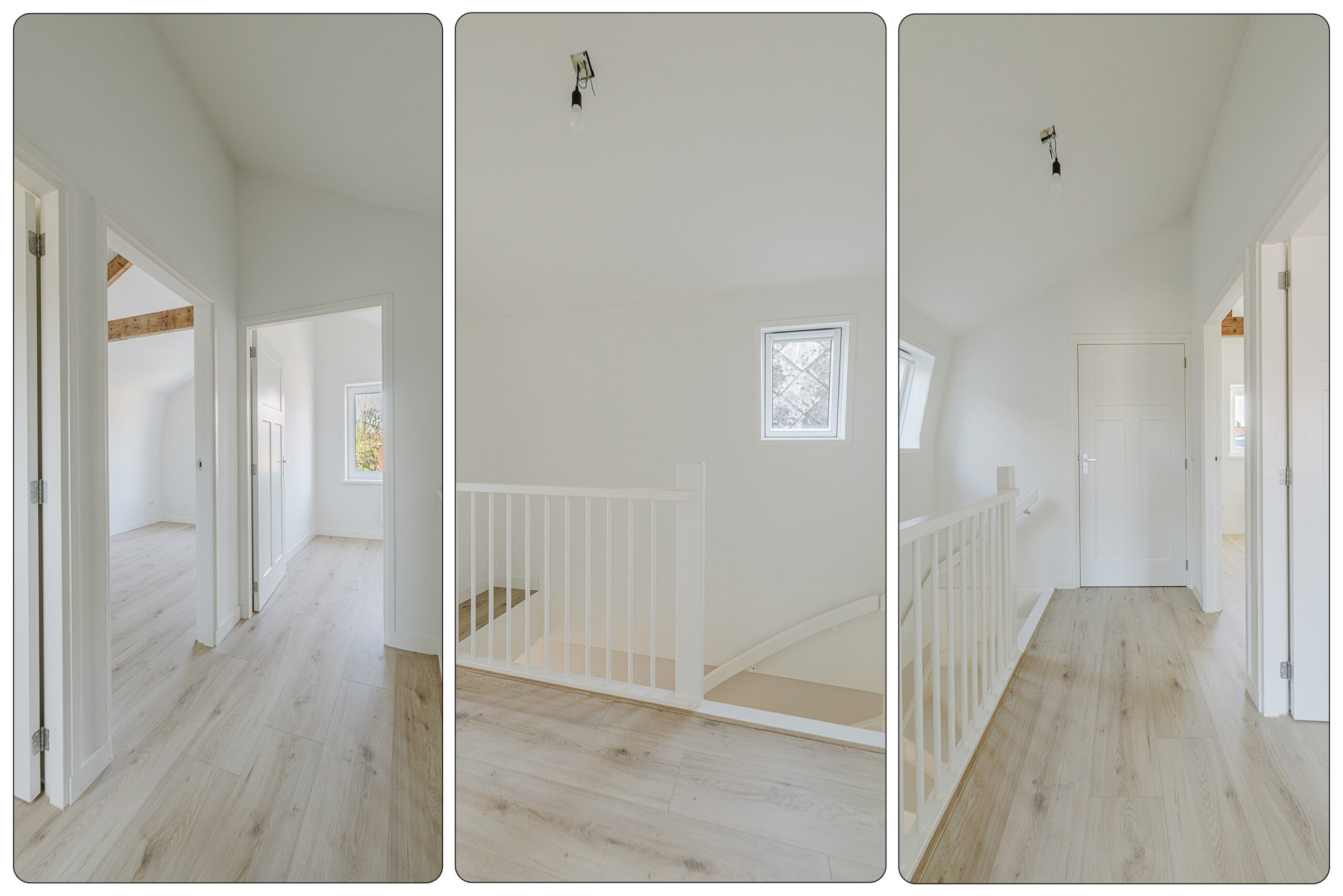 Op de eerste verdieping bevinden zich drie slaapkamers en de badkamer. Alle slaapkamers zijn voorzien van een laminaat vloer en strak stucwerk wandafwerking. De moderne badkamer is compleet uitgevoerd met een douche, wastafel en een toilet.