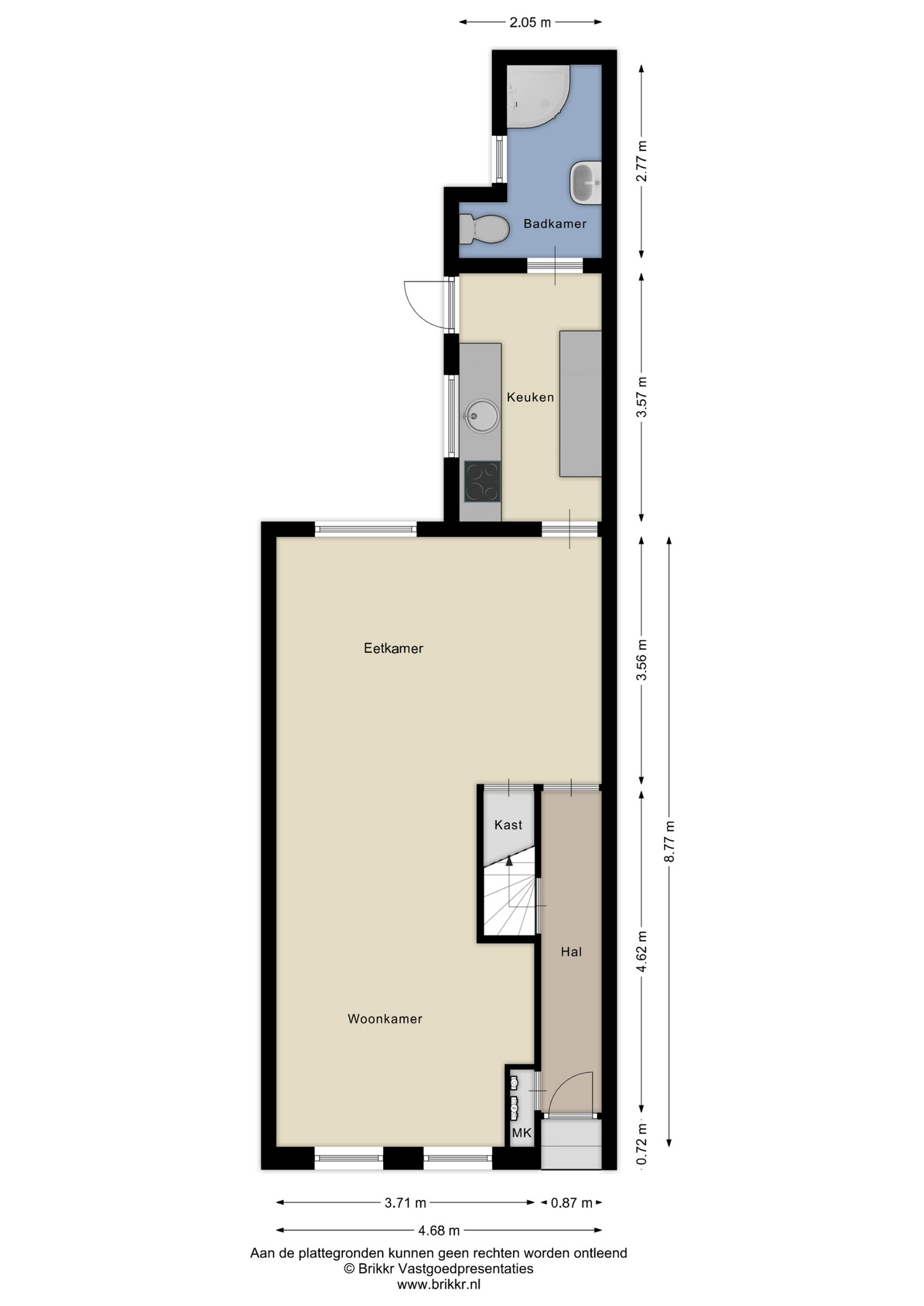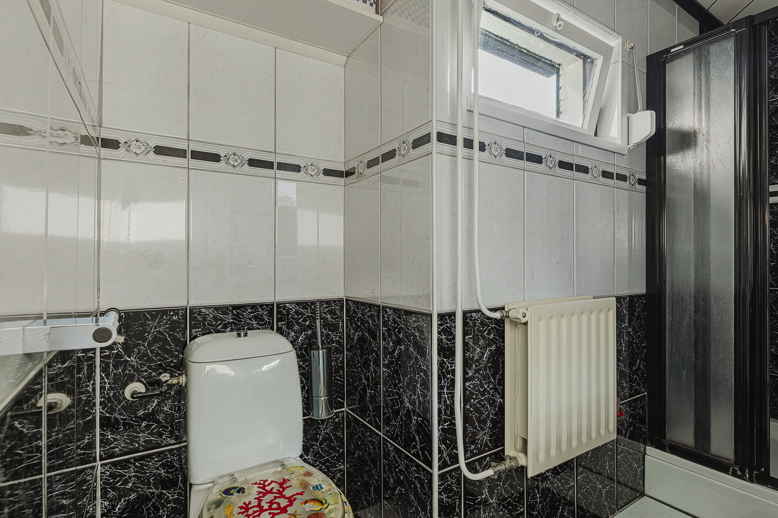 Daarnaast beschikt de begane grond over een badkamer, wat zorgt voor extra comfort en gemak. Deze is praktisch ingericht en voorzien van een toilet, een douche en een wastafel. De aanwezigheid van de badkamer op de begane grond maakt de woning niet alleen functioneel en comfortabel in het dagelijks gebruik, maar ook toekomstbestendig.