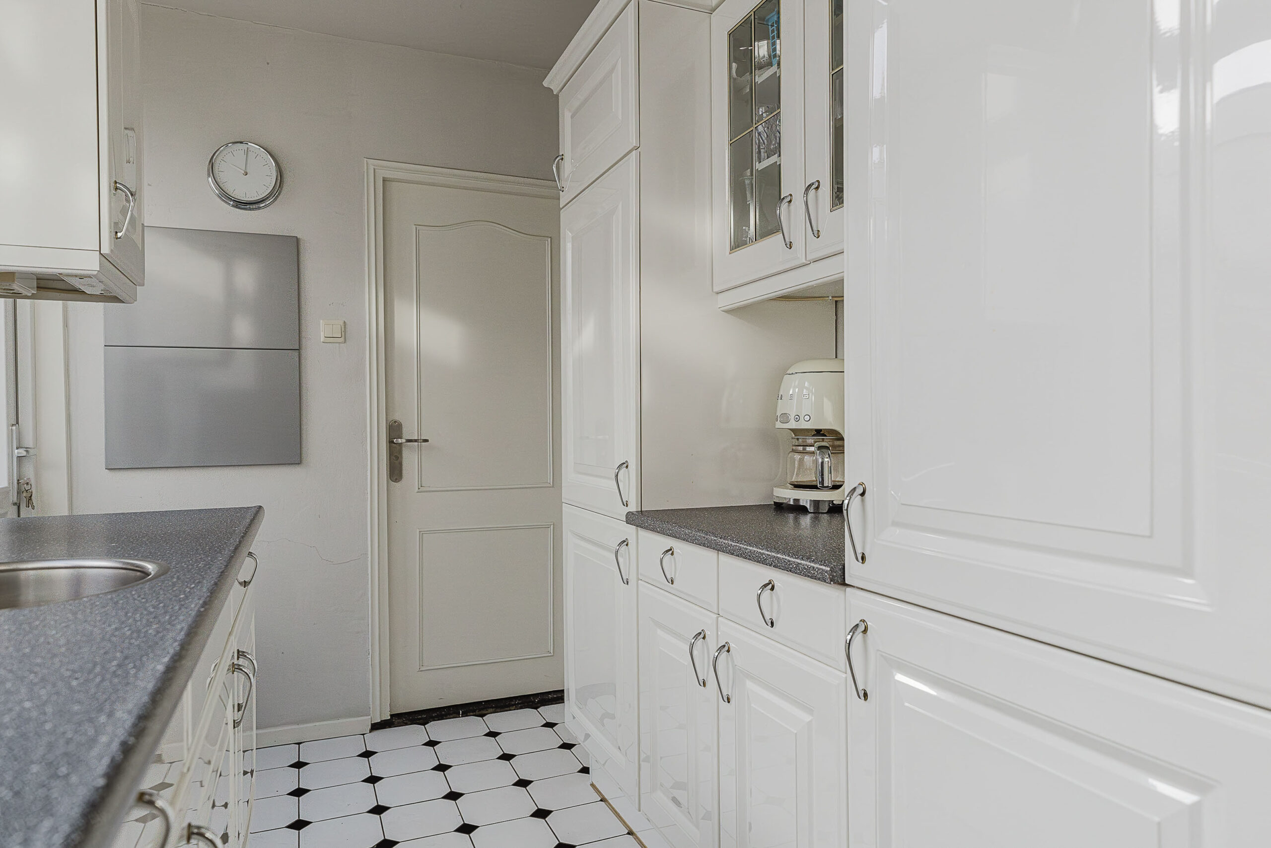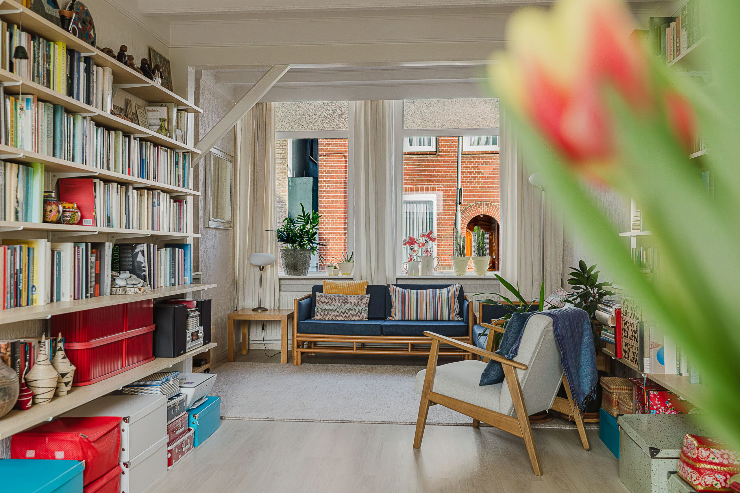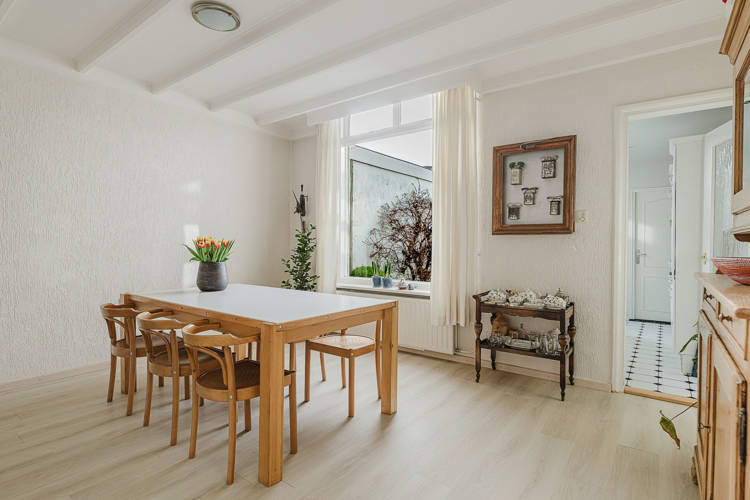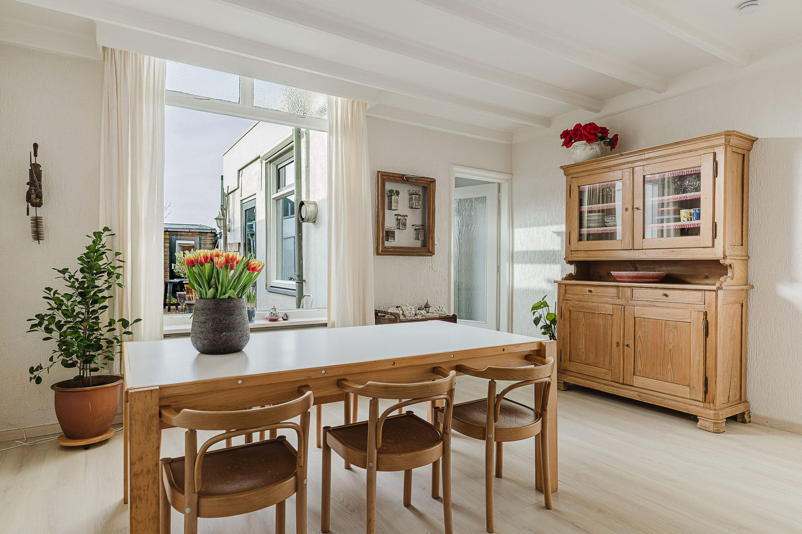 De begane grond is prettig ingedeeld en voelt licht en ruim aan dankzij de doorzon woonkamer, waar het daglicht van twee kanten mooi naar binnen valt. Dit zorgt voor een open en aangename sfeer. Aangrenzend bevindt zich de dichte keuken met inbouwapparatuur, die praktisch is ingericht en een fijn uitzicht biedt op de achtertuin.