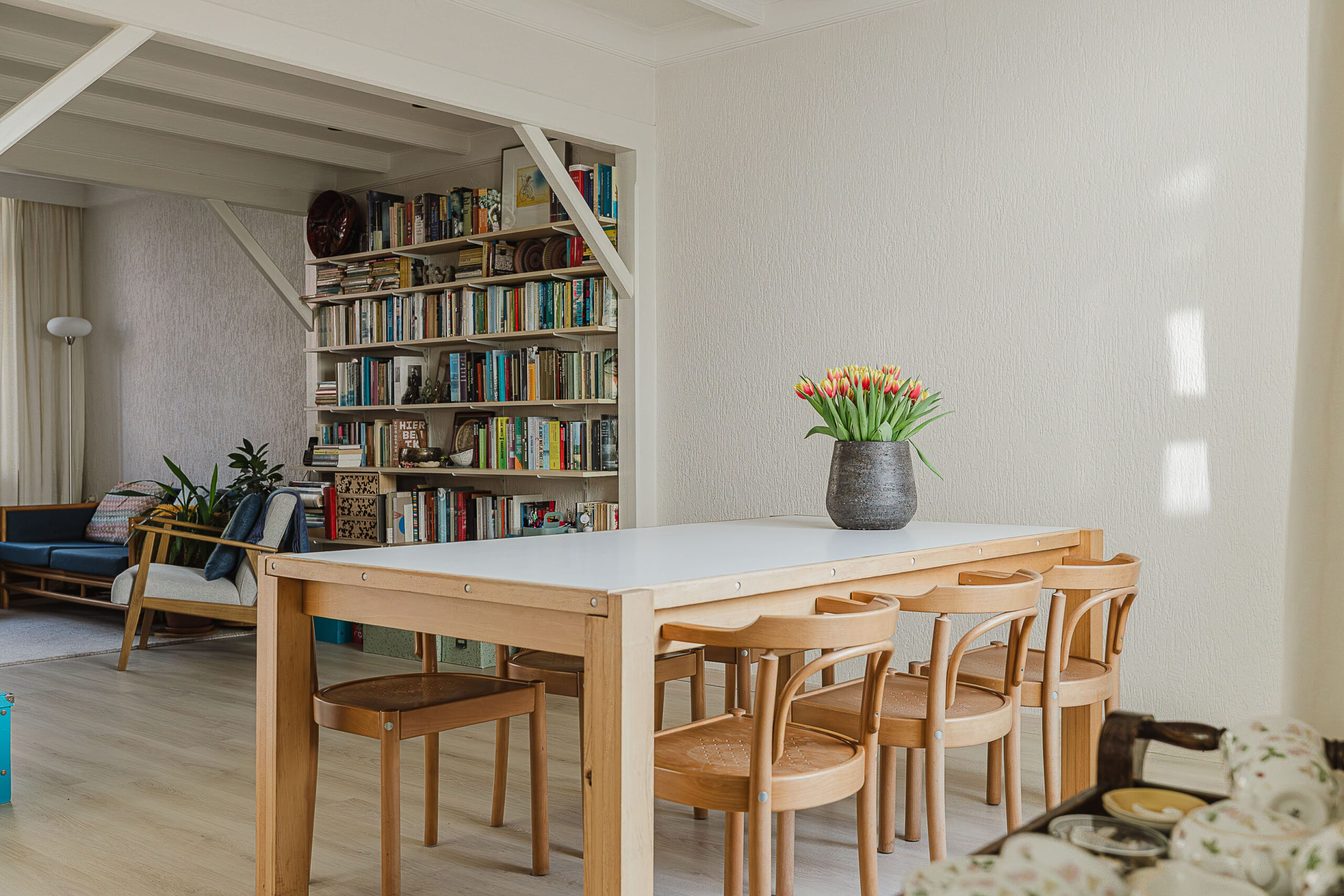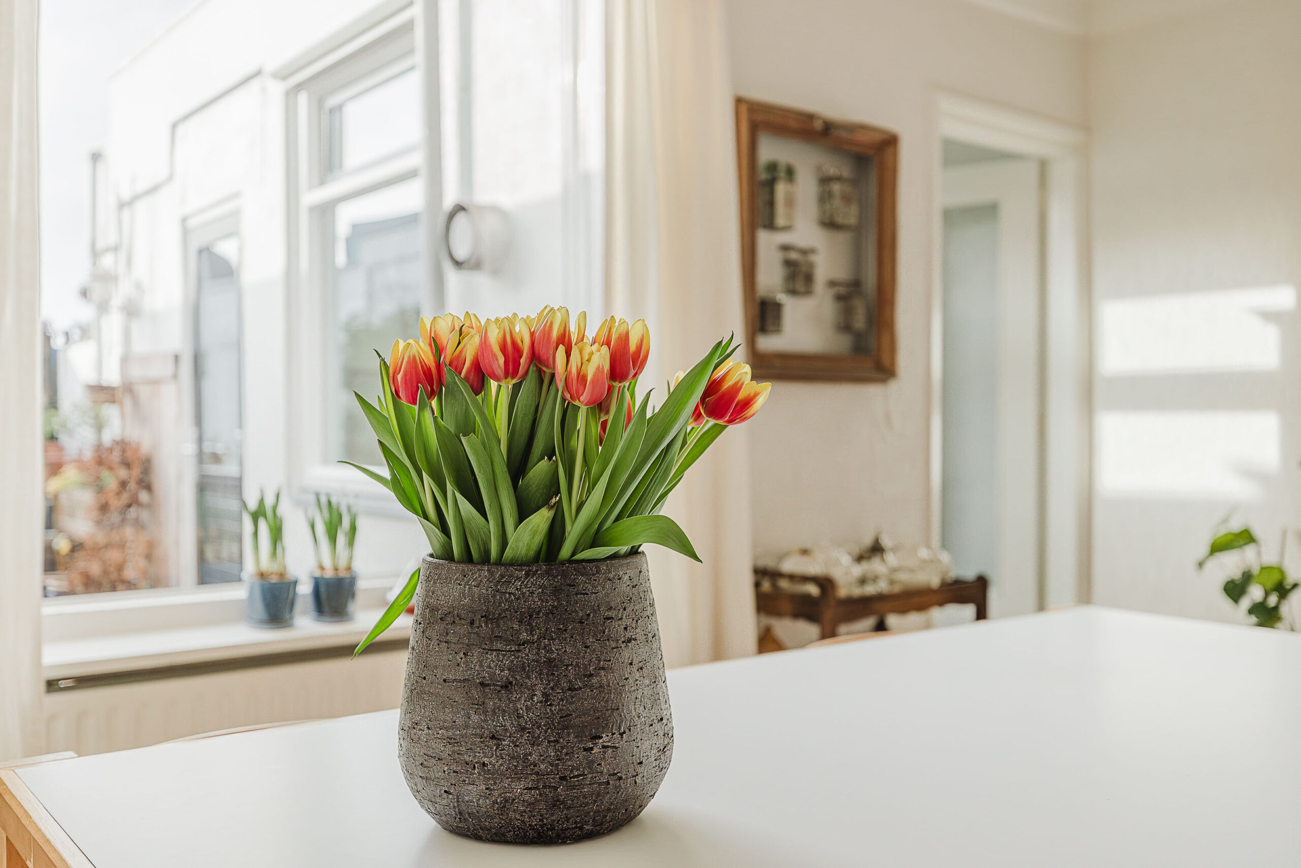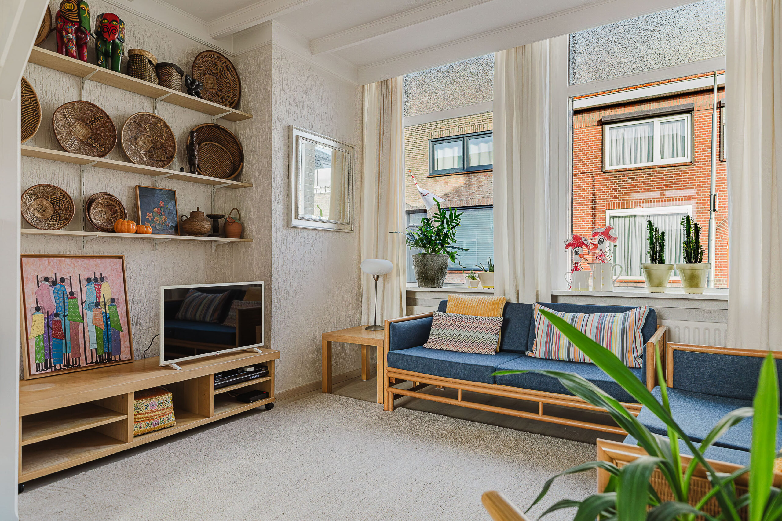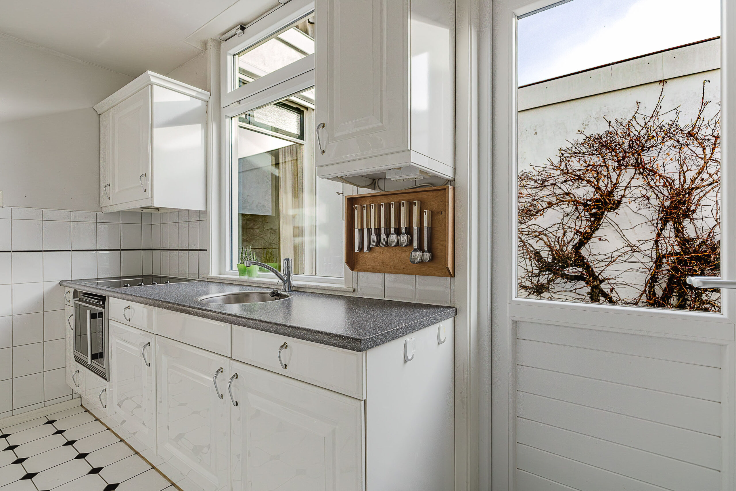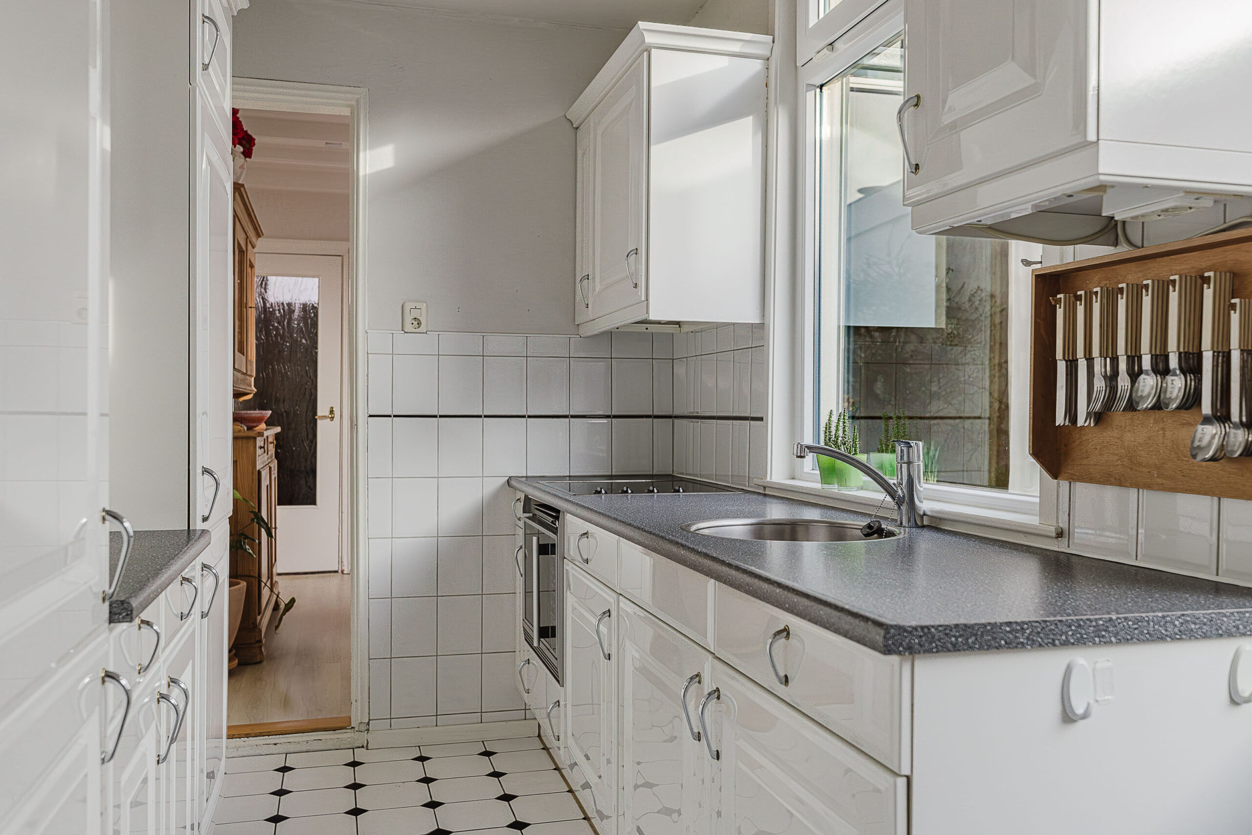 De begane grond is prettig ingedeeld en voelt licht en ruim aan dankzij de doorzon woonkamer, waar het daglicht van twee kanten mooi naar binnen valt. Dit zorgt voor een open en aangename sfeer. Aangrenzend bevindt zich de dichte keuken met inbouwapparatuur, die praktisch is ingericht en een fijn uitzicht biedt op de achtertuin.