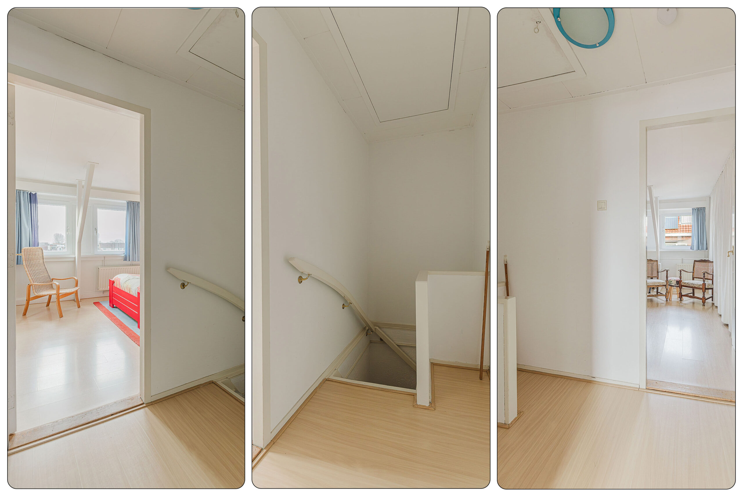 Via een vlizotrap is de zolder bereikbaar. Deze ruime bergzolder biedt volop opbergruimte en is ideaal voor het netjes opbergen van seizoensspullen en andere zaken die je uit het zicht wilt houden.