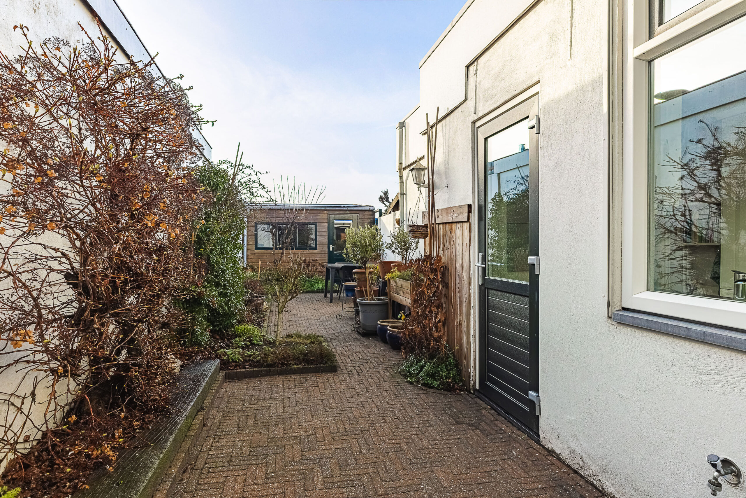 De zonnige achtertuin op het zuiden is een heerlijke plek om te ontspannen en van het buitenleven te genieten. Dankzij de gunstige ligging kun je hier vrijwel de hele dag van de zon profiteren. De tuin beschikt over een praktische achterom, ideaal voor fietsen of tuinspullen. Achterin de tuin staat een houten tuinhuis met aansluitingen voor de wasmachine en droger, wat zorgt voor extra bergruimte en gebruiksgemak. Een fijne en functionele tuin met volop mogelijkheden.