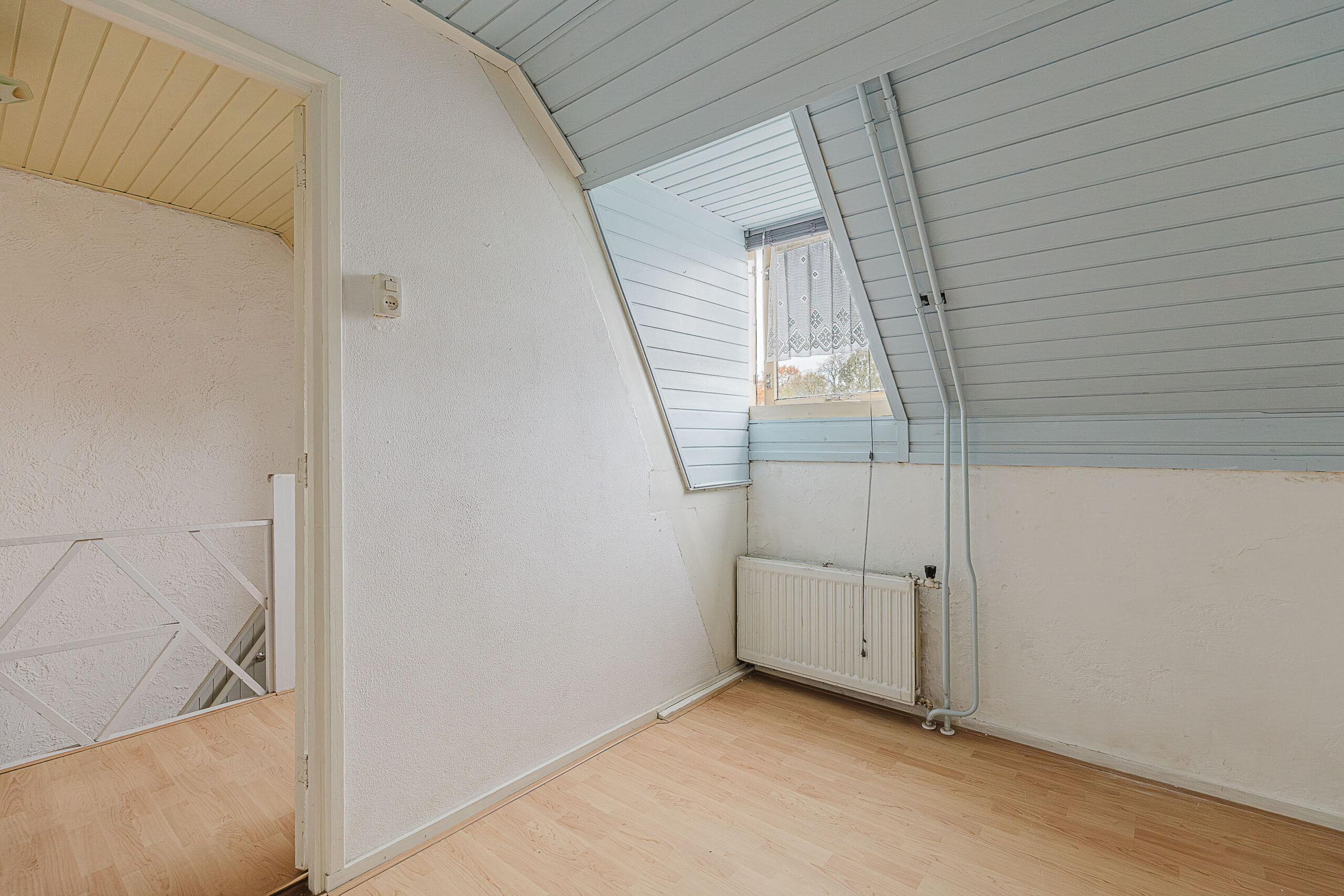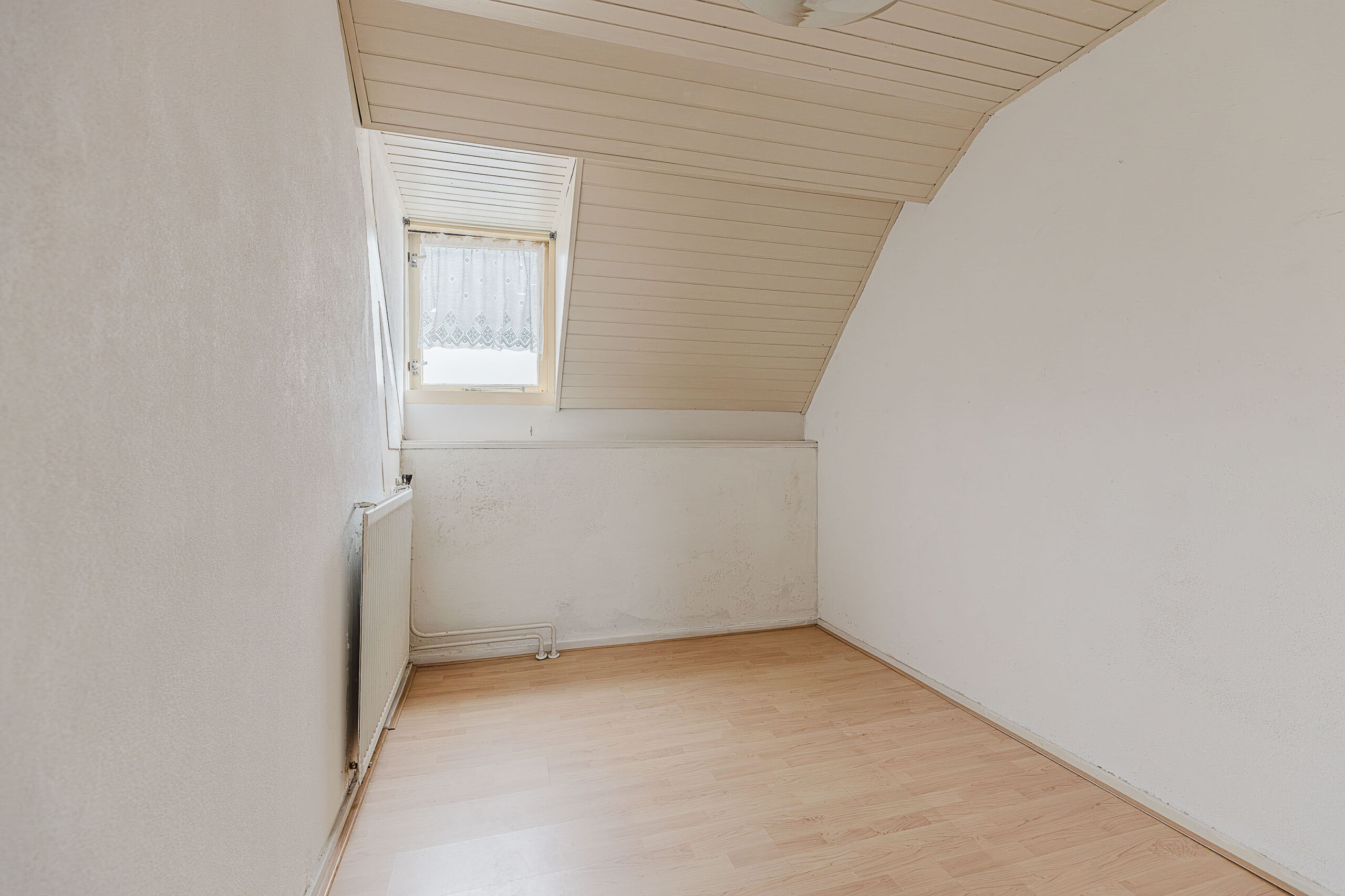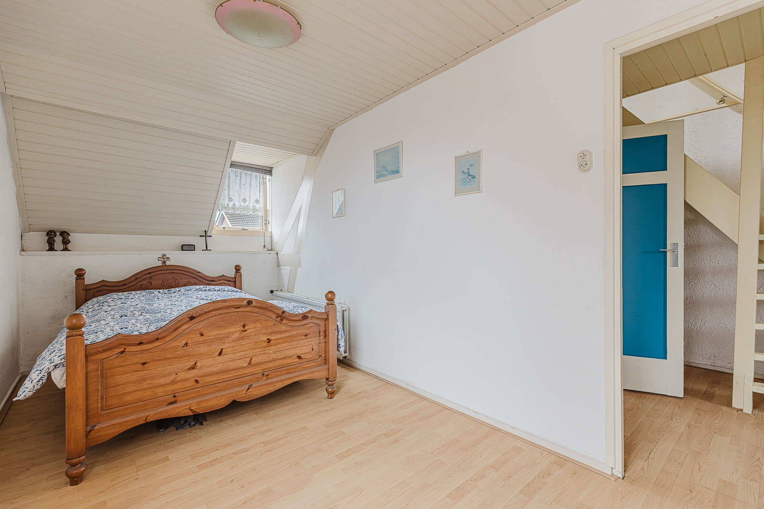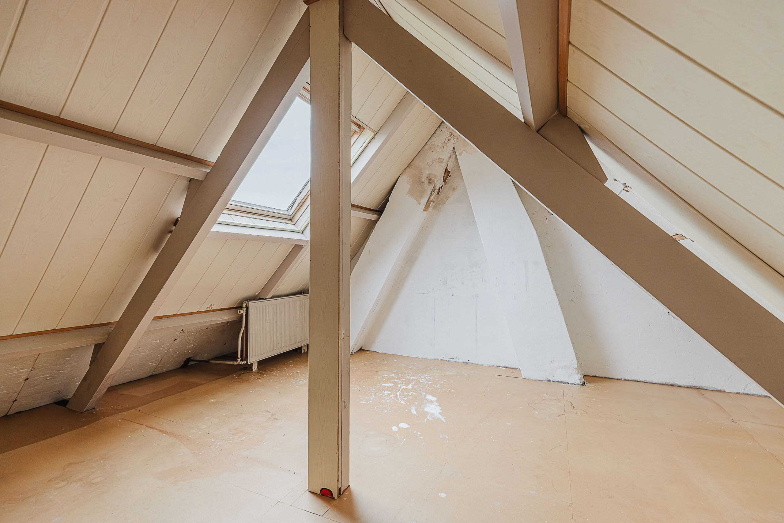 Via een vaste trap bereik je de zolderverdieping. Deze royale ruimte biedt de mogelijkheid om een vierde slaapkamer te realiseren of een comfortabele hobby- of werkruimte in te richten.