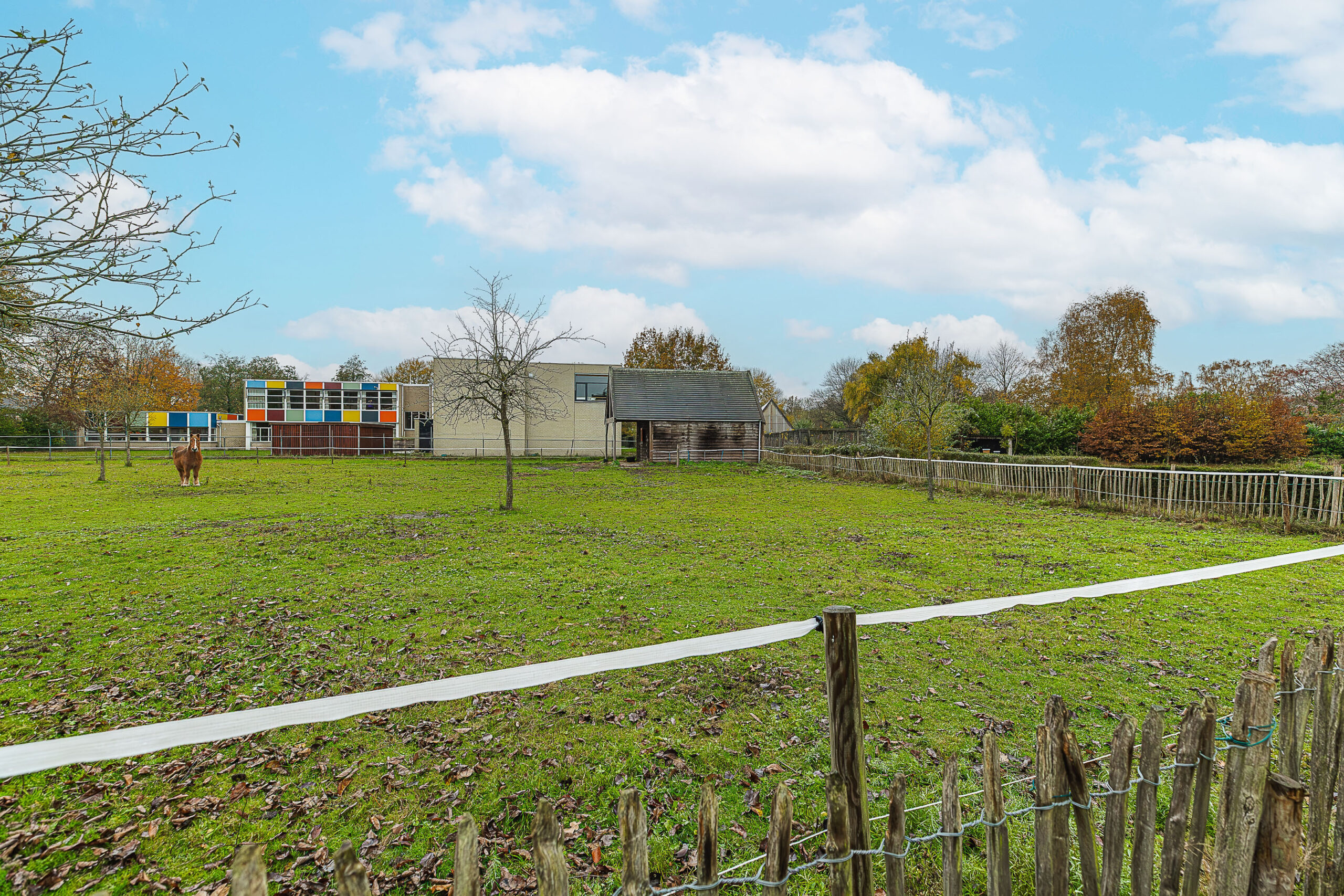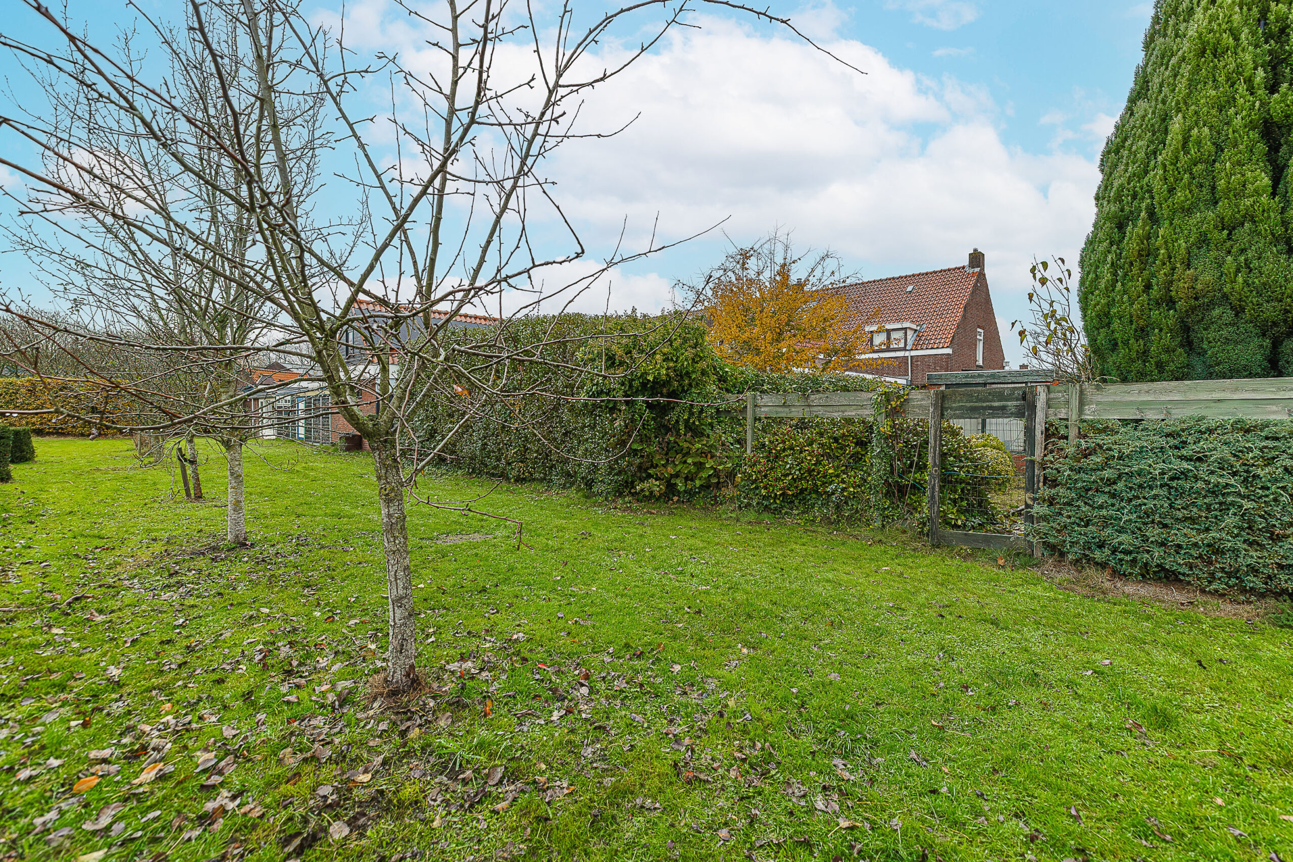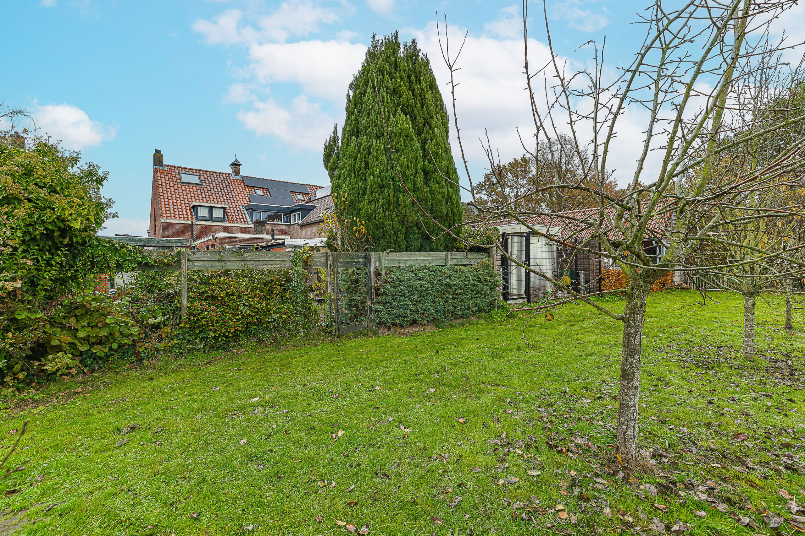 De woning staat op een royaal perceel met een verrassend diepe achtertuin op het zuidwesten. Dat betekent: de hele dag zon en tot laat in de avond heerlijk buiten zitten. Dankzij de vrije ligging aan de achterzijde geniet je hier van volop privacy en een ruimtelijk gevoel dat je niet vaak tegenkomt. Geen nieuwsgierige buren, maar af en toe een paard dat even om de hoek komt kijken—een charmant detail dat deze tuin nét wat specialer maakt. Een echt buitenplek om in te ontspannen.