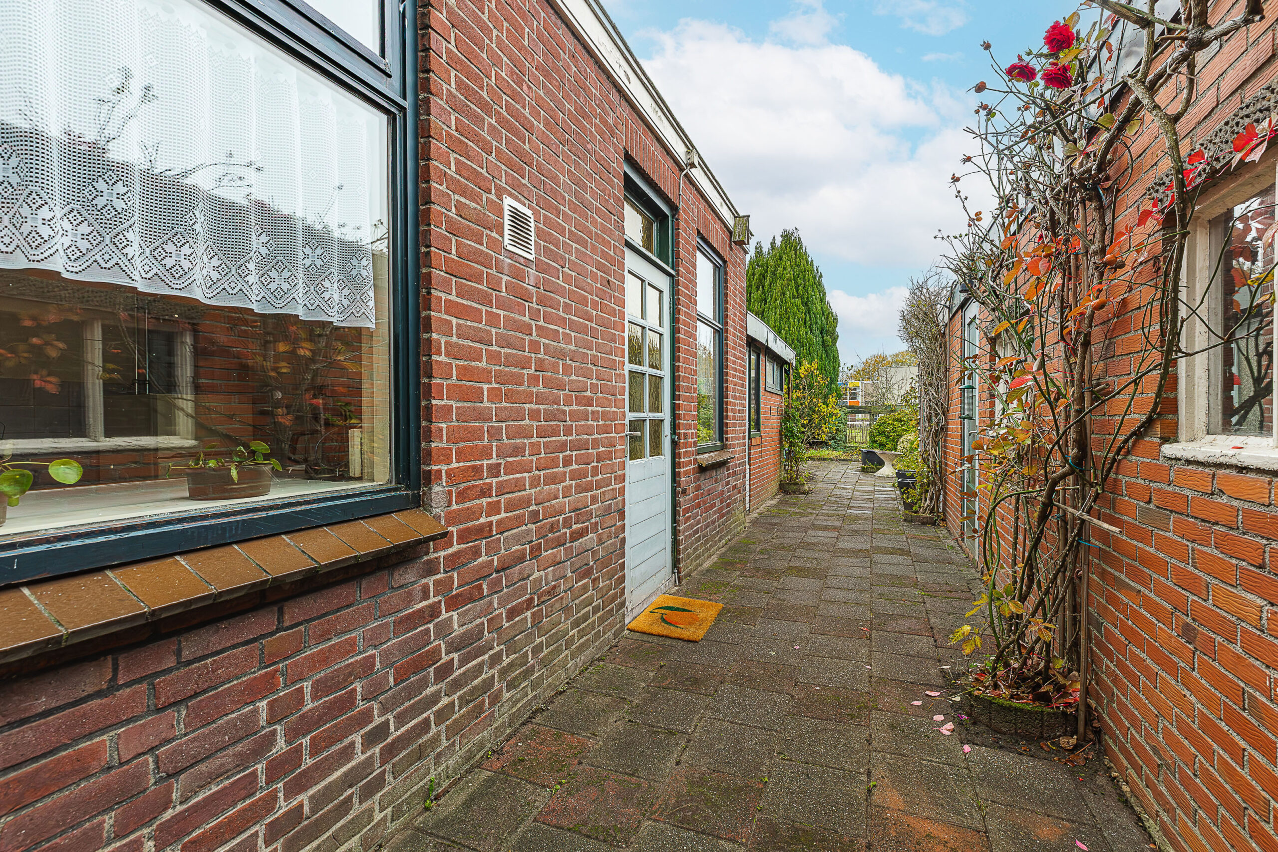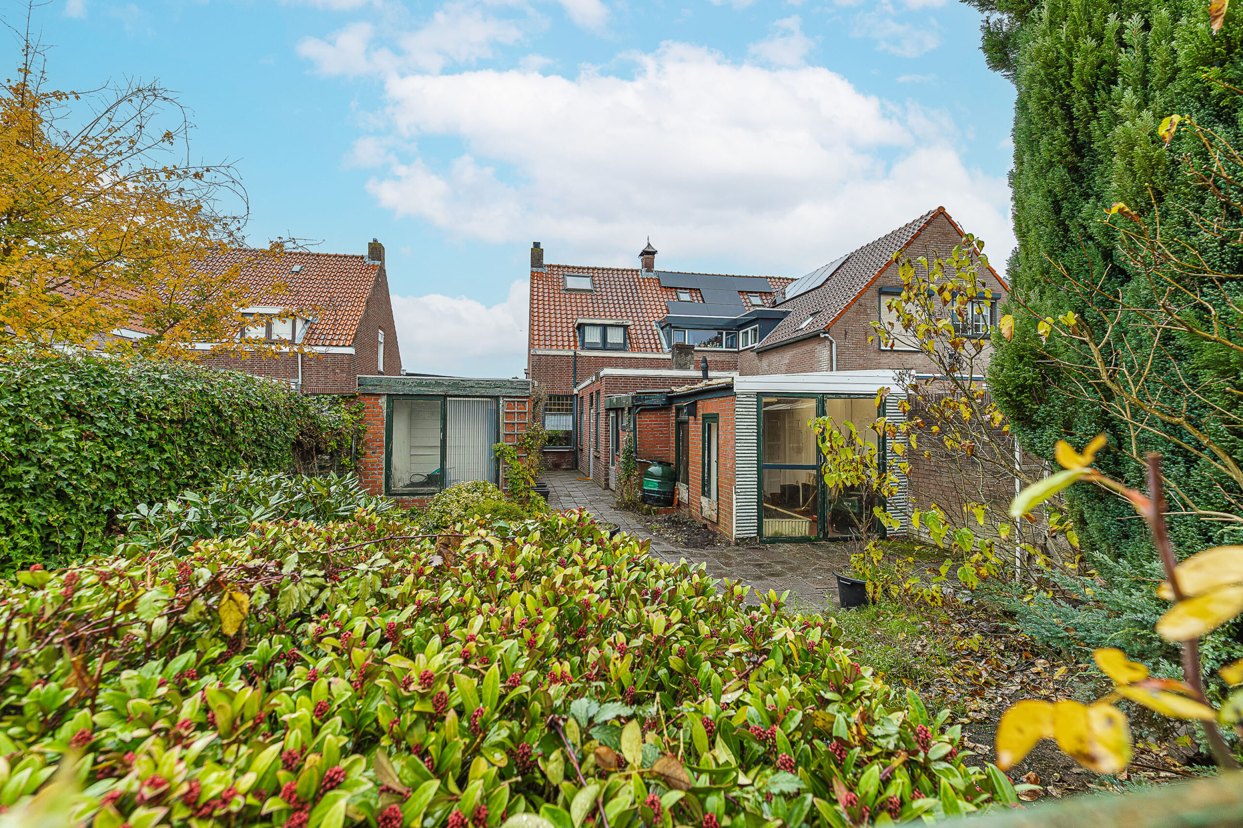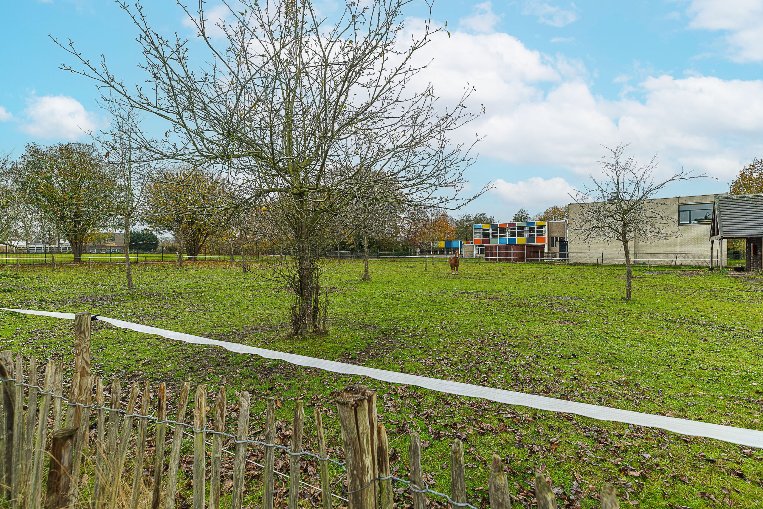 De woning staat op een royaal perceel met een verrassend diepe achtertuin op het zuidwesten. Dat betekent: de hele dag zon en tot laat in de avond heerlijk buiten zitten. Dankzij de vrije ligging aan de achterzijde geniet je hier van volop privacy en een ruimtelijk gevoel dat je niet vaak tegenkomt. Geen nieuwsgierige buren, maar af en toe een paard dat even om de hoek komt kijken—een charmant detail dat deze tuin nét wat specialer maakt. Een echt buitenplek om in te ontspannen.